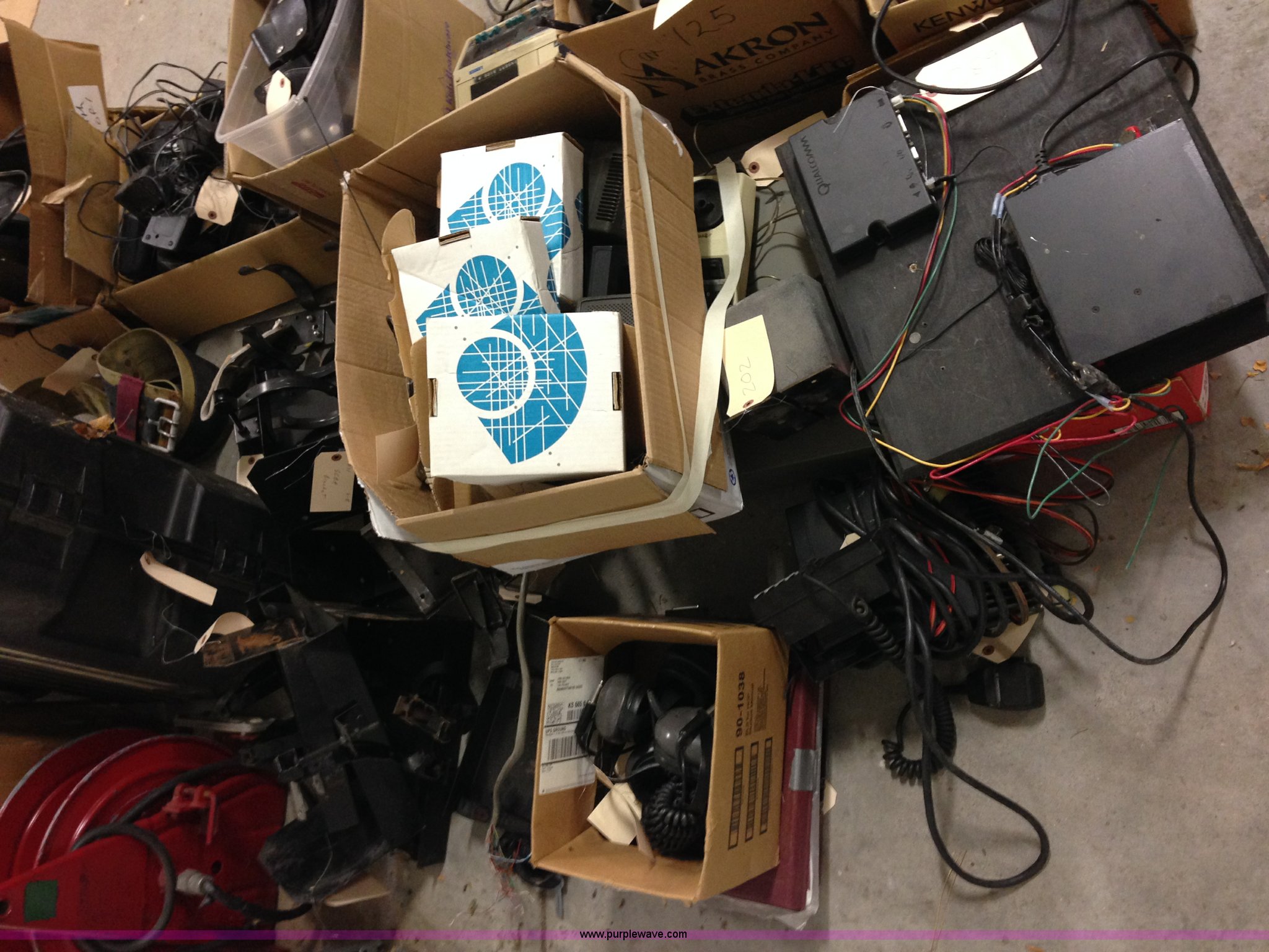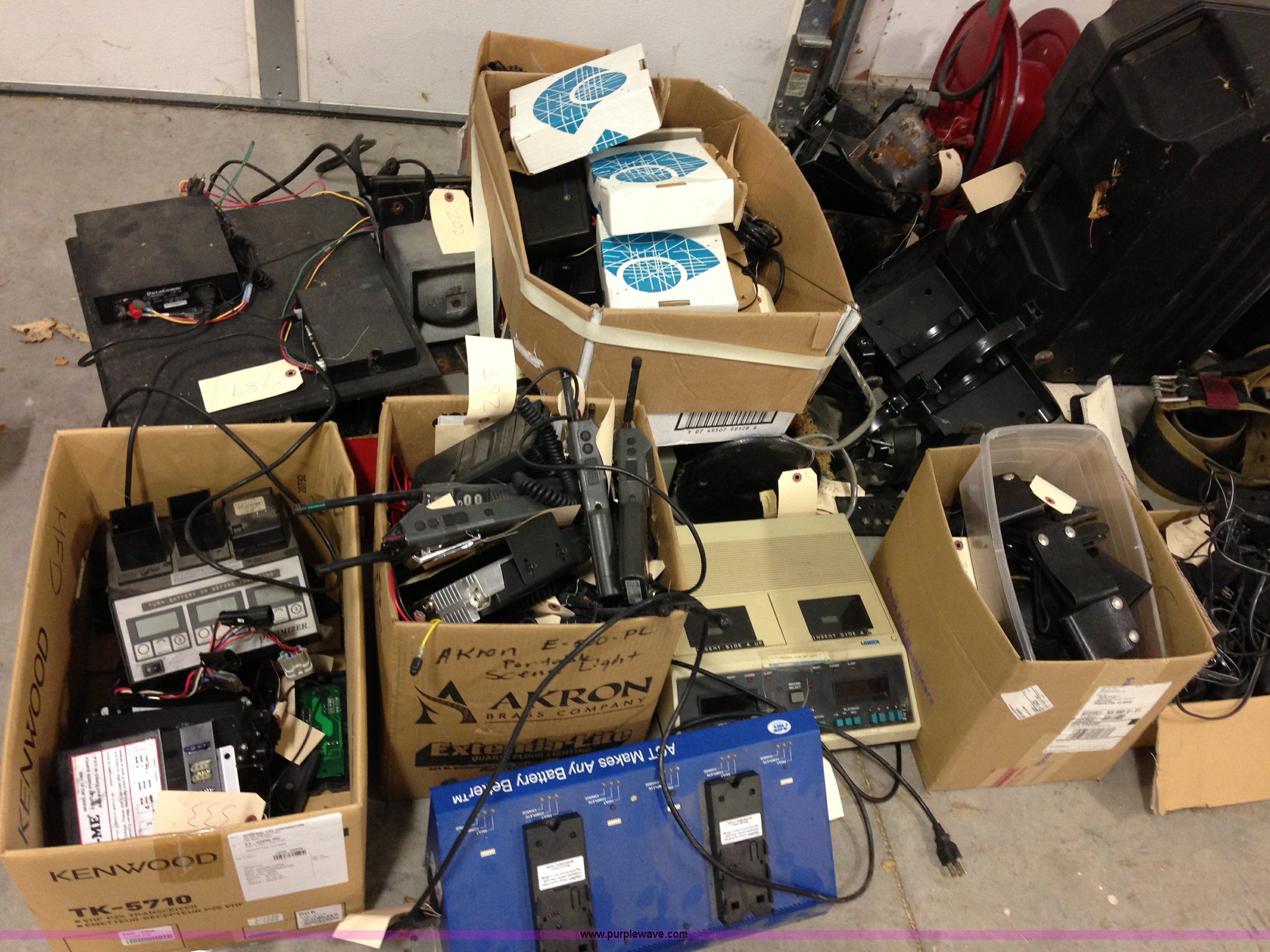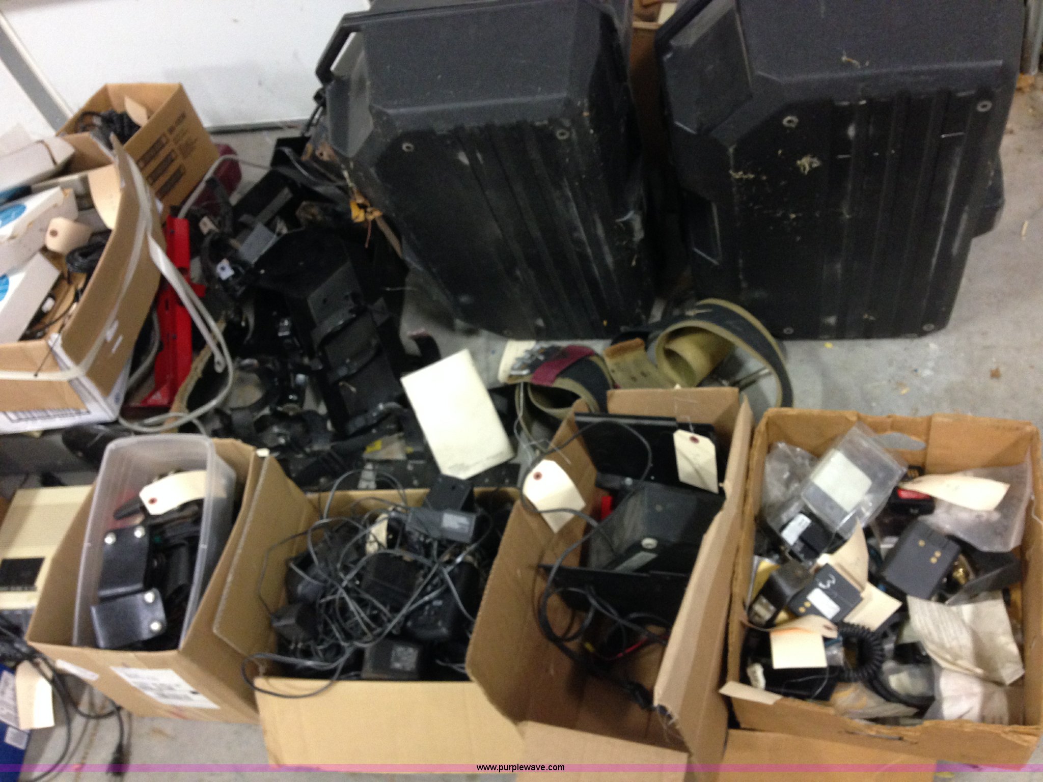 Purple Wave is selling a used Tools in Kansas. This item is a Assorted equipment with the following: Phones, Cord reels, Harnesses, Air pack cases, Air splint, SCBA brackets, Recorder, Speakers, Mounting brackets, GE chargers, M/A COM microphones and chargers, Shoulder microphones, 10 channel scanner, Battery adapters, Headsets, Global star phone, Computer mice, Wiring, Radio battery, Belt clips, Radio holders and more, Unit# 10