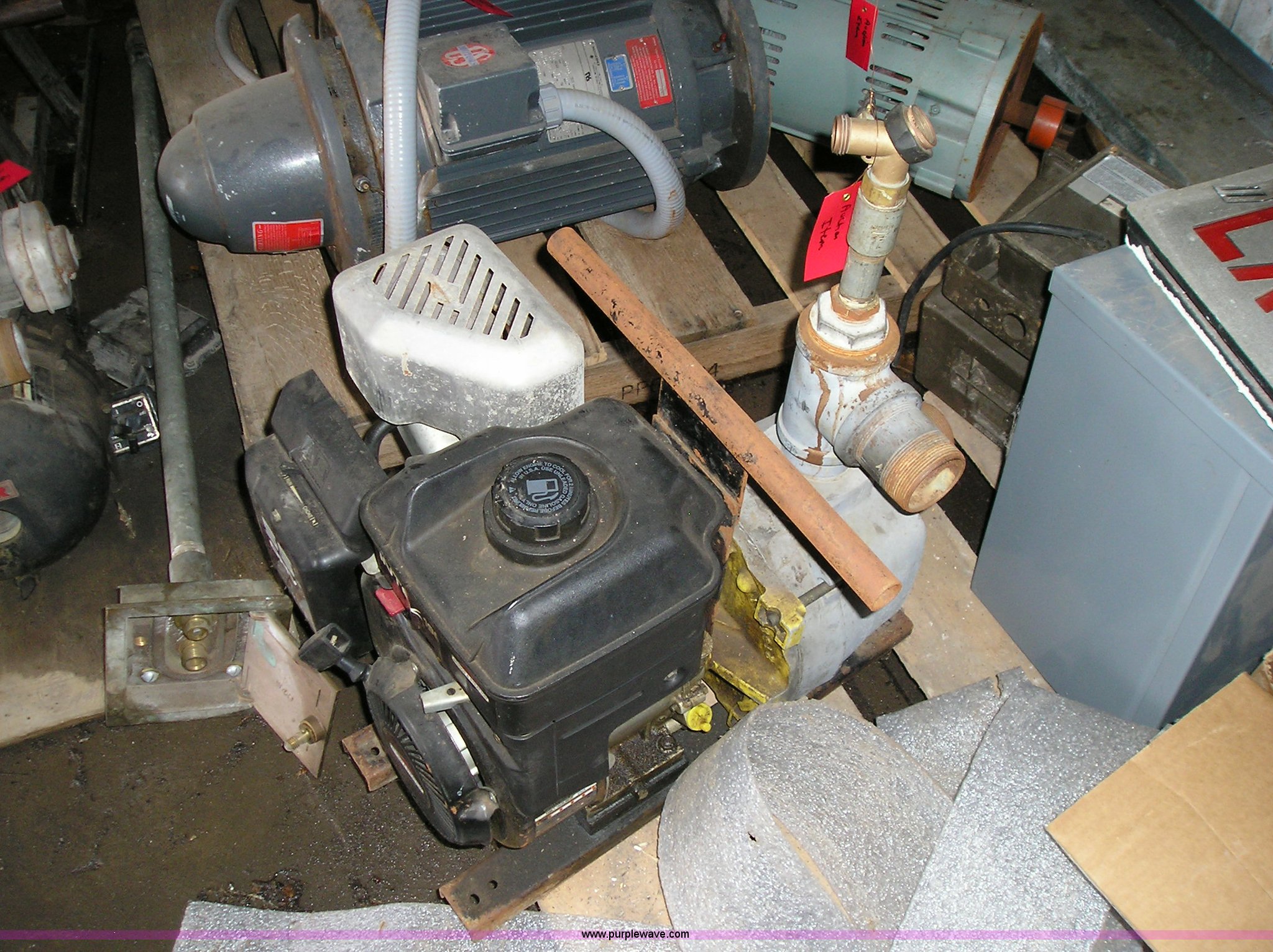 Purple Wave is selling a used Tools in Kansas. This item is a Assorted motors, pumps, and valves with the following: Motors, 5 HP electric, 7.5 HP electric, 20 HP electric with pump, 10 HP electric with 4" pump, (5) 3" gated valves, (2) 2" gas water pumps, Need repaired, Unit# 60
