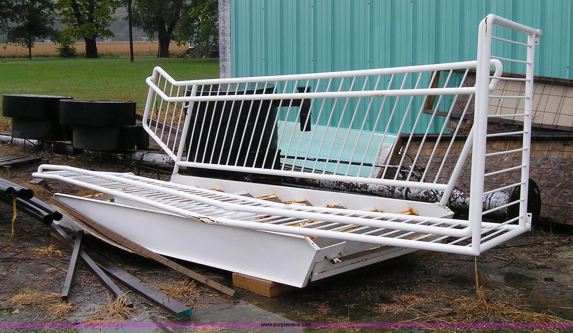 Purple Wave is selling a used Tools in Kansas. This item is a Metal platform with the following: Stairs, Rails, Unit# 69