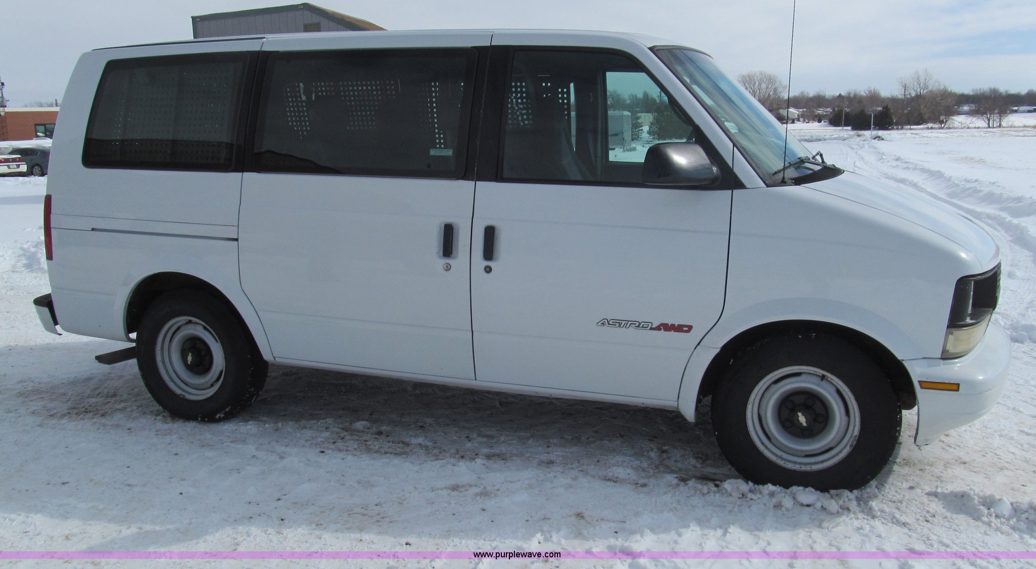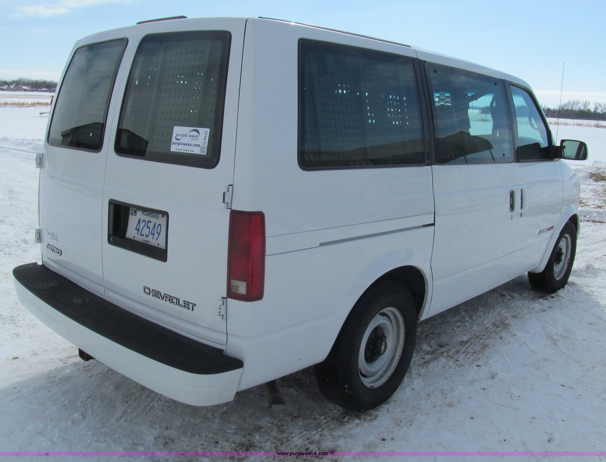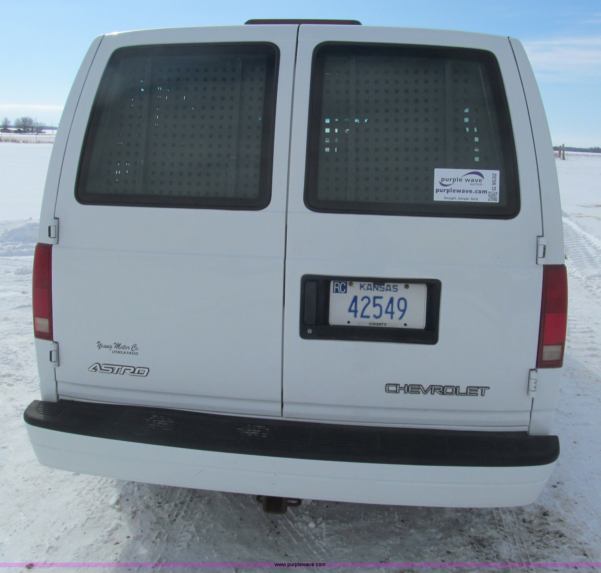 Purple Wave is selling a used Passenger Vehicle in Kansas. This item is a 2000 Chevrolet Astro van with the following: 196,542 actual miles, 4.3L V6 OHV 12V gas engine, Automatic transmission, All wheel drive, AC and heat, Tilt, AM/FM, Power windows and locks, Cloth interior, Internal cage, Removable side door window cage, 215/75R15 tires, Interior cosmetic damage