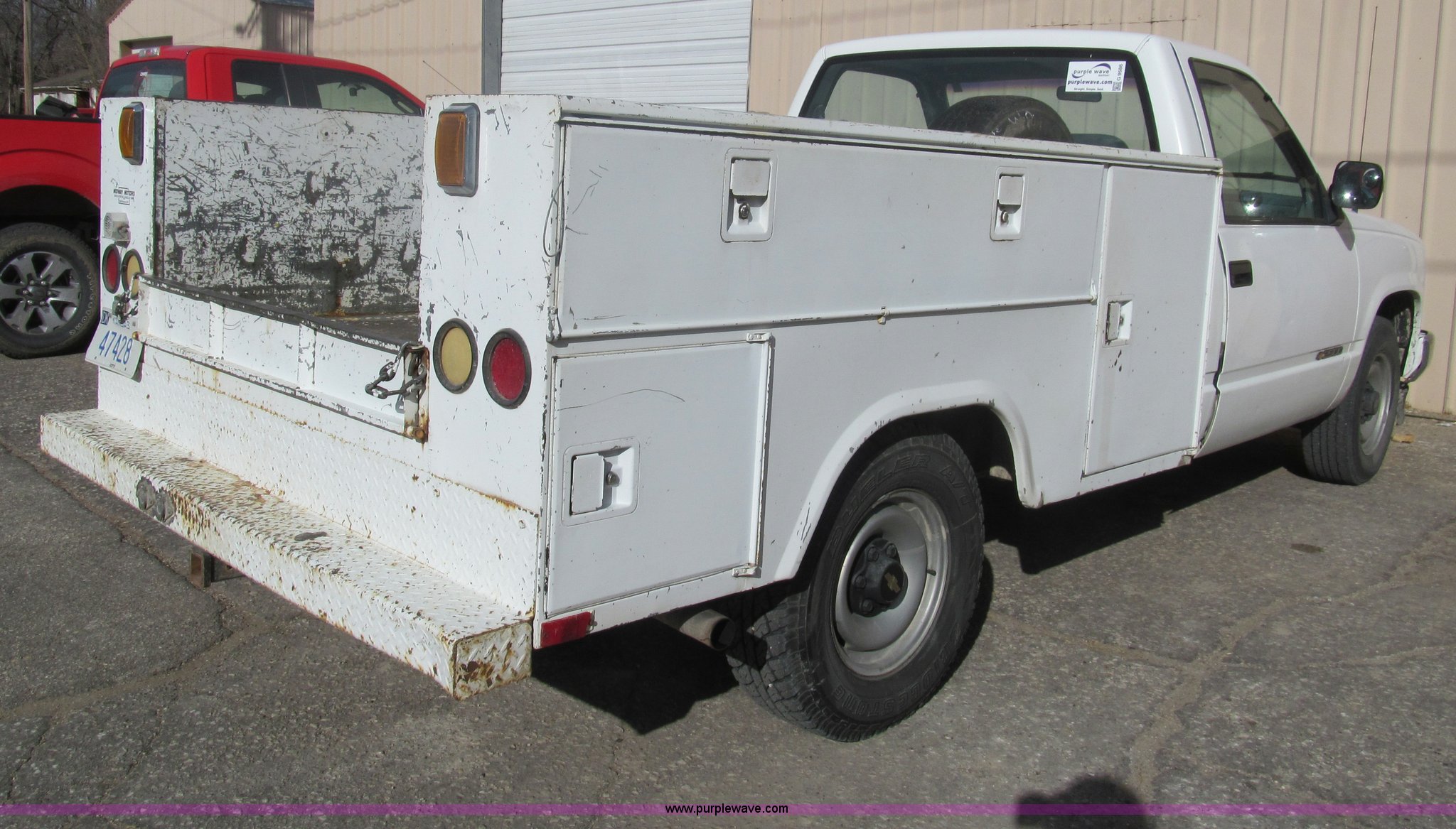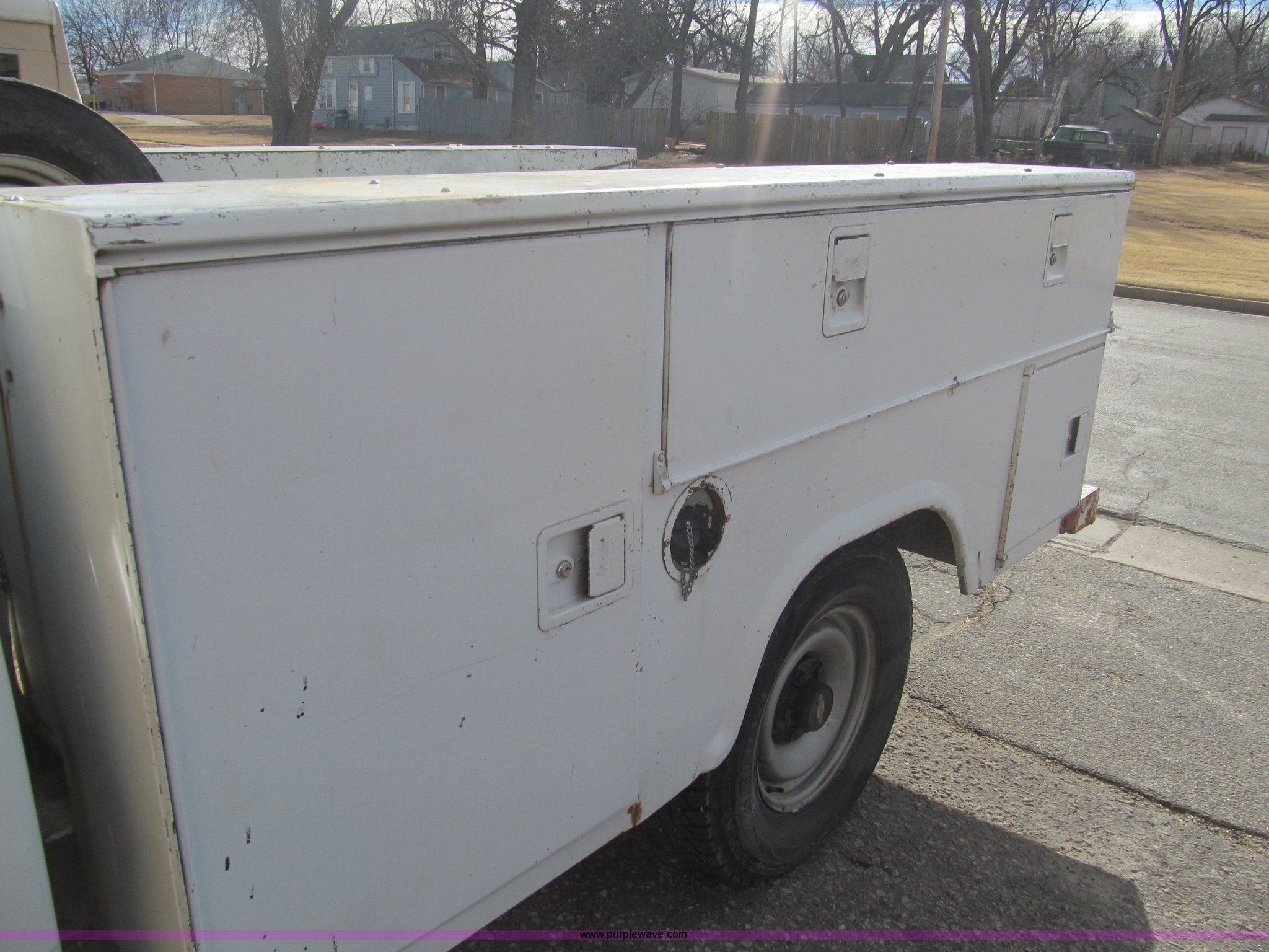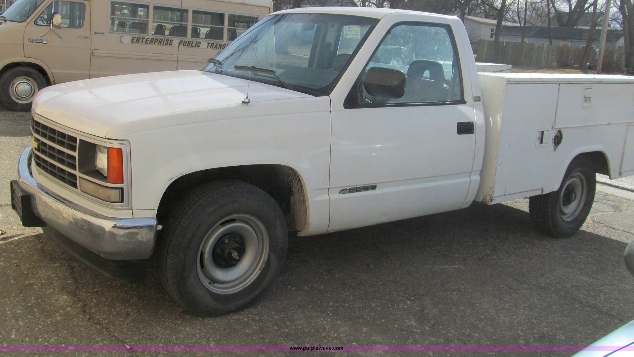 Purple Wave is selling a used Service Truck in Kansas. This item is a 1992 Chevrolet 2500 utility truck with the following: 132,177 actual miles, 5.0L V8 OHV 16V gas engine, Automatic transmission, Heat, Manual windows and locks, Vinyl interior, Stahl utility bed, Tools will be removed prior to auction, Receiver hitch, Trailer wiring, 225/75R15 tires, Coolant leak, U-joints worn, Radio broken