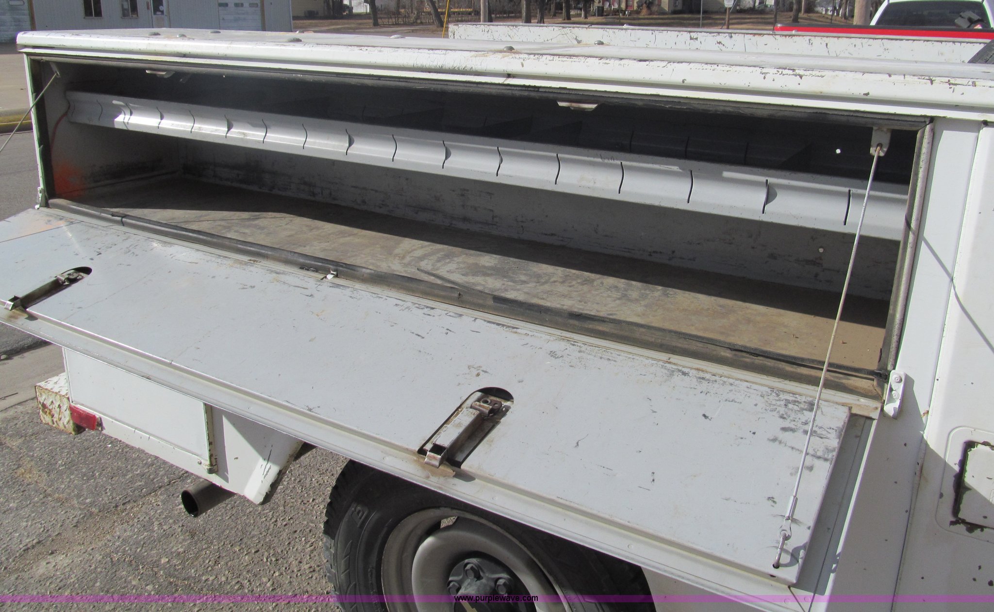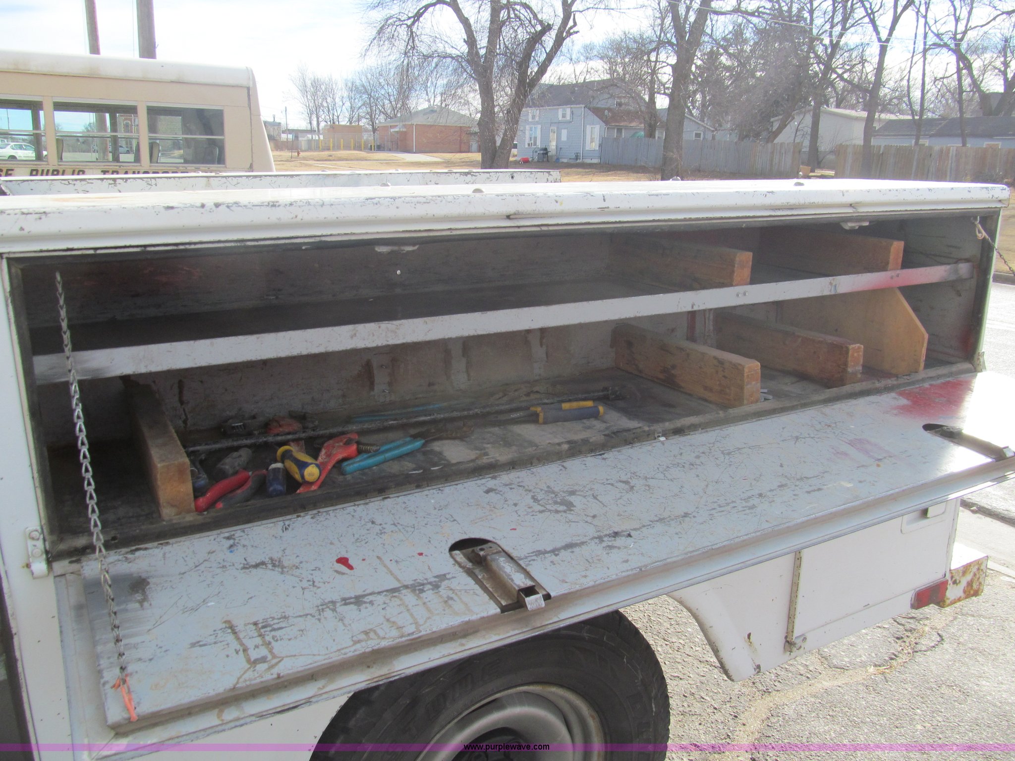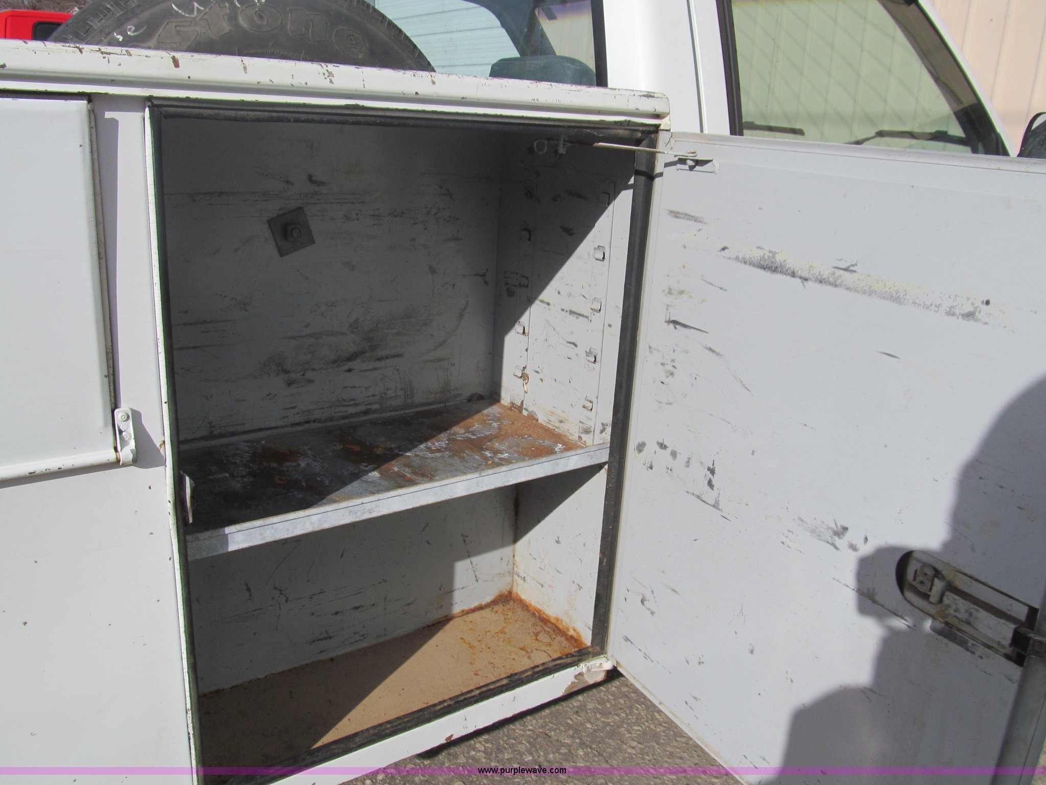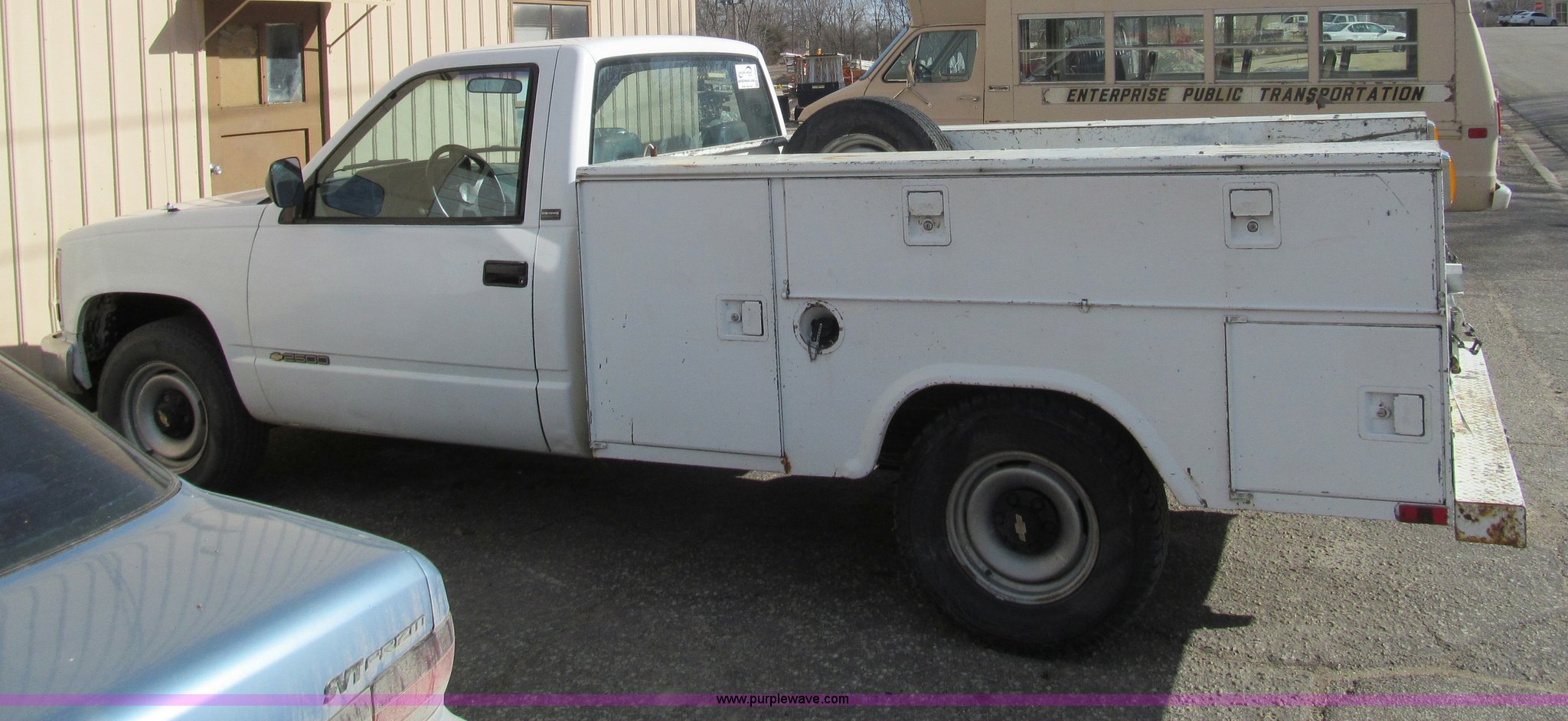 Purple Wave is selling a used Service Truck in Kansas. This item is a 1992 Chevrolet 2500 utility truck with the following: 132,177 actual miles, 5.0L V8 OHV 16V gas engine, Automatic transmission, Heat, Manual windows and locks, Vinyl interior, Stahl utility bed, Tools will be removed prior to auction, Receiver hitch, Trailer wiring, 225/75R15 tires, Coolant leak, U-joints worn, Radio broken