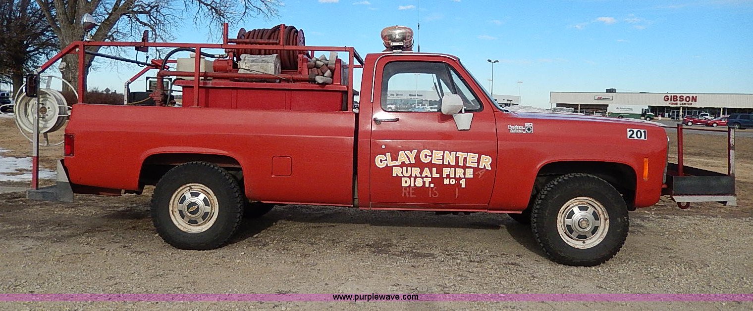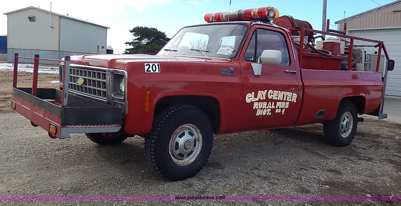 1980 Chevrolet C20 Custom Deluxe fire truck has sold in Clay Center, Kansas for $9350. Item I9437 sold on March 4th, 2014.