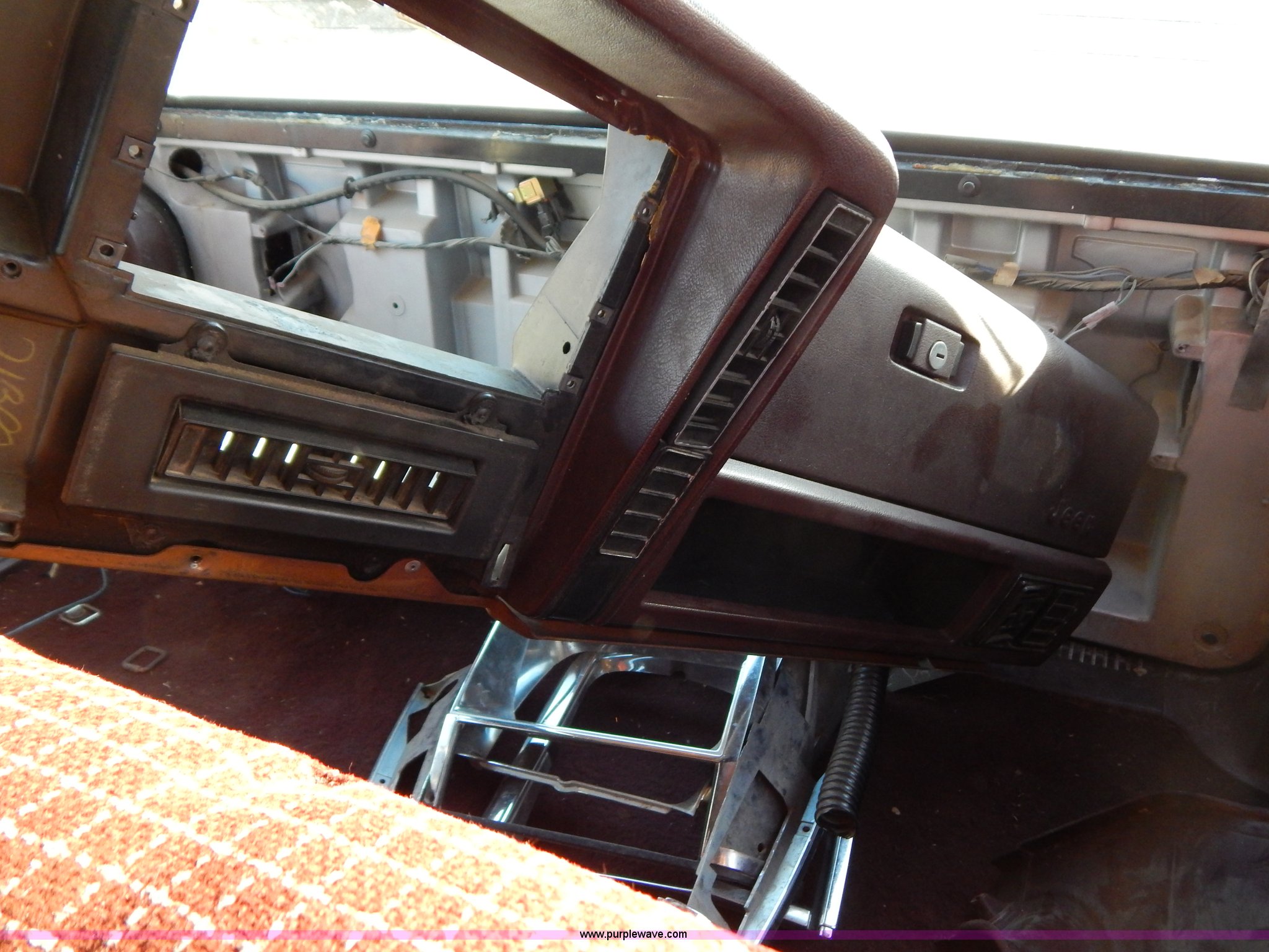 Purple Wave is selling a used Passenger Vehicle in Missouri. This item is a 1987 AMC Cherokee Pioneer SUV with the following: Unknown miles on odometer, 4.0L L6 OHV 12V gas engine, Automatic transmission, Four wheel drive, Manual windows, Cloth interior, 31 x 10.50R15 tires, Radiator missing, Vehicle disassembled due to an electrical issue