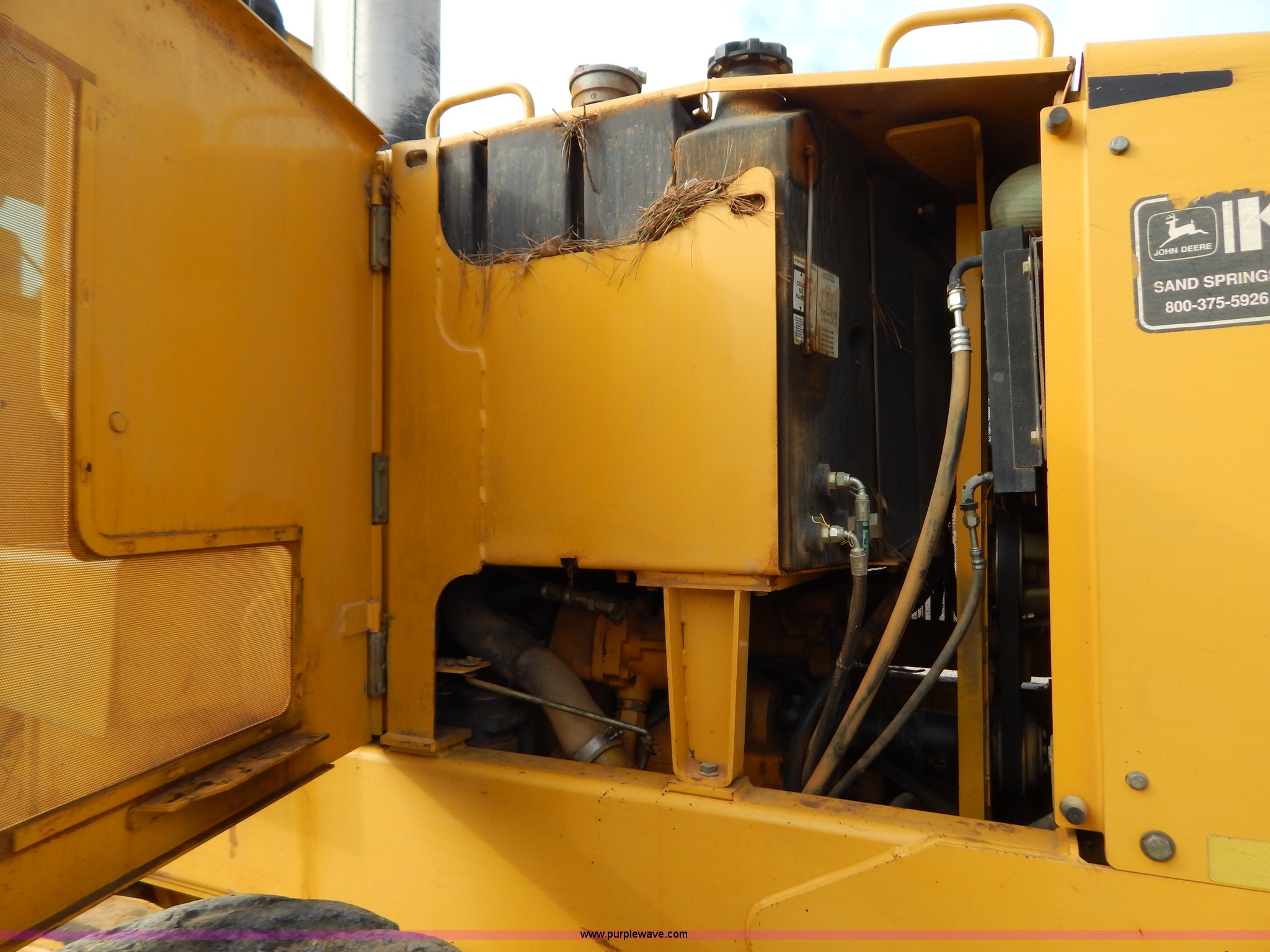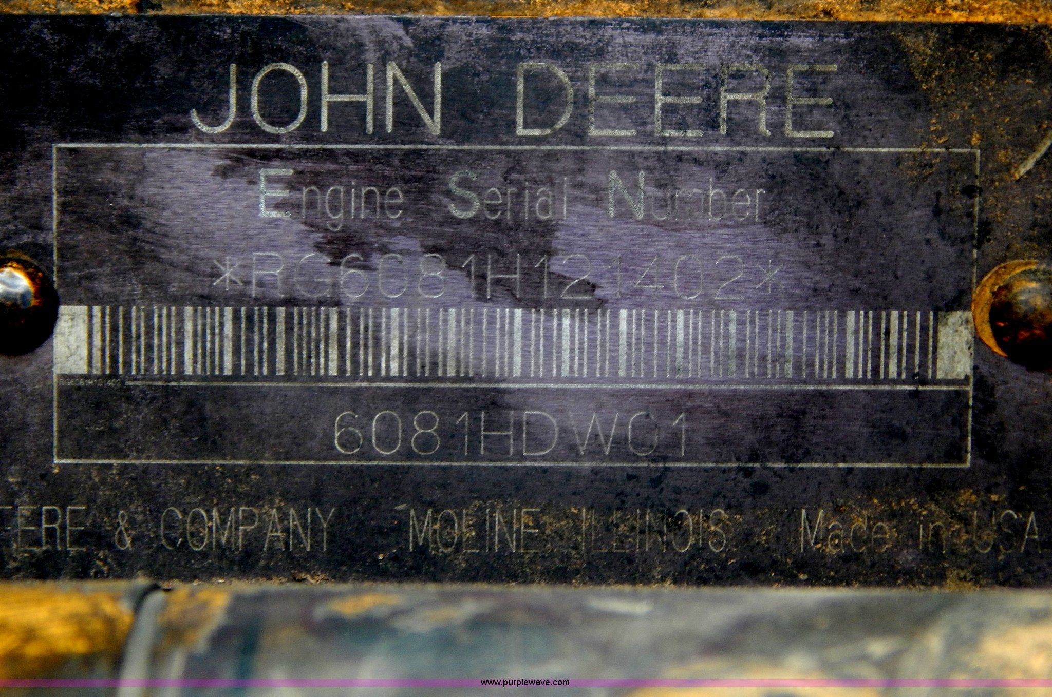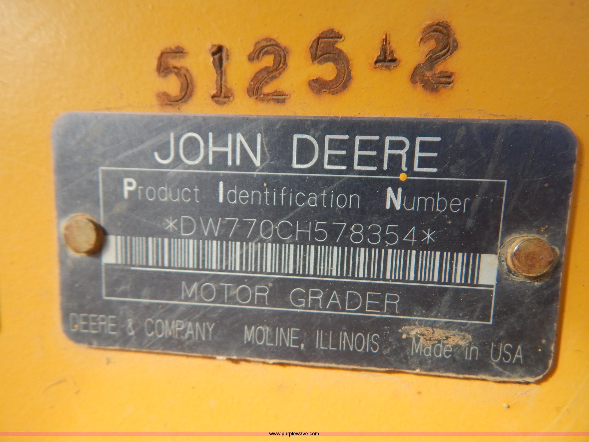Purple Wave is selling a used Motor Grader in Oklahoma. This item is a with the following: 8,773 hours on meter, John Deere Power Tech 8.1L six cylinder diesel engine, Serial RG6081H121402, Powershift transmission, 8F-8R gears, Four wheel drive, Locking differential, EROPS, AC and heat, AM/FM, Suspension seat, Block heater, 14' moldboard, Tip control, Side shift, Front mounted three tooth scarifier, Rear receiver hitch, 2" ball, 14.00R24 tires, Serial DW770CH578354