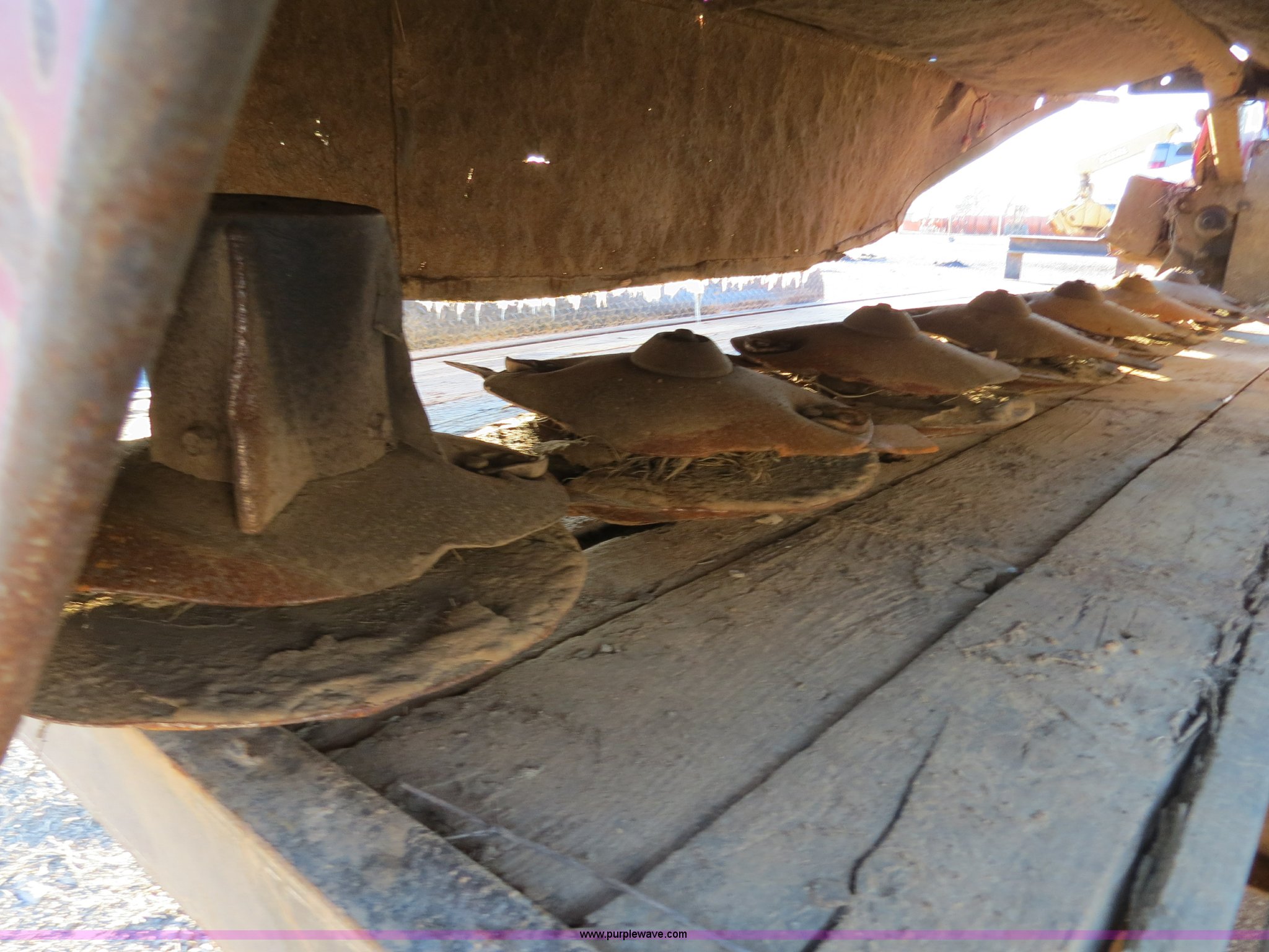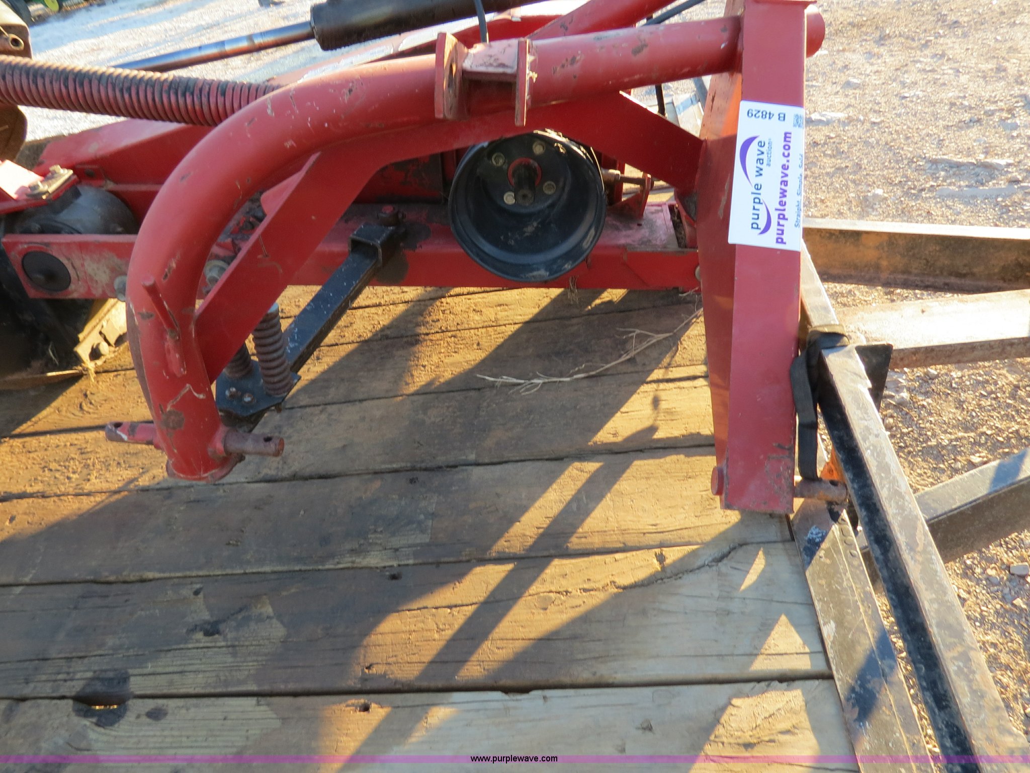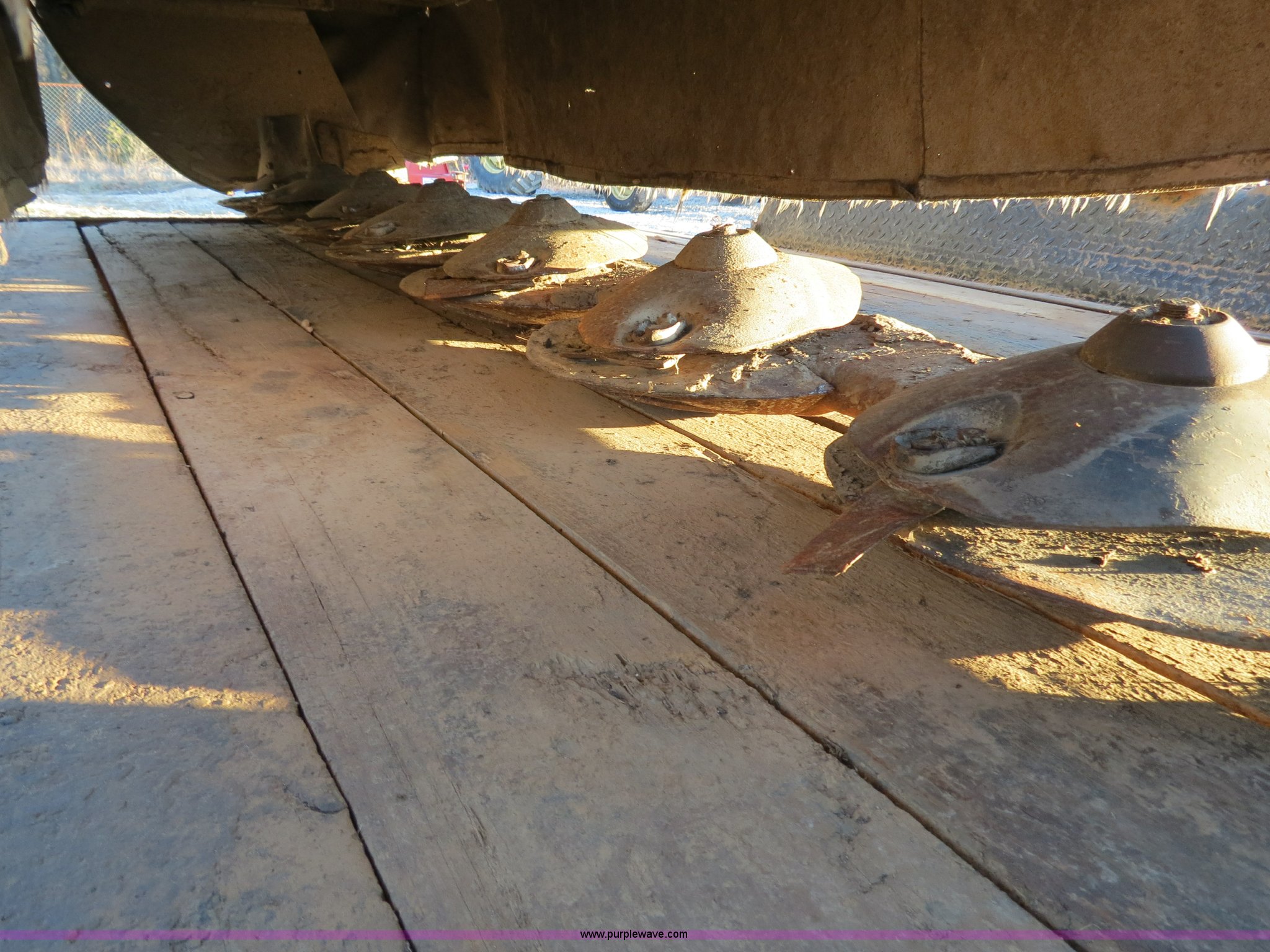 Purple Wave is selling a used Disc or Sickle Mower in Oklahoma. This item is a with the following: 9.5'W, Hydraulic lift, 540 PTO, PTO shaft not included, (7) discs, Cutter bar needs repair, Serial 1018884