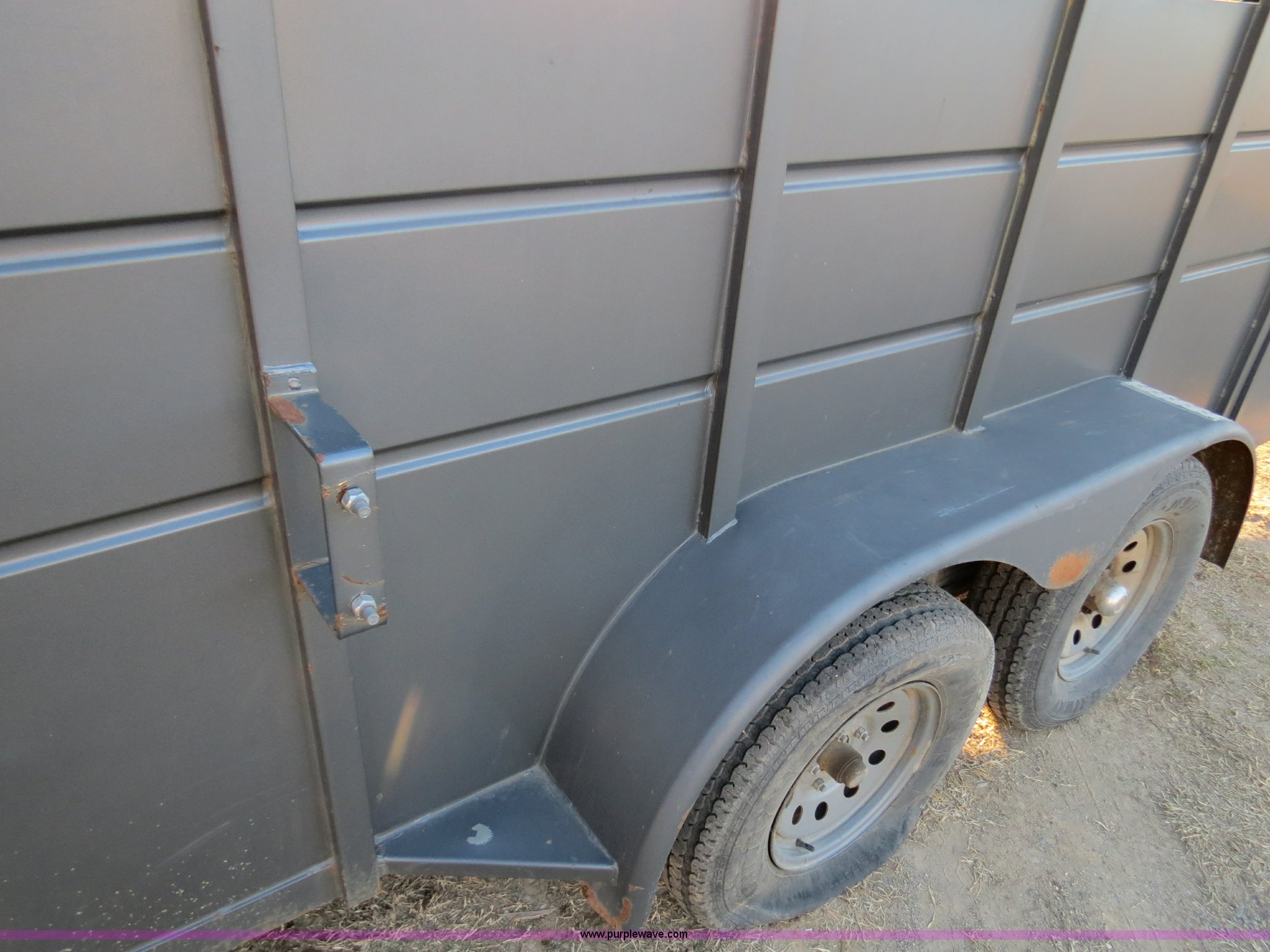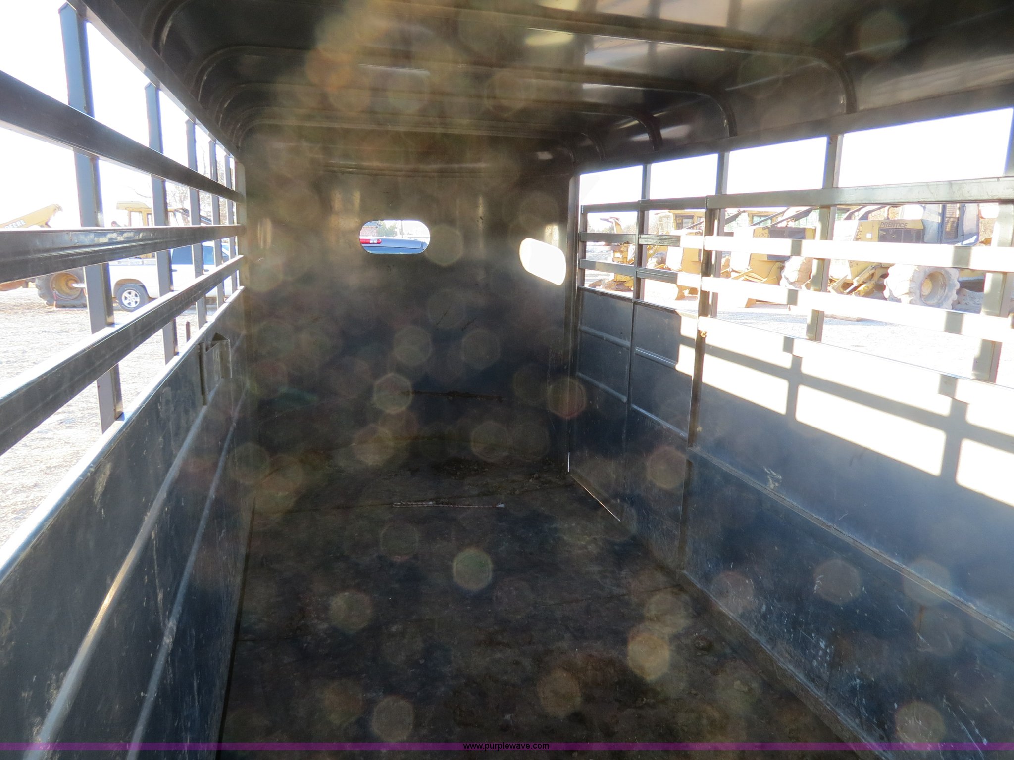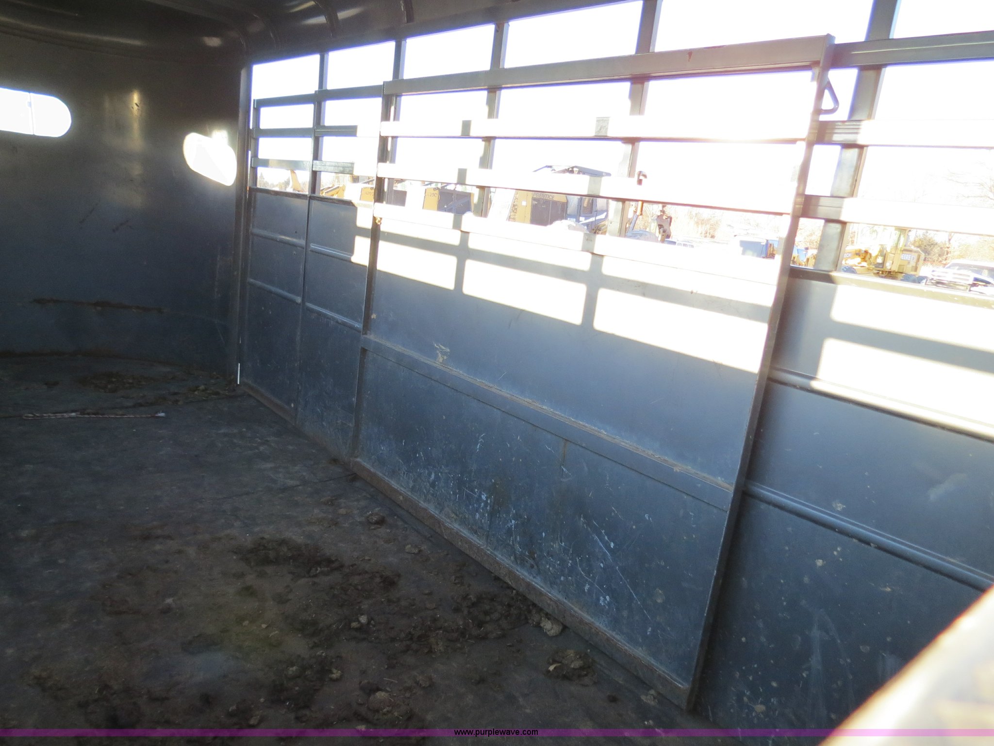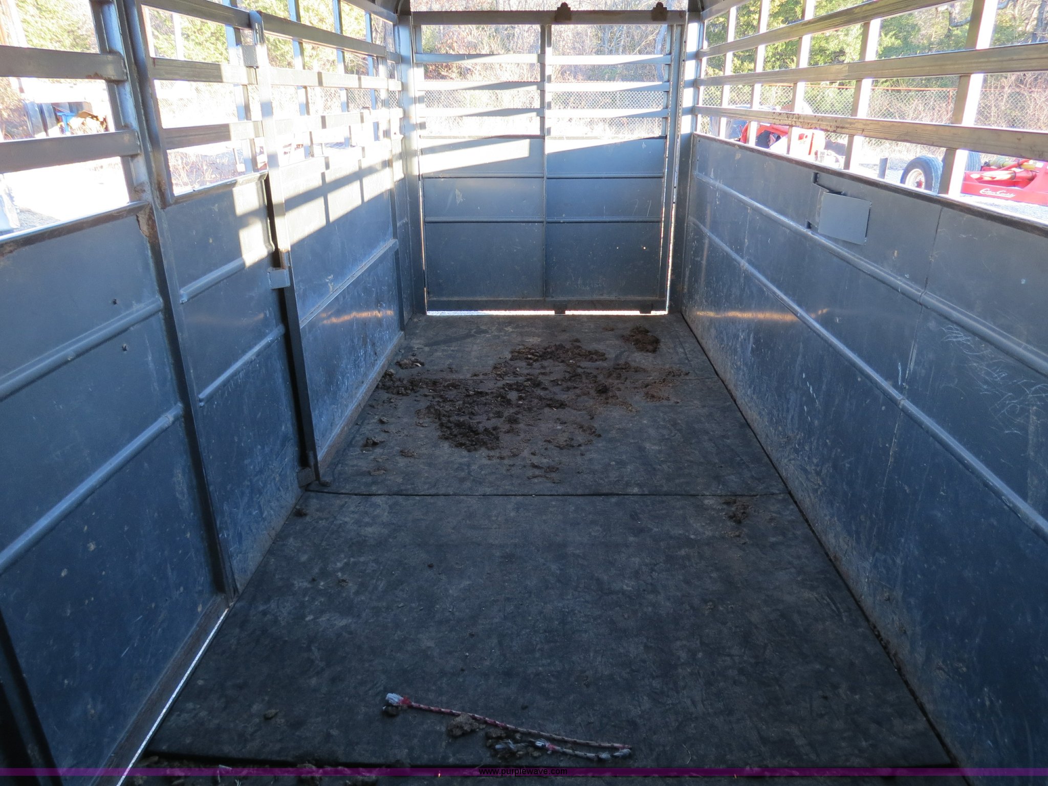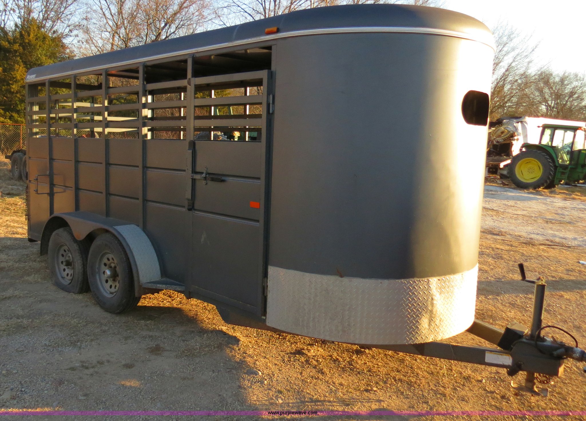 Purple Wave is selling a used Livestock Trailer in Oklahoma. This item is a with the following: 16'L x 6'W, Middle divider, Rubber floor mats, Front side door, Sliding rear door, 2" ball hitch, Six pin trailer wiring, Jack, Spare tire rack, 235/75R15 tires, GVWR 7,000 lbs, GAWR 3,500 lbs