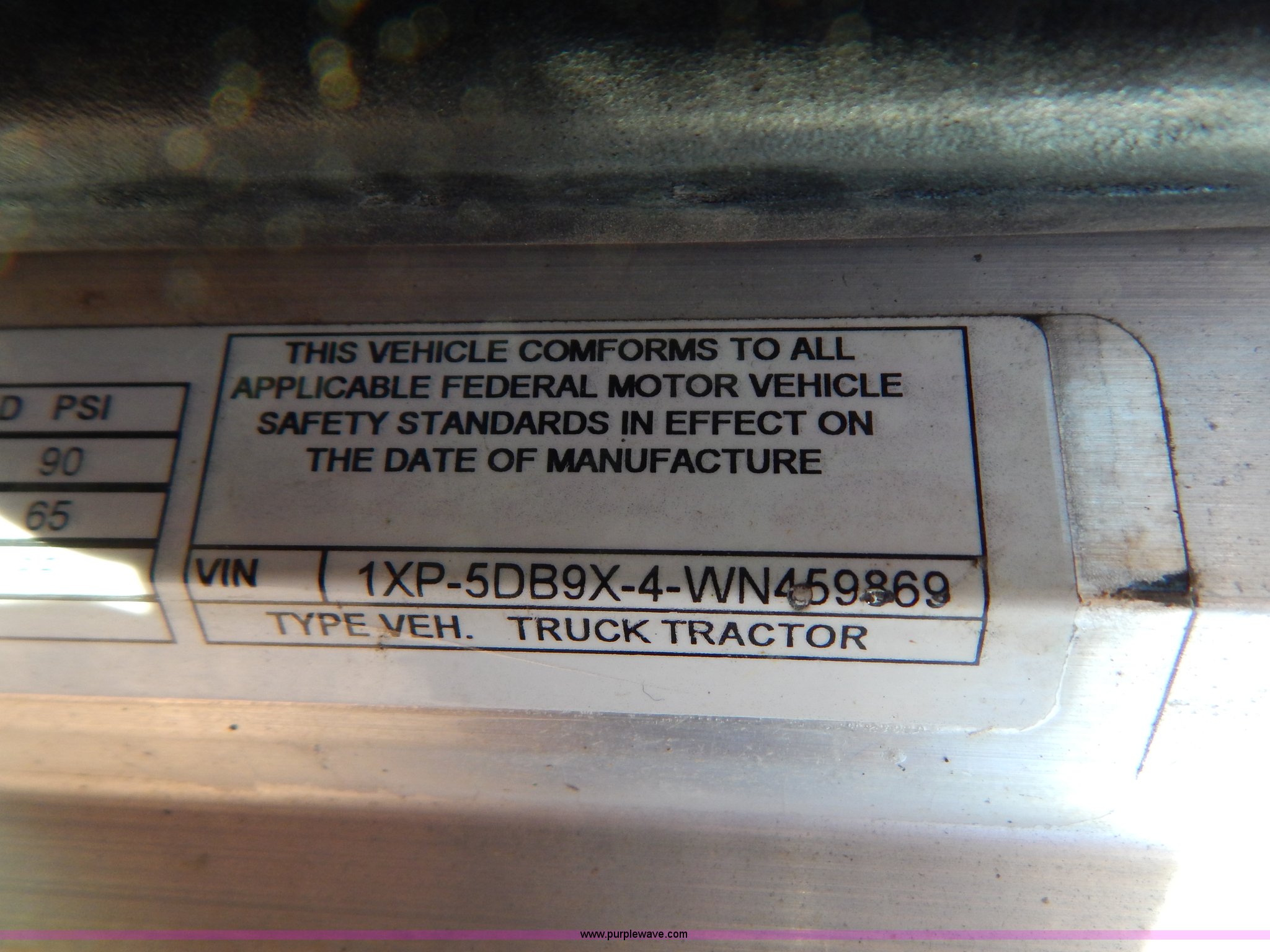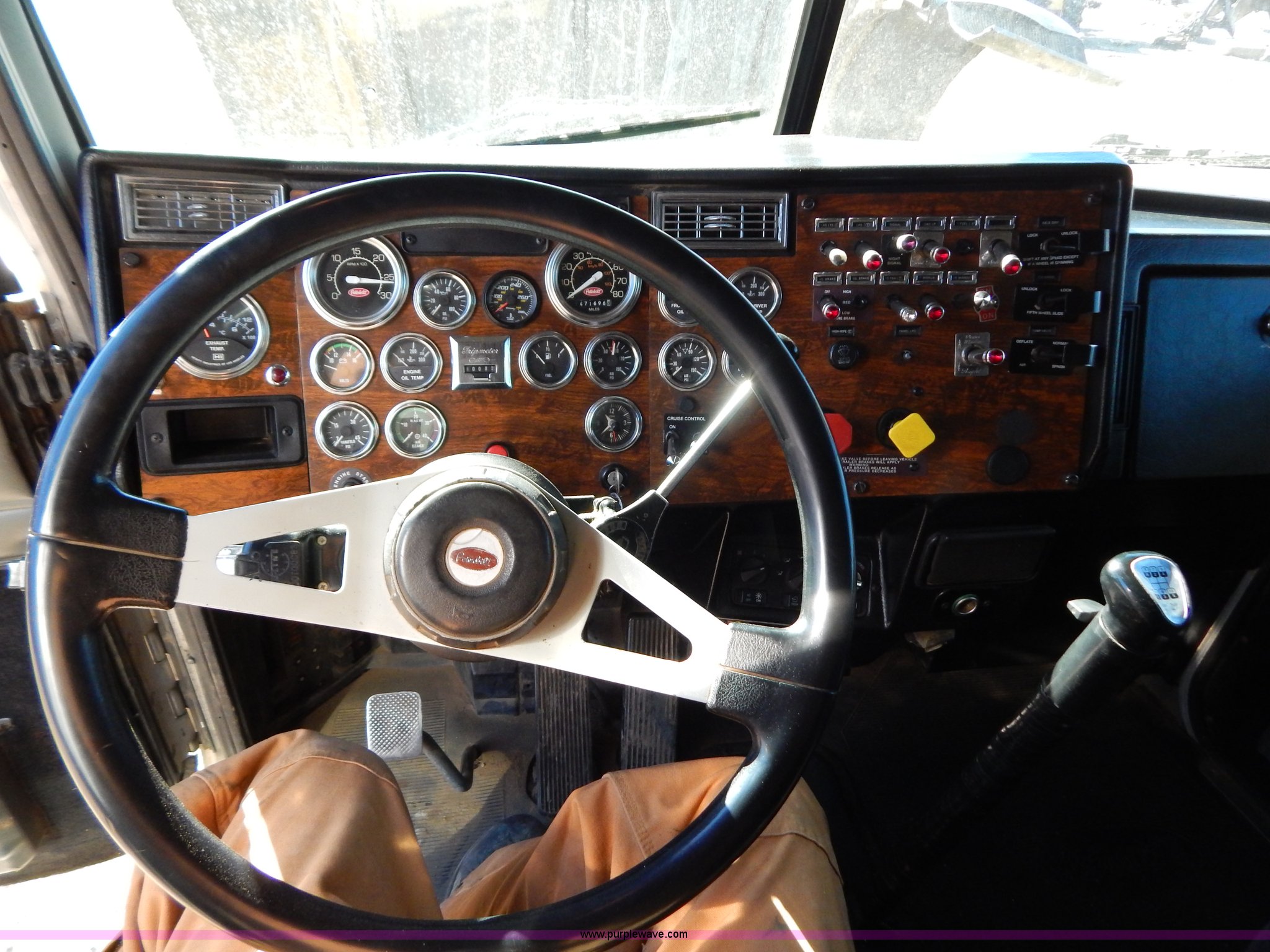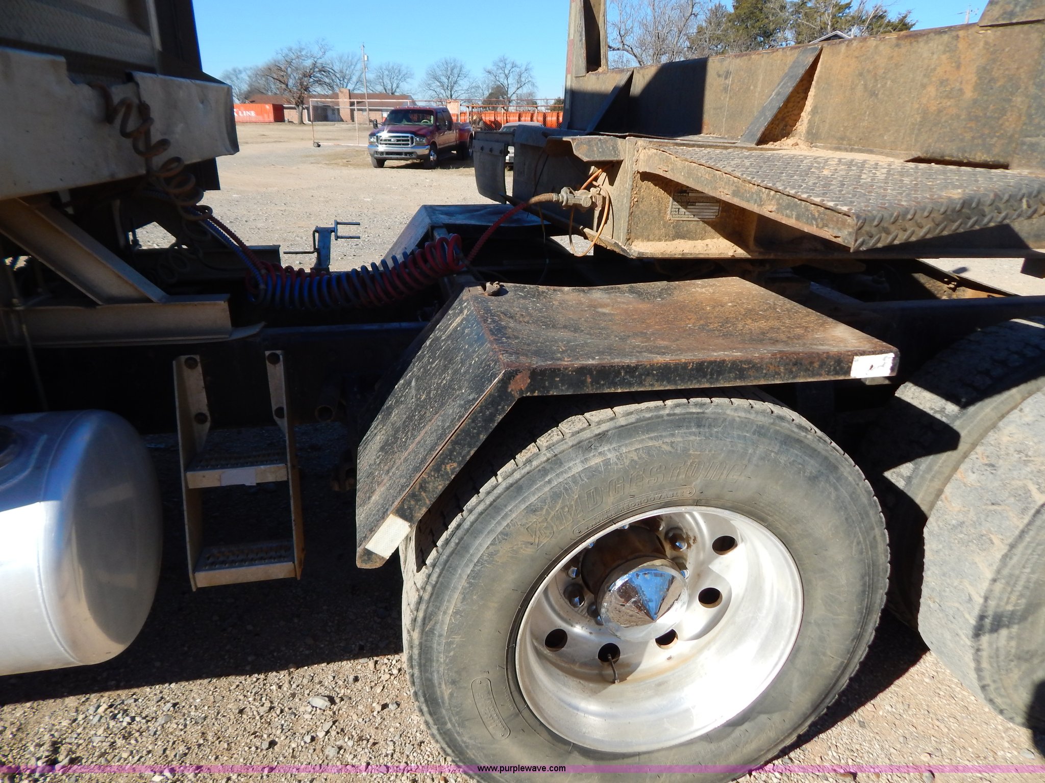 Purple Wave is selling a used Truck Tractor in Oklahoma. This item is a with the following: 1,471,696 miles on odometer, Caterpillar 3406 14.6L L6 diesel engine, Eaton Fuller 10 speed manual transmission, AC and heat, Tilt, Cruise, AM/FM/CD, Air suspension seat, Heated mirrors, Vulcan V200 on-board scale monitor, Air ride cab, Unibilt Ultracab 60" sleeper, Visor, Chrome bumper, Headache rack, Window, Storage, Chain hanger, Half fenders, Dual 150 gallon fuel tanks, Dual front exhaust stacks, Air suspension, Air brakes, Jake brake, 11R24.5 tires, GVWR 48,000 lbs, FAWR 12,000 lbs, IAWR 18,000 lbs, RAWR 18,000 lbs, Interior/exterior cosmetic damage