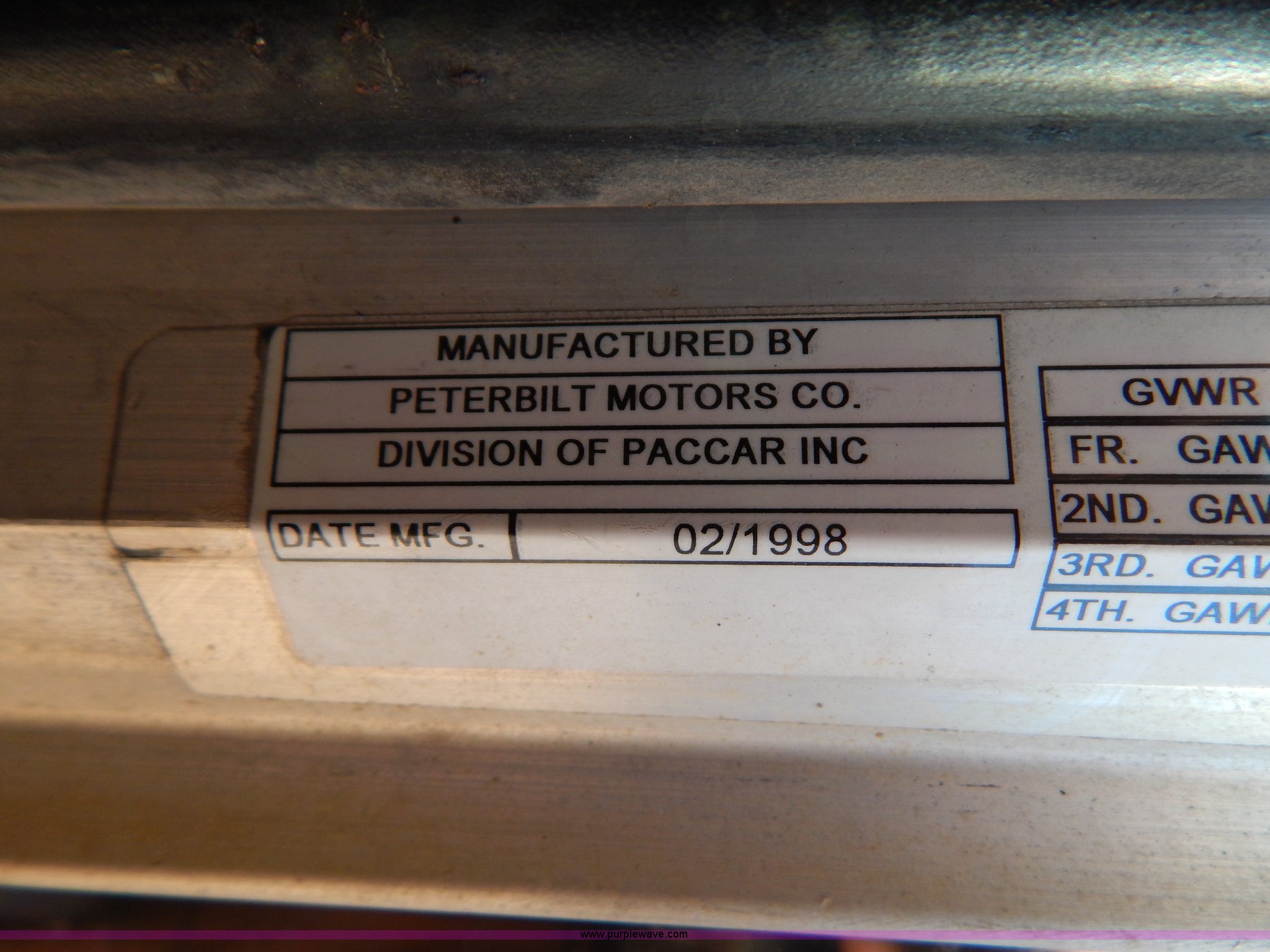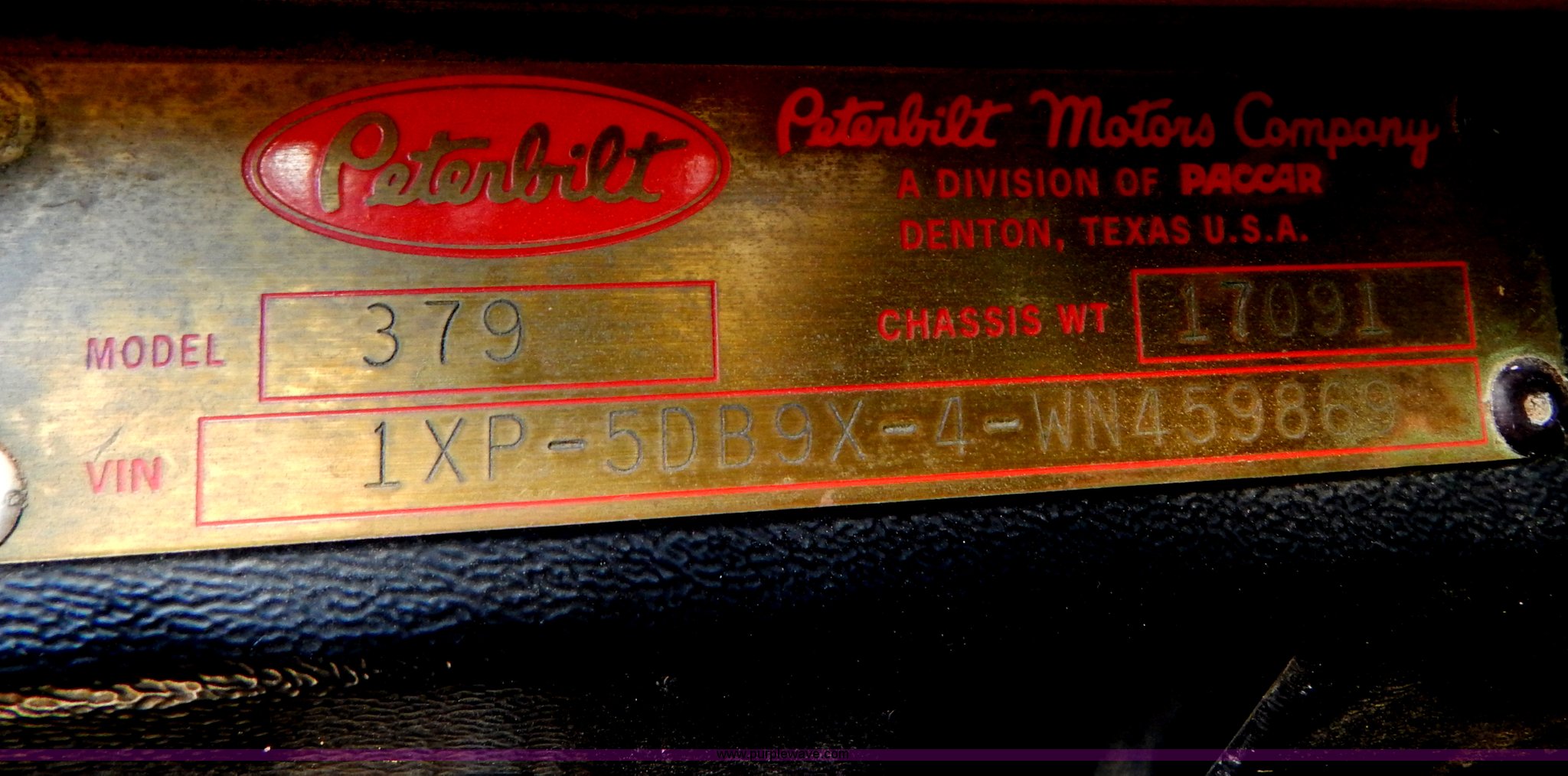 1998 Peterbilt 379 semi truck. 1,471,696 miles on odometer, Caterpillar 3406 14.6L L6 diesel engine, Eaton Fuller 10 speed manual transmission, AC and heat, Tilt, Cruise, AM/FM/CD, Air suspension seat, Heated mirrors, Vulcan V200 on-board scale monitor, Air ride cab, Unibilt Ultracab 60" sleeper, Visor, Chrome bumper, Headache rack Window, Storage, Chain hanger, Half fenders, Dual 150 gallon fuel tanks, Dual front exhaust stacks, Air suspension, Air brakes, Jake brake, 11R24.5 tires, GVWR 48,000 lbs, FAWR 12,000 lbs, IAWR 18,000 lbs, RAWR 18,000 lbs, Interior/exterior cosmetic damage. Title distribution may be delayed up to 14 days from verification of funds. 1XP5DB9X4WN459869. View equipment video. 2700 S. Mississippi. Atoka, OK 74525