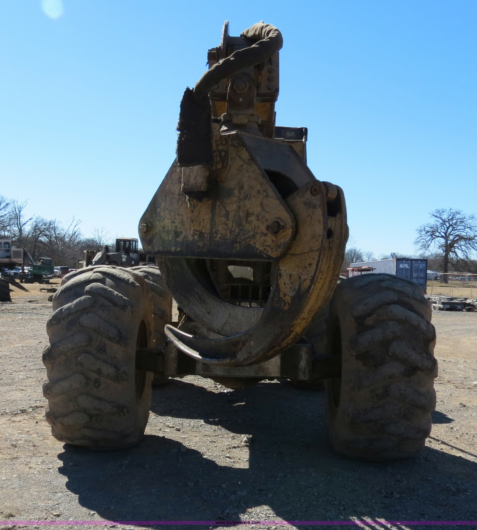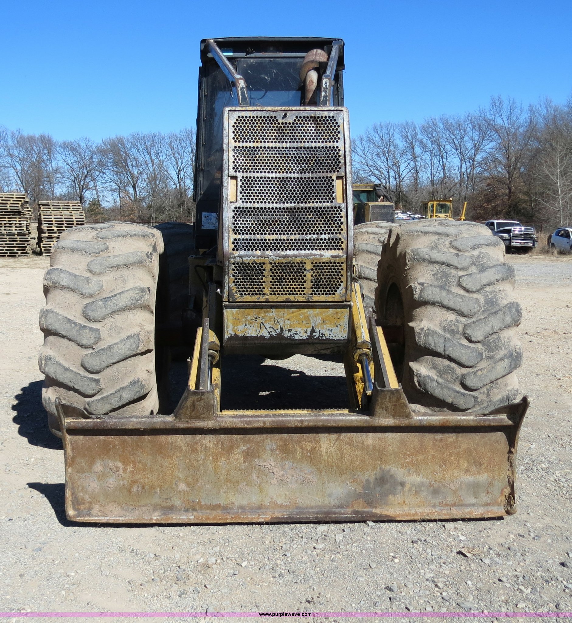 Purple Wave is selling a used Skidder in Oklahoma. This item is a with the following: 390 hours on meter, Cummins B5.9-C 5.9L six cylinder turbo diesel engine, Spicer APC70 powershift transmission, Enclosed cab, AM/FM/cassette, Suspension seat, Sweeps, Window screens, Work lights, 99"W blade, Dual function arch, Winch, 1" diameter cable, 30.5 x 32 tires, Serial SK15090