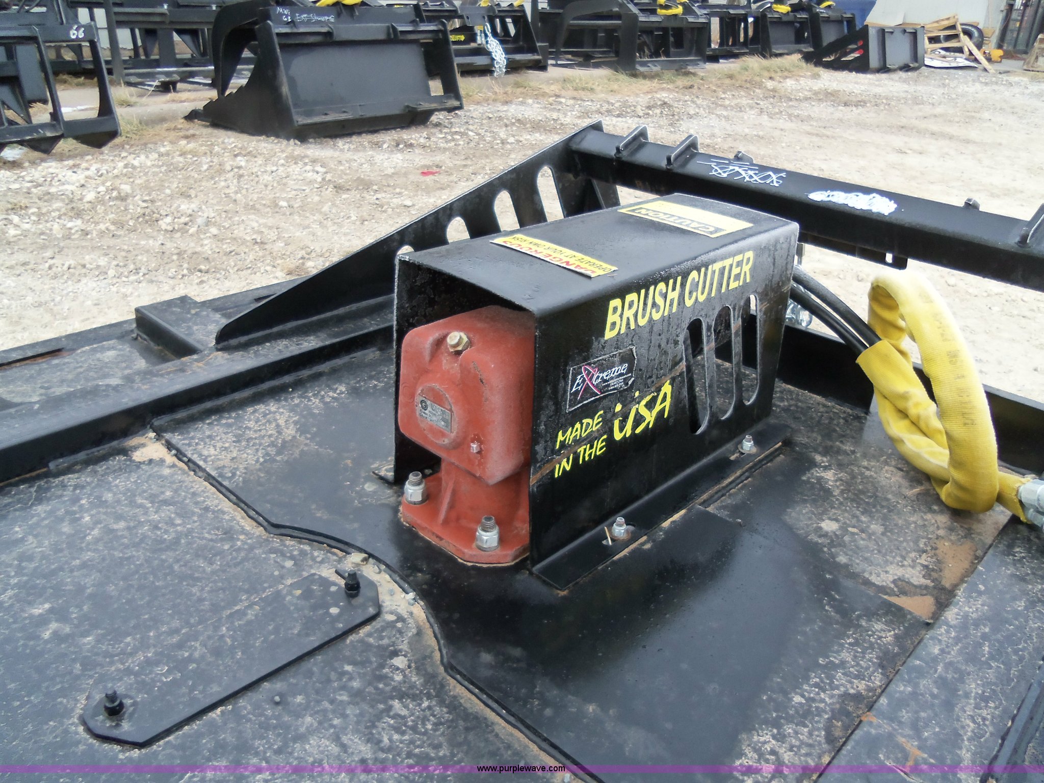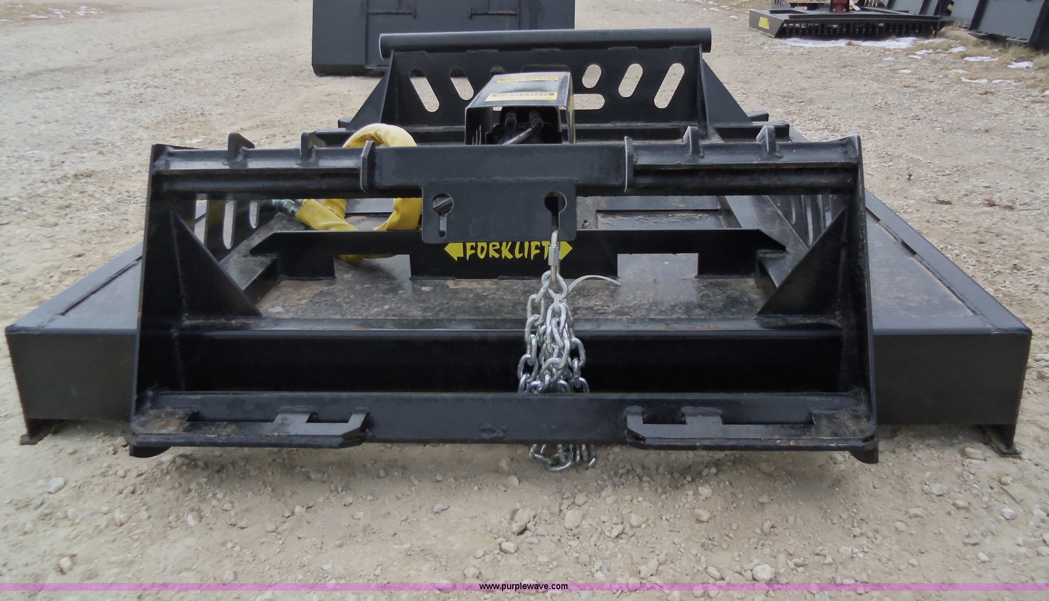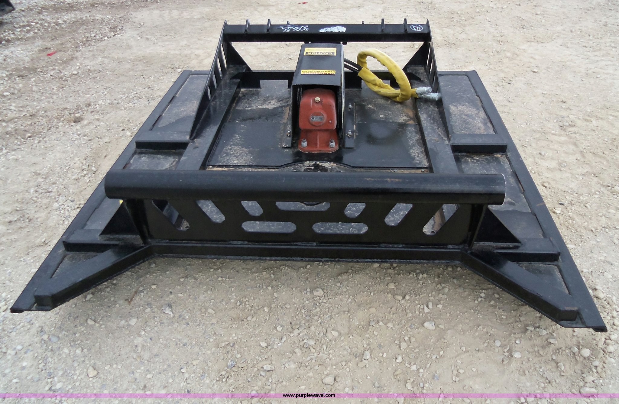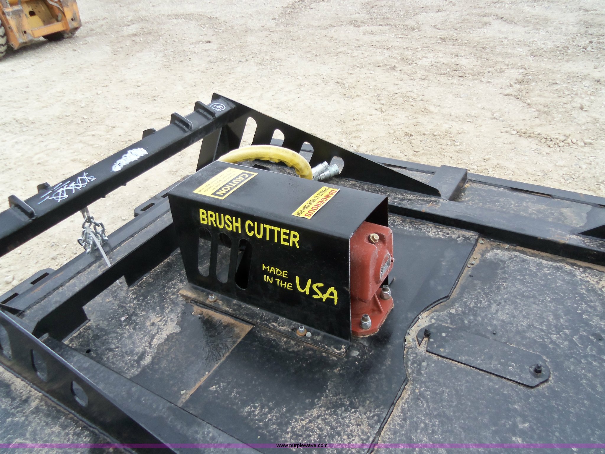 Purple Wave is selling a used Other Attach. or Equip. in Kansas. This item is a Wildkat heavy duty brush cutter/mower with push bar with the following: 72"W, Skid steer quick attach, Chains/forklift pockets, Seven gauge steel deck, Omni gear box, 75 HP, Parker hoses, drive motor with cross port, Low flow hydraulics up to 20 gpm not more than 25 gpm, 1/2" thick blades, Unused