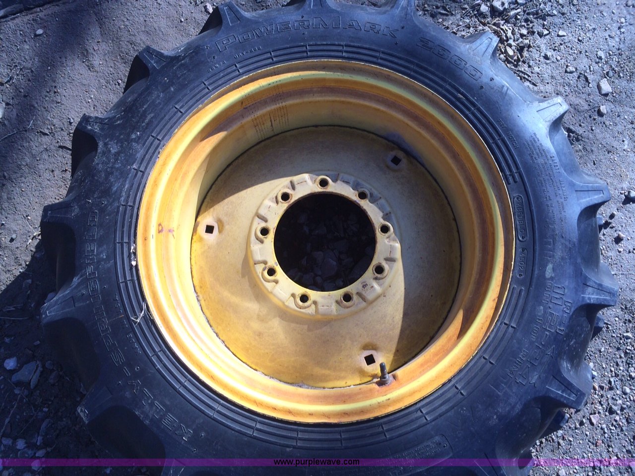 Purple Wave is selling a used Industrial Tires or Tracks in Nebraska. This item is a (16) 11.2R24 tires and wheels with the following: Removed from T&L pivot, (6) Goodyear Duratorque, (4) Kelly Springfield Powermark 2000, (3) Coop Agriforce, (2) Firestone Irrigation Special, (1) Irrigation Plus