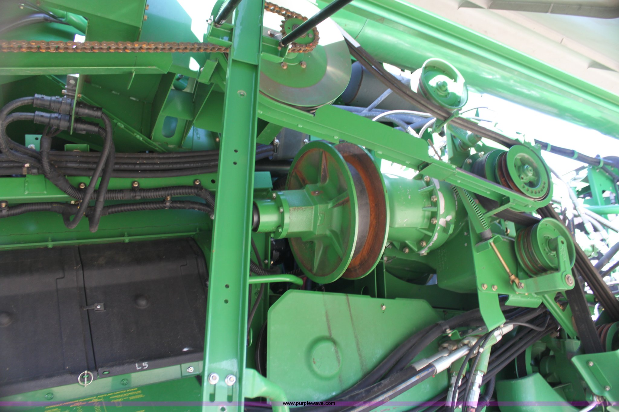 Purple Wave is selling a used Combine in Kansas. This item is a 2010 John Deere 9770 STS RWA combine with the following: 2,044 engine hours on meter, 1,463 separator hours on meter, John Deere 6090 9.0L six cylinder diesel engine, 360 HP, ProDrive hydrostatic transmission, Heavy duty final drives, Contour Master feeder house, Hi torque, Five speed, Reverser, Hi capacity lift cylinders, Single point head hookup, Custom cutter extended wear separator, General purpose chaffer, Straw chopper, Wide spread, Fine cut, AC and heat, AM/FM/weatherband, Air suspension seat, Instructors seat, Tilt steering wheel, John Deere Command Center, Draper belt speed control, In-cab chaffer and sieve adjustment, Auto header height control, HarvestSmart feedrate control system, John Deere bin extensions, 26' hi capacity unloading auger, Concaves of the purchasers choice will be included, Round bar, large wire, or small wire, Adjustable rear axle with heavy duty spindles, Work lights, Operator's manual, GreenStar ready, Monitor is not included, Receiver is not included, 520/85R42 front tires, 480/70R30 rear tires, Maintenance records available, Serial 1H09770SHA0736456, Unit # 15852