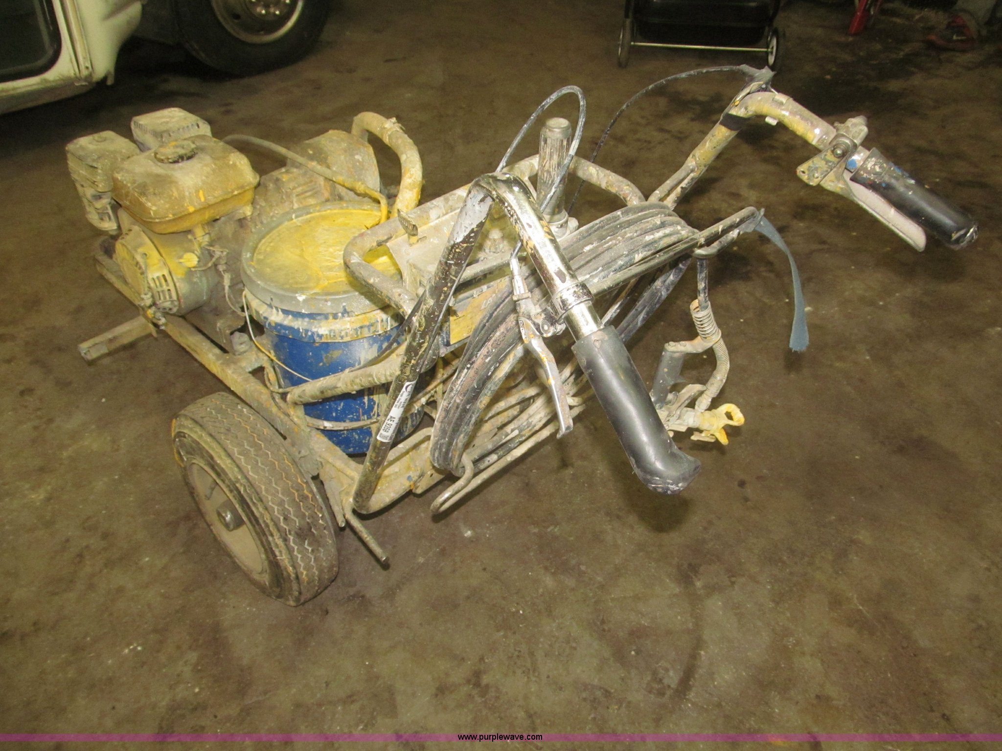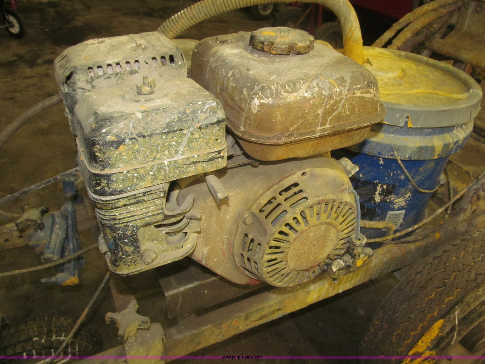 Purple Wave is selling a used Road Safety Equip. in Iowa. This item is a Graco Line Lazer II Smart Control pavement marking/striping machine with the following: Five gallon bucket, High pressure gun with lockable trigger, Adjustable width sliding bar, Adjustable pressure, Honda gas engine, In-line paint filter, High pressure hose with hose rack, Front swivel steer tire, 4.80-8 rear tires, Paint over spray