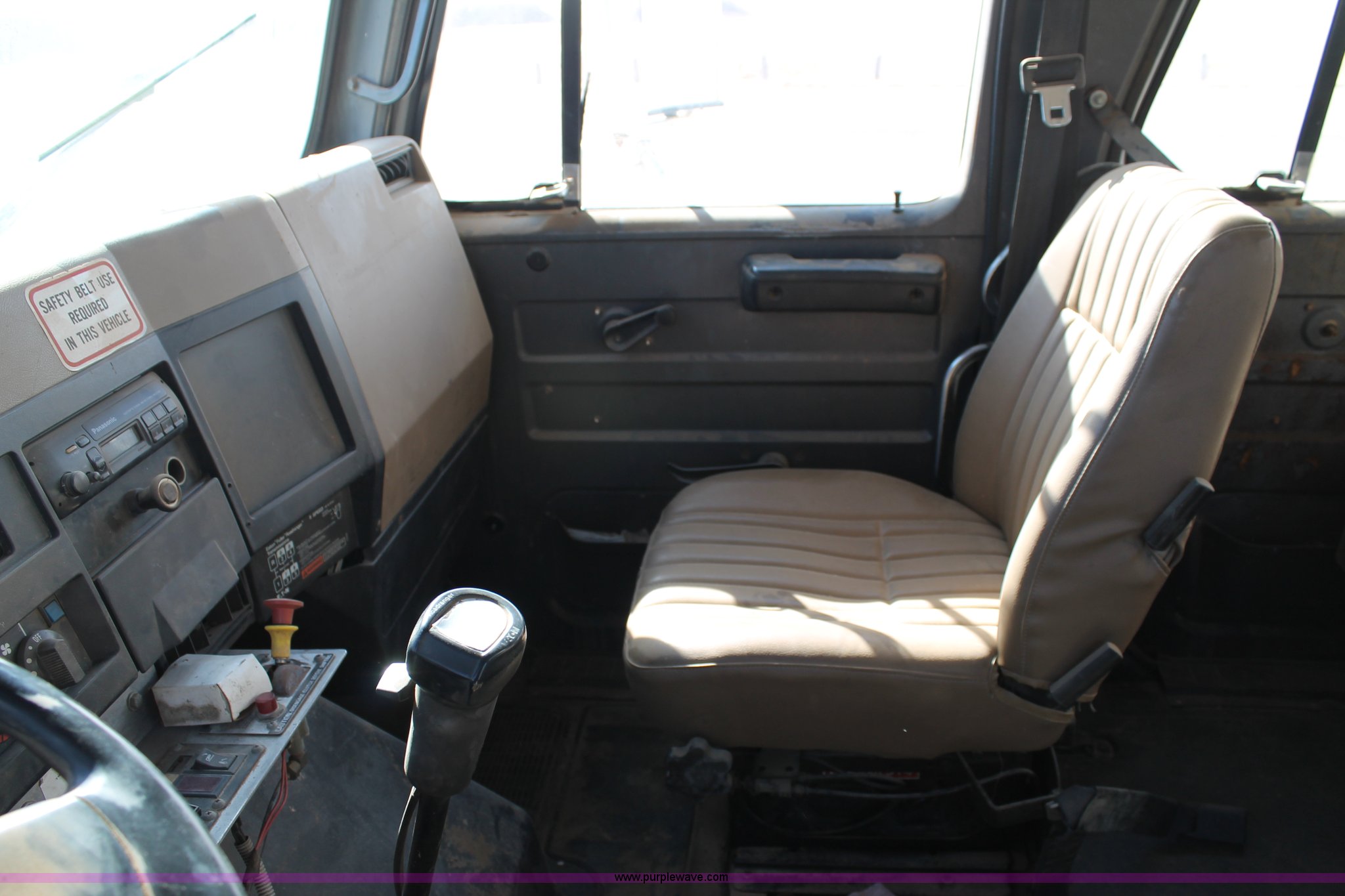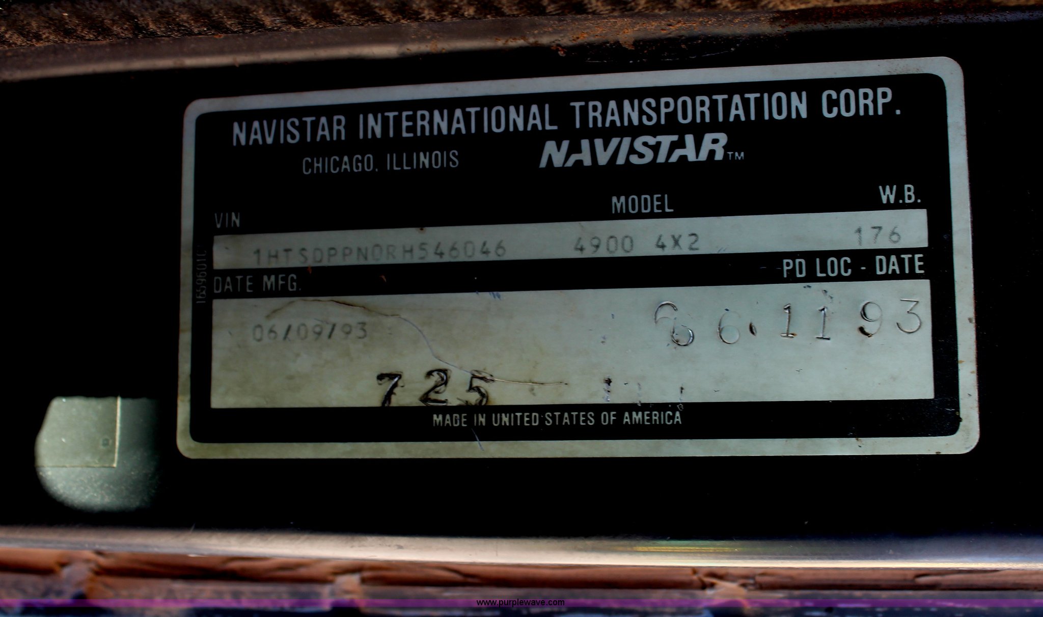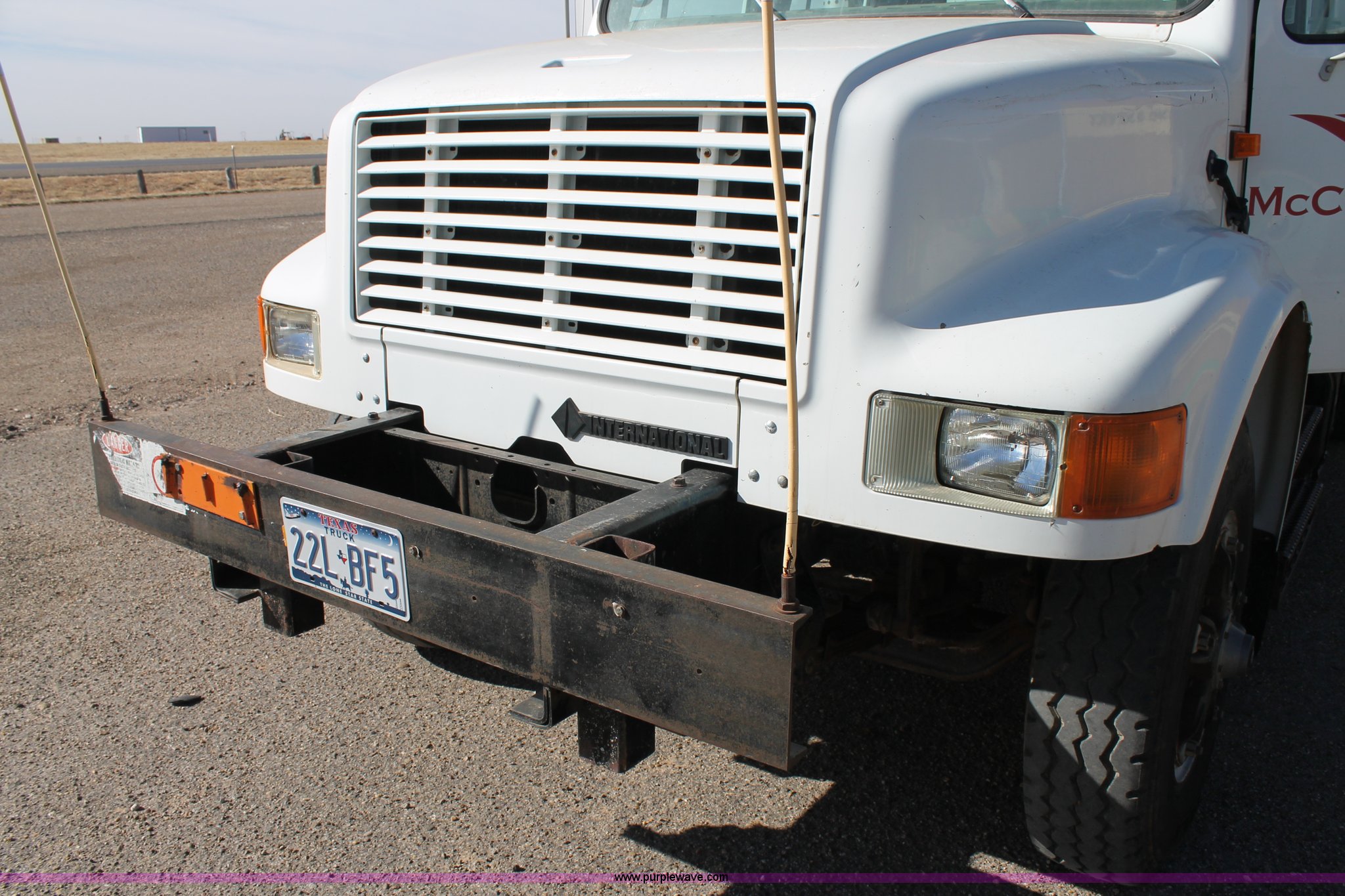 Purple Wave is selling a used Service Truck in Texas. This item is a 1994 International 4900 Crew Cab service truck with the following: 241,148 actual miles, International DT466 7.6L L6 diesel engine, 210 HP, Eaton Fuller nine speed manual transmission, AC and heat, Tilt, AM/FM/cassette, Manual windows and locks, Air ride suspension, Vinyl interior, Extended front bumper for winch mount, Dual fuel tanks, Rear hydraulic auxiliary remotes, Rear slide-out work table, Rear corner mounting tables, Rear work lights, 425AT auto truck hydraulic winch, 4,200 lbs capacity at 9'3" reach, 1,350 lbs capacity at 25'2" reach, Hydraulic rear stabilizers, Handheld winch controller, PTO, Receiver hitch, Trailer wiring, 10.00R20 tires, GVWR 33,000 lbs, FAWR 12,000 lbs, RAWR 21,000 lbs