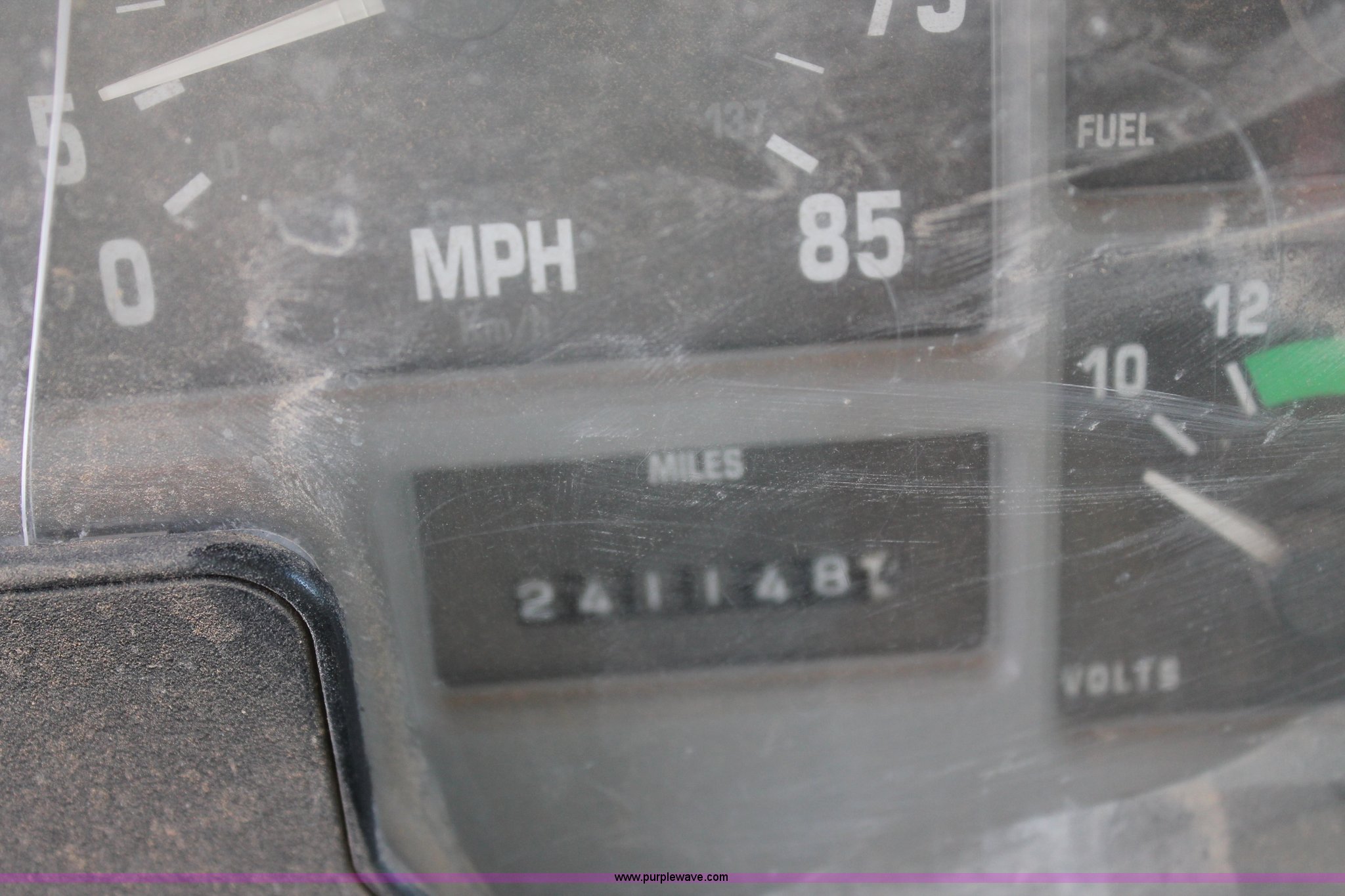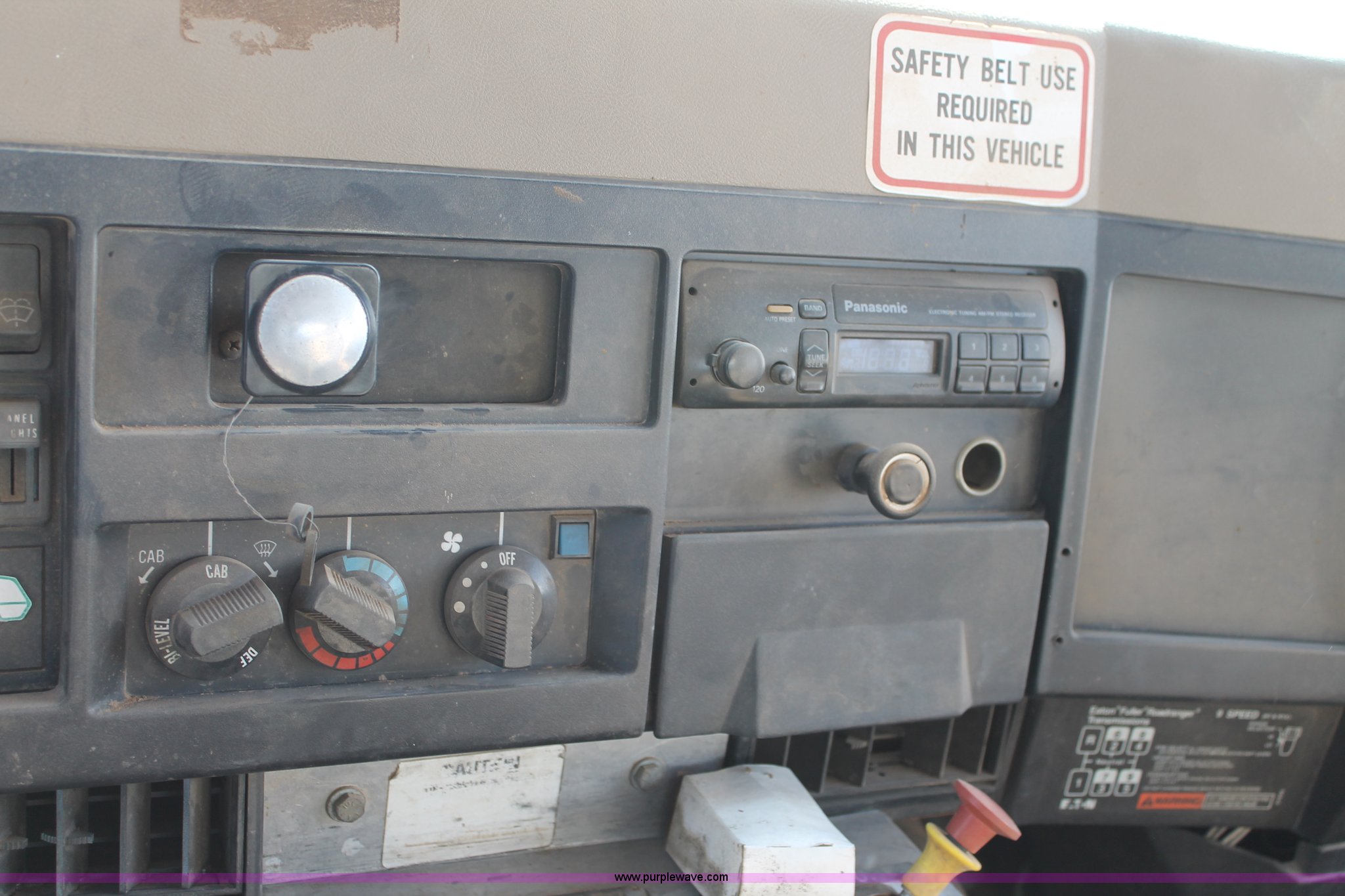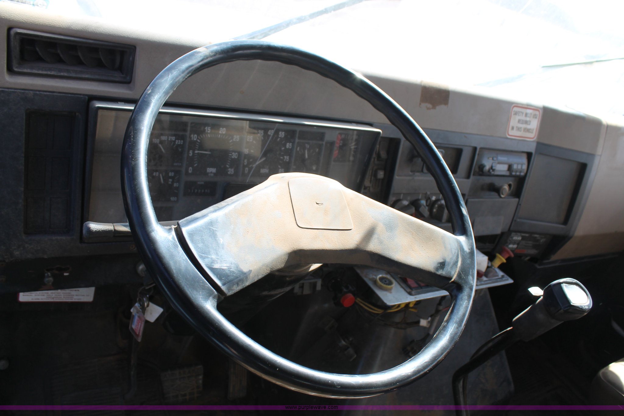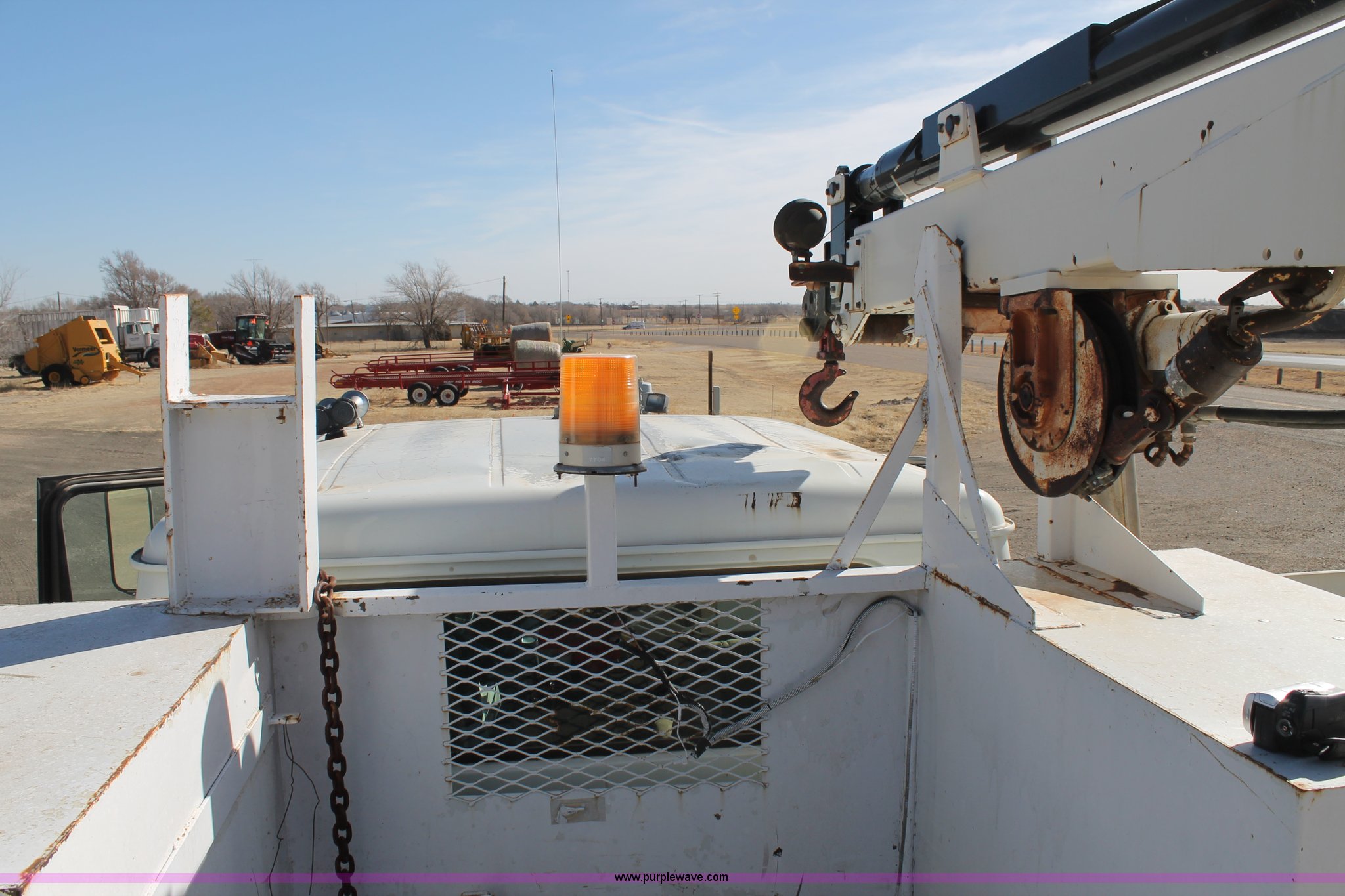Purple Wave is selling a used Service Truck in Texas. This item is a 1994 International 4900 Crew Cab service truck with the following: 241,148 actual miles, International DT466 7.6L L6 diesel engine, 210 HP, Eaton Fuller nine speed manual transmission, AC and heat, Tilt, AM/FM/cassette, Manual windows and locks, Air ride suspension, Vinyl interior, Extended front bumper for winch mount, Dual fuel tanks, Rear hydraulic auxiliary remotes, Rear slide-out work table, Rear corner mounting tables, Rear work lights, 425AT auto truck hydraulic winch, 4,200 lbs capacity at 9'3" reach, 1,350 lbs capacity at 25'2" reach, Hydraulic rear stabilizers, Handheld winch controller, PTO, Receiver hitch, Trailer wiring, 10.00R20 tires, GVWR 33,000 lbs, FAWR 12,000 lbs, RAWR 21,000 lbs