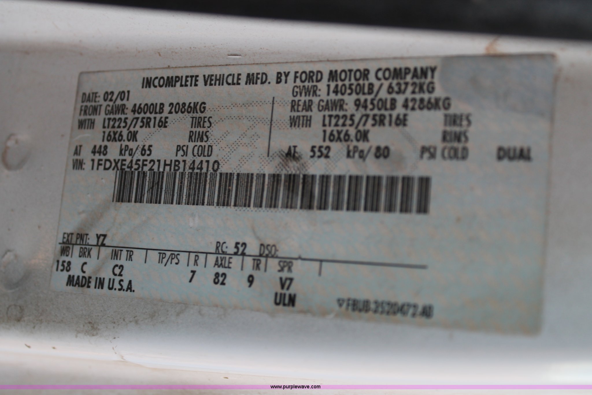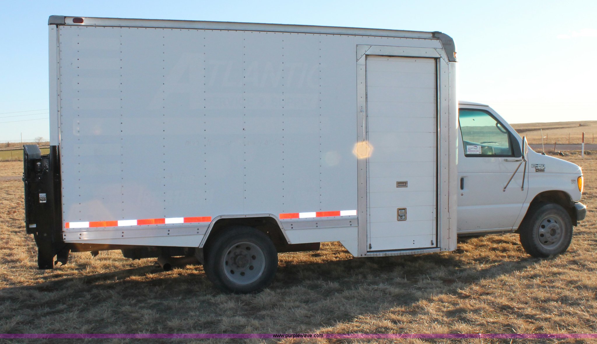Purple Wave is selling a used Box Truck in Oklahoma. This item is a 2001 Ford Econoline E450 box truck with the following: 271,611 actual miles, 7.3L V8 turbo diesel engine, Automatic transmission, AC and heat, Tilt, Cruise, AM/FM, Manual windows and locks, Cloth interior, 163"L x 91"W x 79"H box van, Rear roll up door, Right side entry door, In-cab rear access door, Tommy-Gate lift gate, Model 911046, Serial 90427,, Trailer wiring, 225/75R16 tires, GVWR 14,050 lbs, FAWR 4,600 lbs, RAWR 9,450 lbs