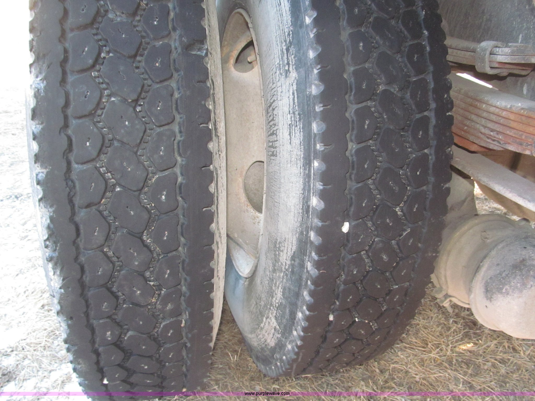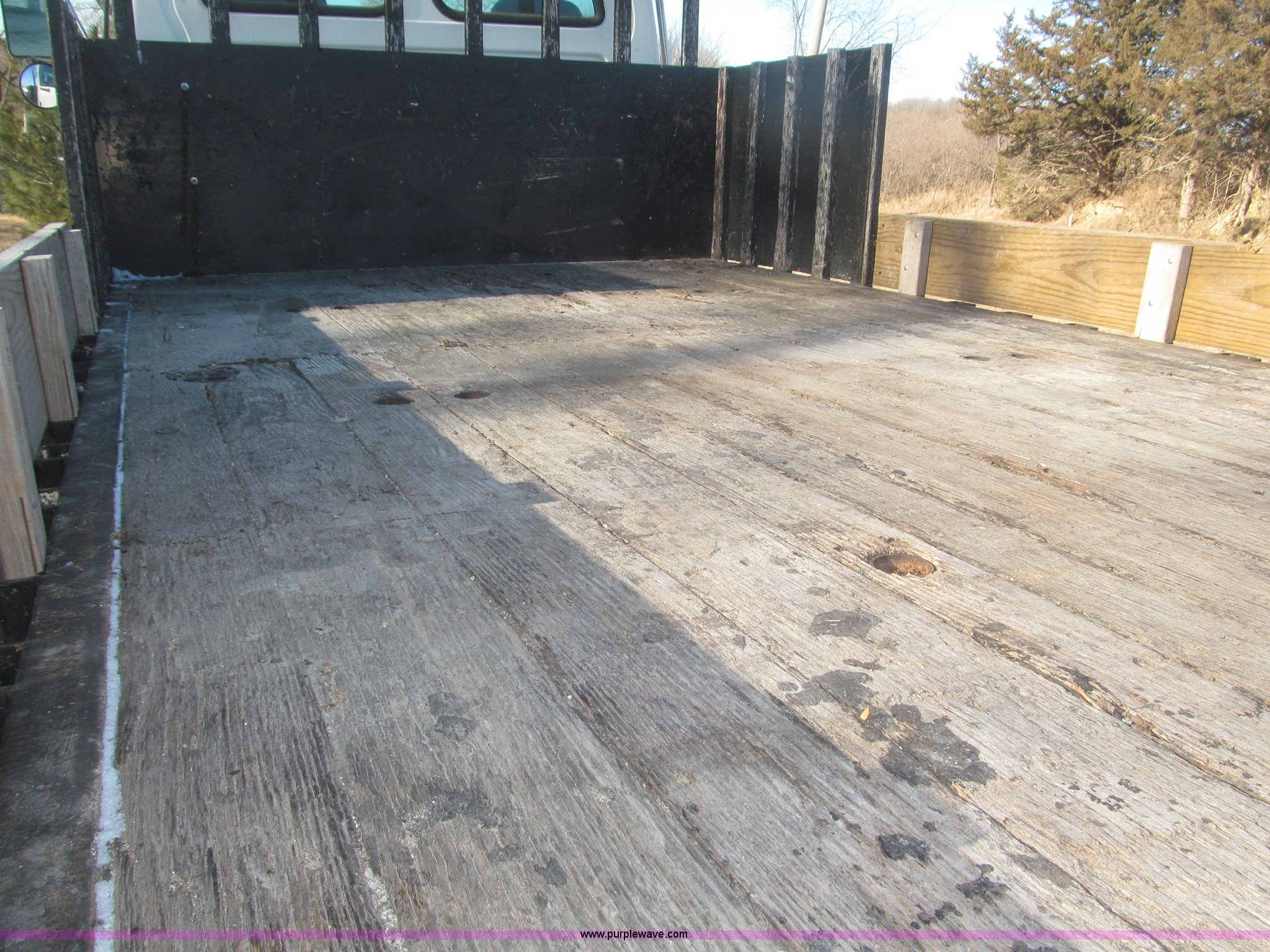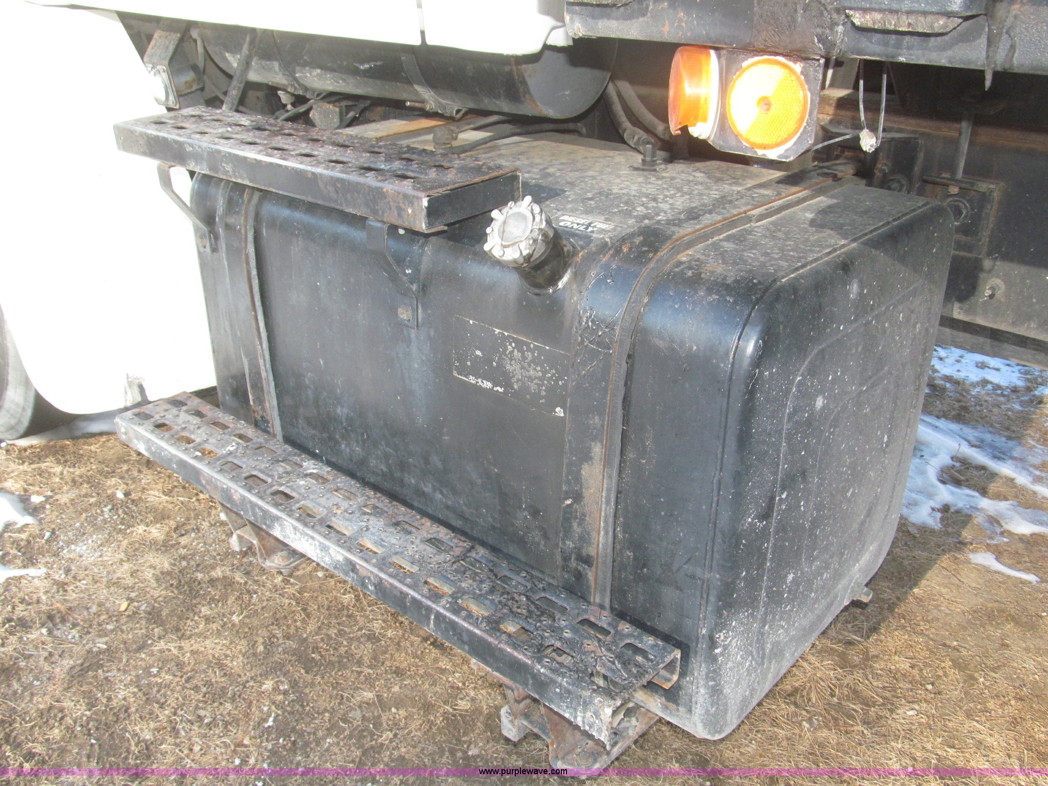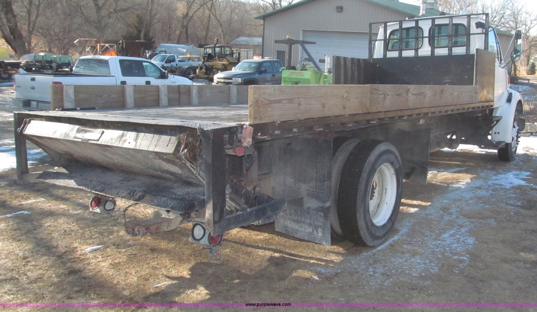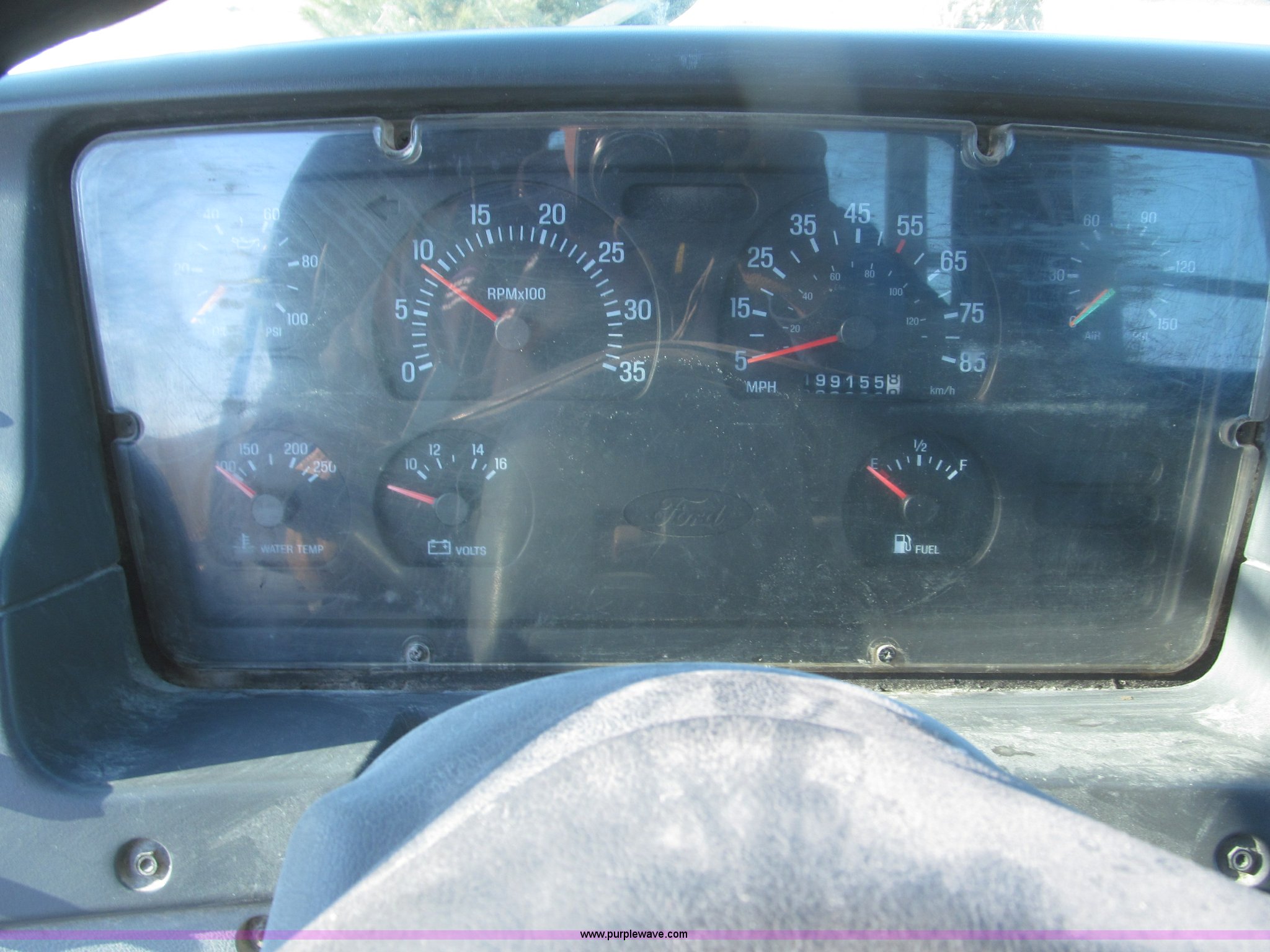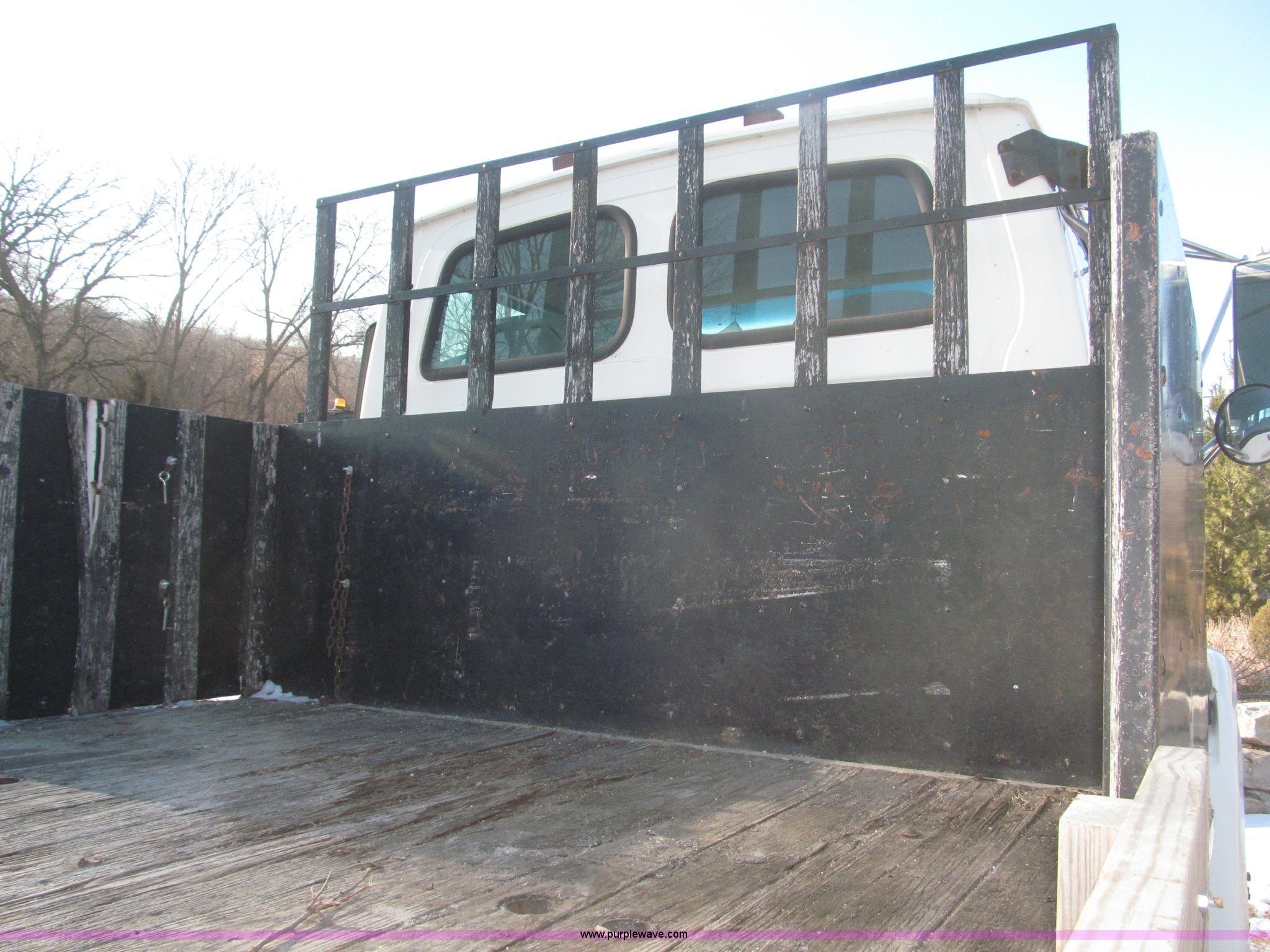 Purple Wave is selling a used Flat Bed Truck in Iowa. This item is a 1997 Ford L8501 Louisville 20' flatbed truck with lift gate with the following: 199,156 miles on odometer, Cummins ISB 5.9L L6 turbo diesel engine, Six speed manual transmission, AC and heat, AM/FM, Air suspension seat, Cloth interior, Twin rear windows, Roof mount horn, Headache rack, Block heater, Wood flatbed, 20'L x 94"W x 49.5"H, Lift gate, Removable side boards, Stake pockets, Aluminum toolbox, 48"W x 18"H x 18"D, 50 gallon fuel tank, 2" receiver hitch, Spring suspension, Air brakes, Mudflaps, 216" wheelbase, 10R22.5 tires, GVWR 26,000 lbs, FAWR 8,500 lbs, RAWR 17,500 lbs, Maintenance records available, Cracked windshield