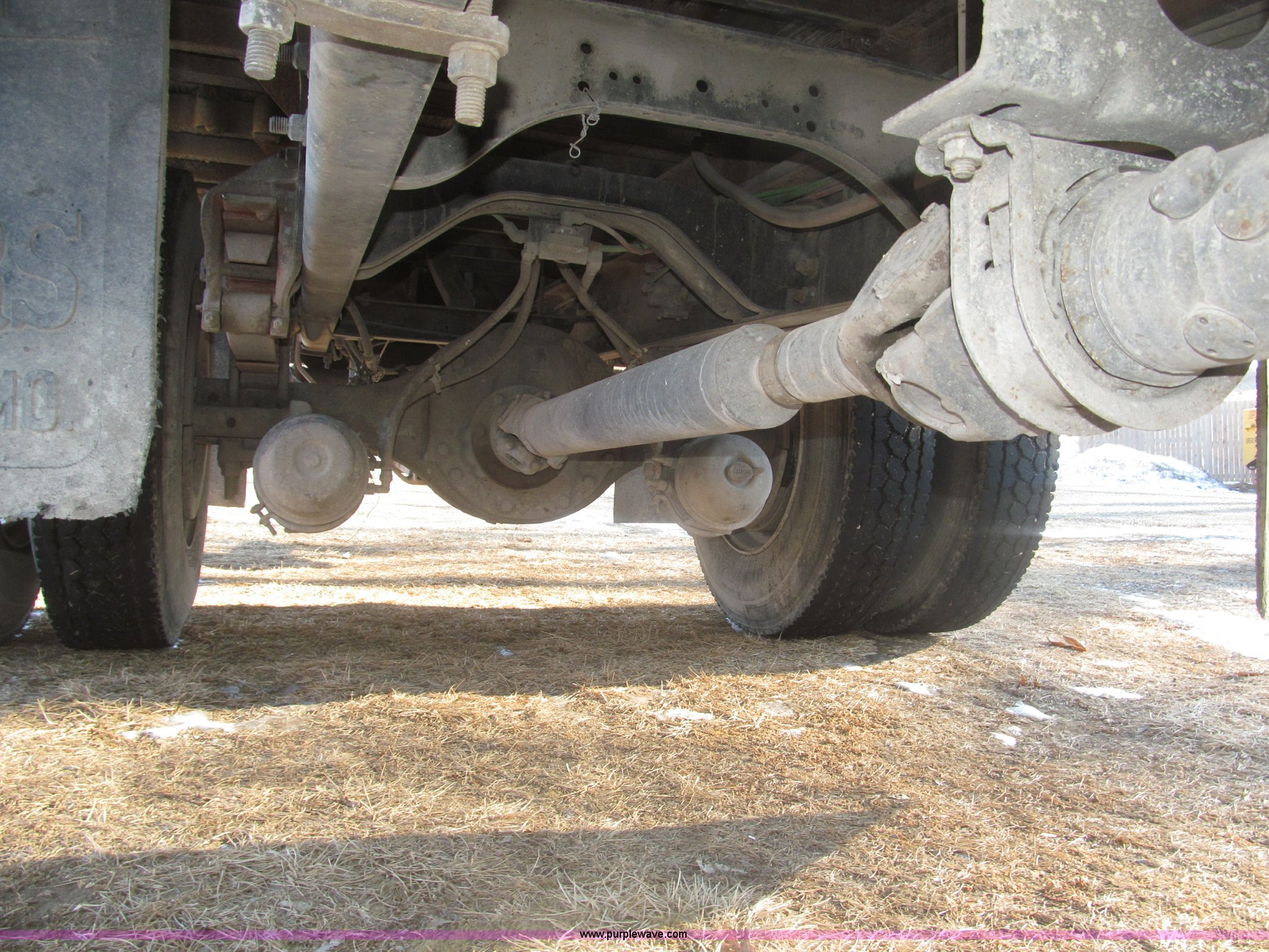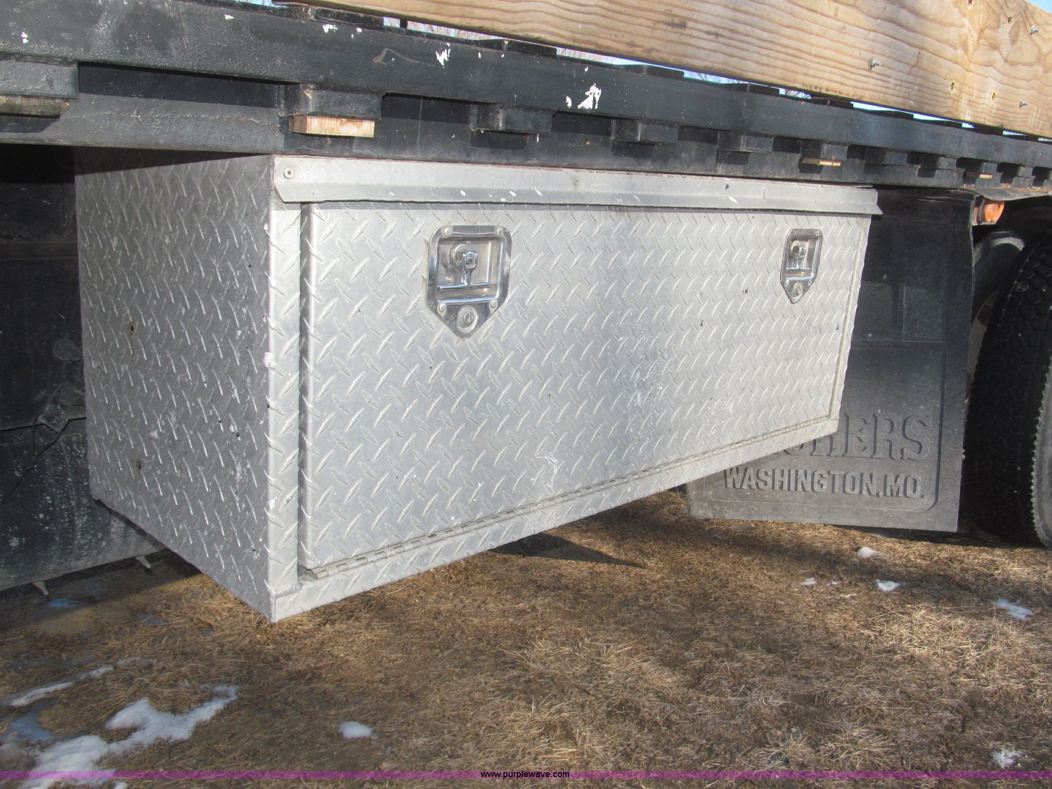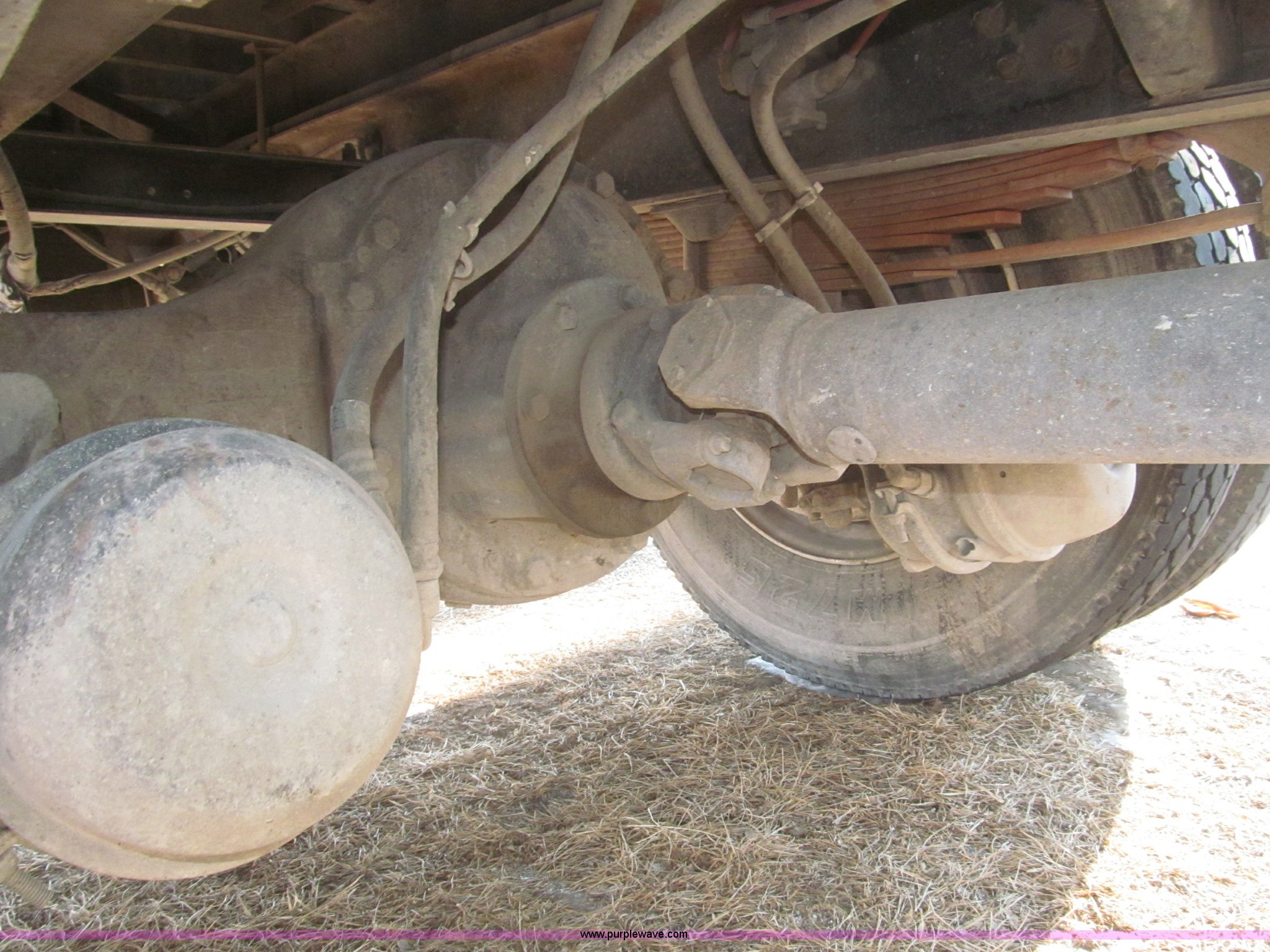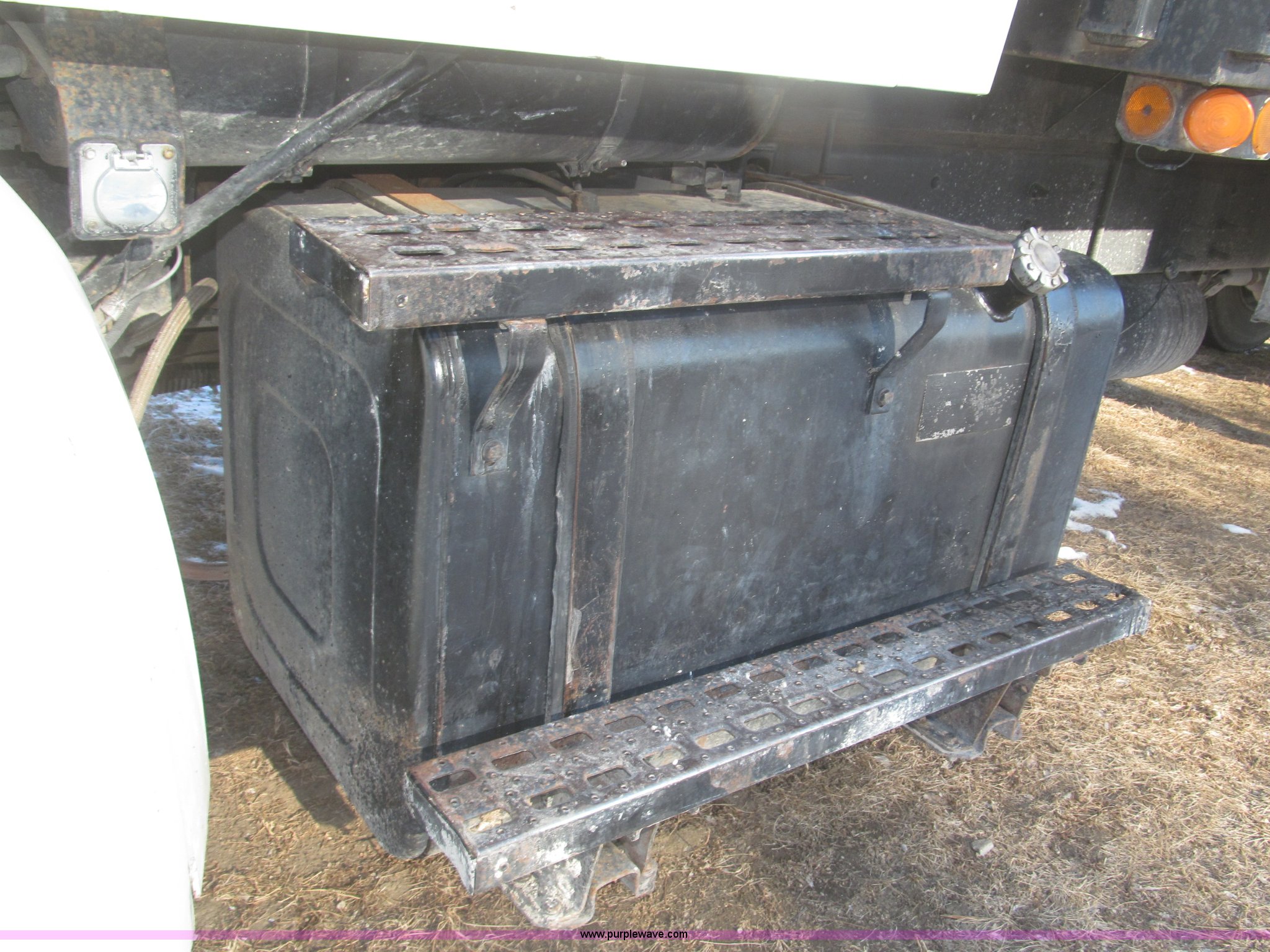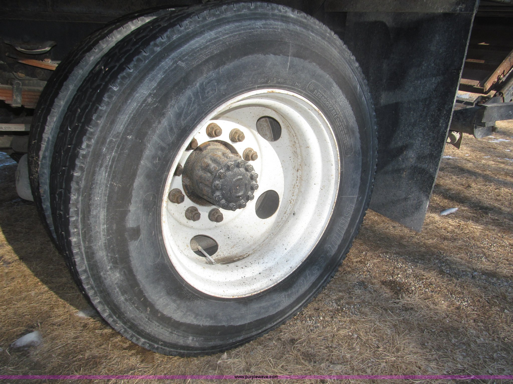 Purple Wave is selling a used Flat Bed Truck in Iowa. This item is a 1997 Ford L8501 Louisville 20' flatbed truck with lift gate with the following: 199,156 miles on odometer, Cummins ISB 5.9L L6 turbo diesel engine, Six speed manual transmission, AC and heat, AM/FM, Air suspension seat, Cloth interior, Twin rear windows, Roof mount horn, Headache rack, Block heater, Wood flatbed, 20'L x 94"W x 49.5"H, Lift gate, Removable side boards, Stake pockets, Aluminum toolbox, 48"W x 18"H x 18"D, 50 gallon fuel tank, 2" receiver hitch, Spring suspension, Air brakes, Mudflaps, 216" wheelbase, 10R22.5 tires, GVWR 26,000 lbs, FAWR 8,500 lbs, RAWR 17,500 lbs, Maintenance records available, Cracked windshield