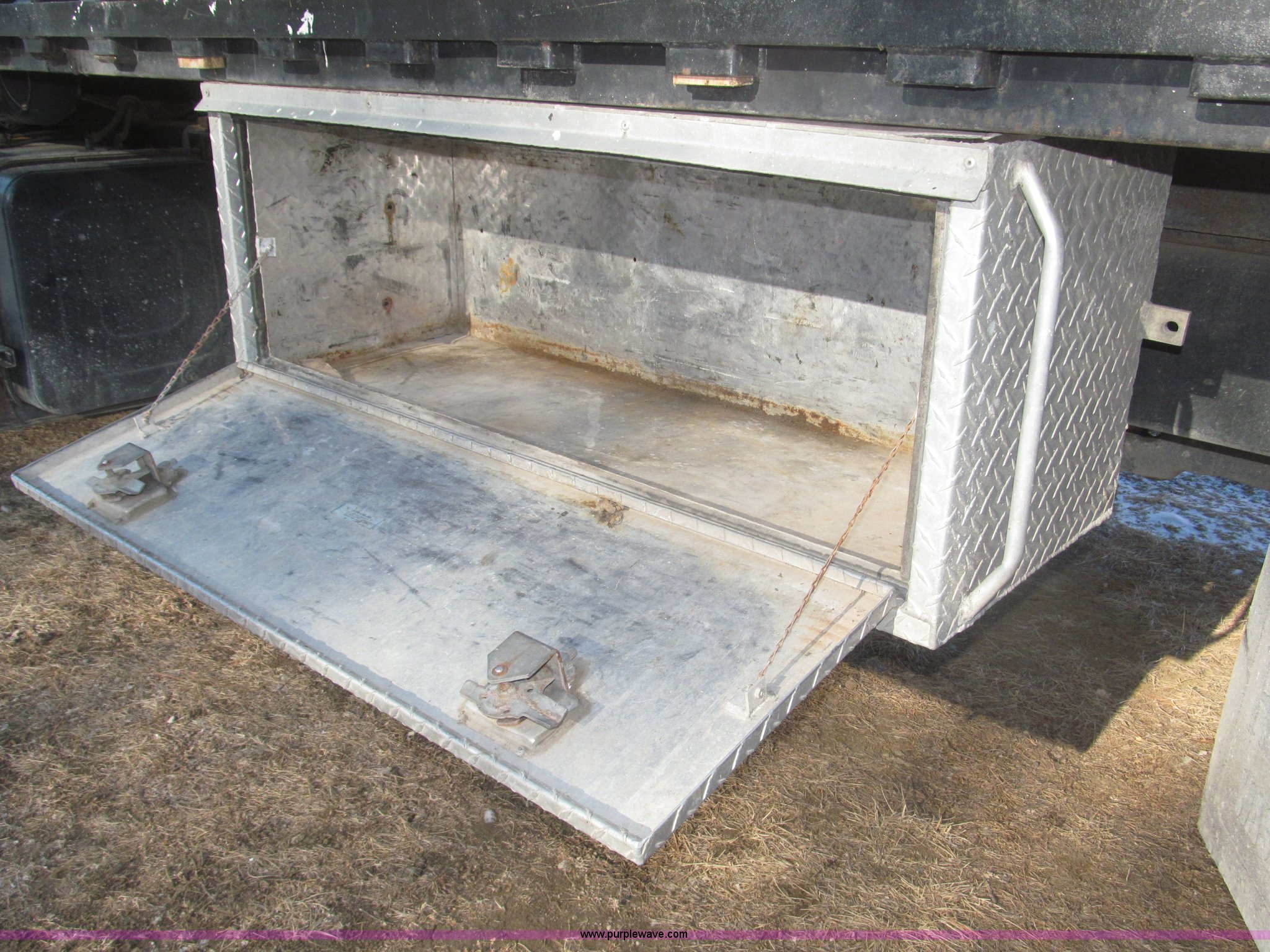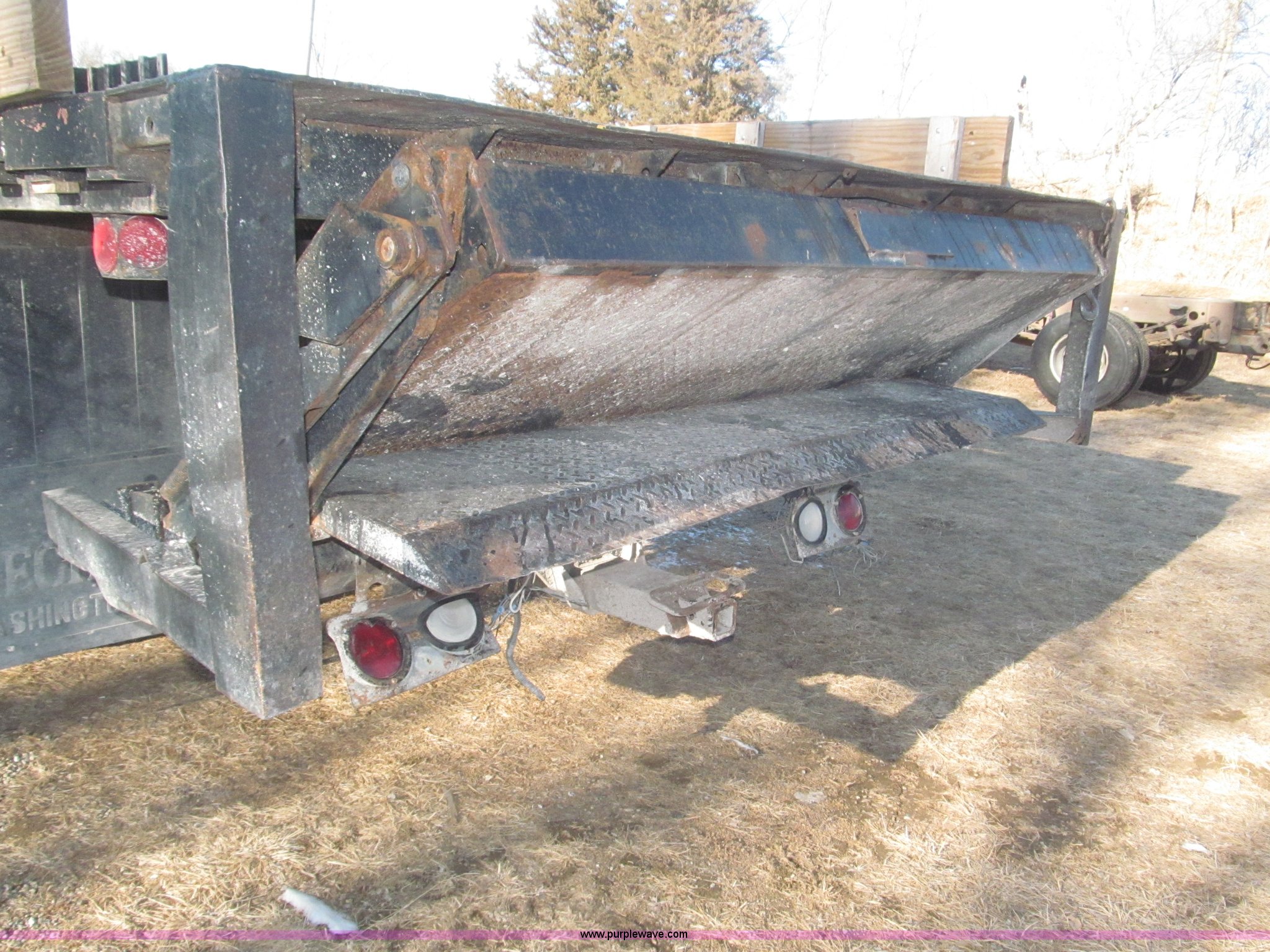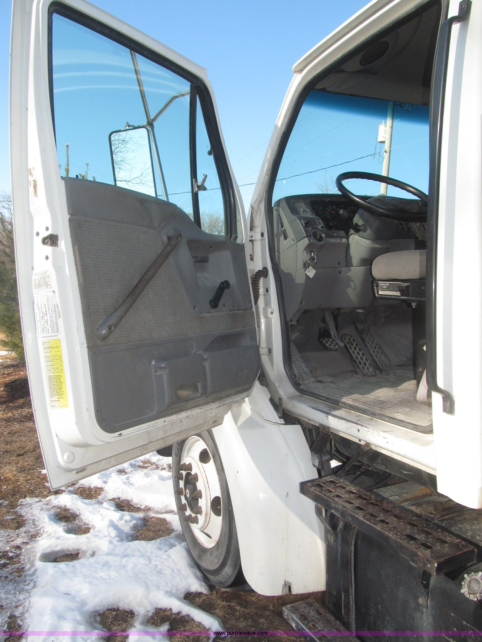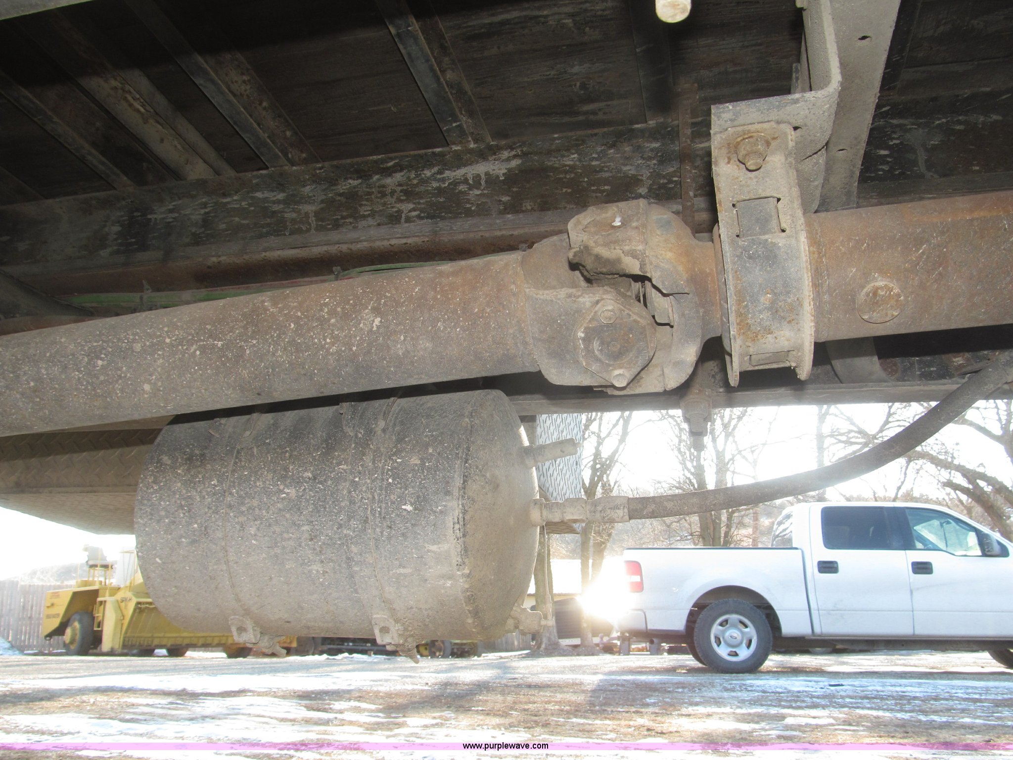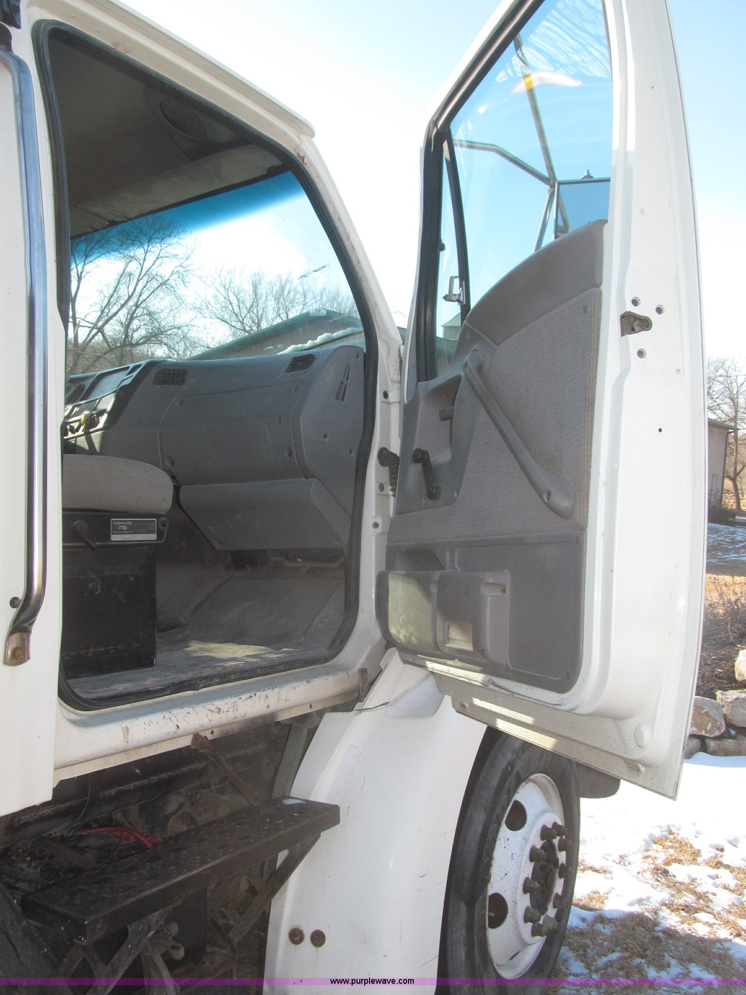 Purple Wave is selling a used Flat Bed Truck in Iowa. This item is a 1997 Ford L8501 Louisville 20' flatbed truck with lift gate with the following: 199,156 miles on odometer, Cummins ISB 5.9L L6 turbo diesel engine, Six speed manual transmission, AC and heat, AM/FM, Air suspension seat, Cloth interior, Twin rear windows, Roof mount horn, Headache rack, Block heater, Wood flatbed, 20'L x 94"W x 49.5"H, Lift gate, Removable side boards, Stake pockets, Aluminum toolbox, 48"W x 18"H x 18"D, 50 gallon fuel tank, 2" receiver hitch, Spring suspension, Air brakes, Mudflaps, 216" wheelbase, 10R22.5 tires, GVWR 26,000 lbs, FAWR 8,500 lbs, RAWR 17,500 lbs, Maintenance records available, Cracked windshield