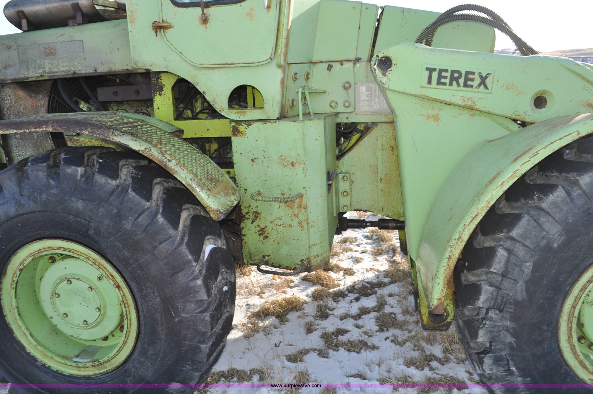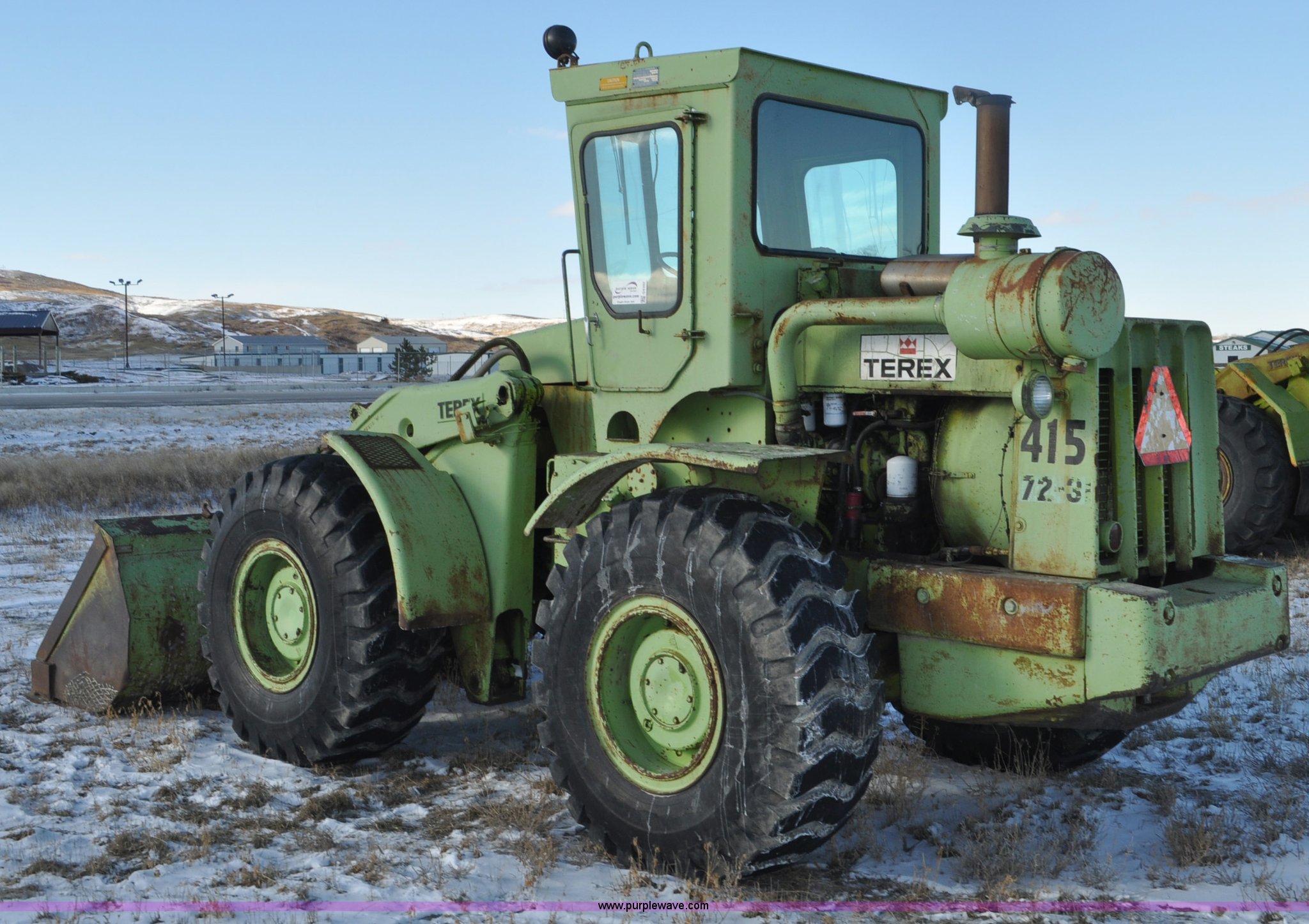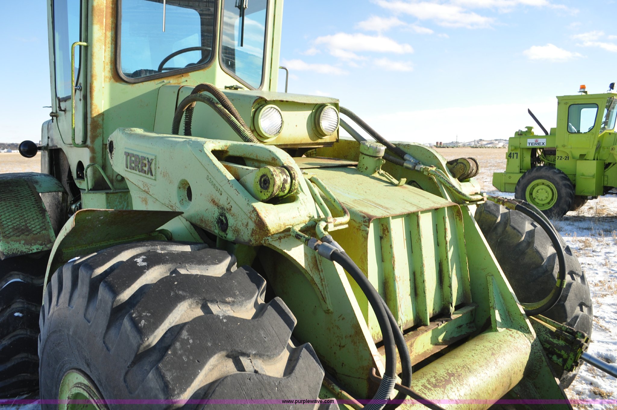 Purple Wave is selling a used Wheel Loader in South Dakota. This item is a 1976 Terex 72-31 AA loader with the following: 1,467 hours on meter, Detroit Diesel 471 four cylinder diesel engine, Powershift transmission, 2F-1R gears, Work lights, Amber warning beacon, Backup alarm, 114" pin-on bucket, 20.5-25 tires, 27,505 lbs. base operating weight, Approx 500 hours on tires, Approx 260 hours on transmission rebuild, Service records available, Serial 62431, Unit# 415