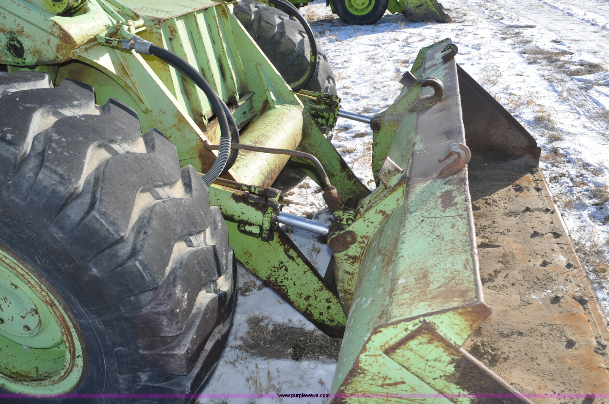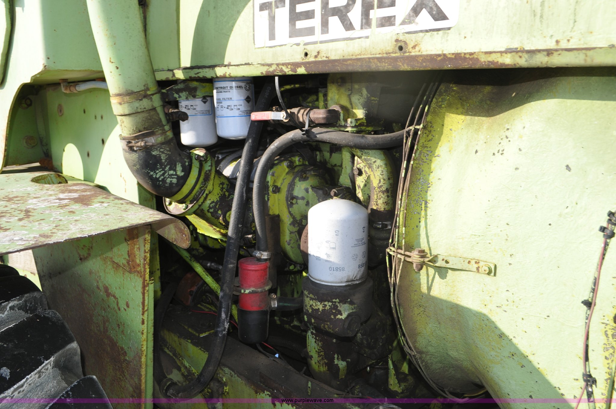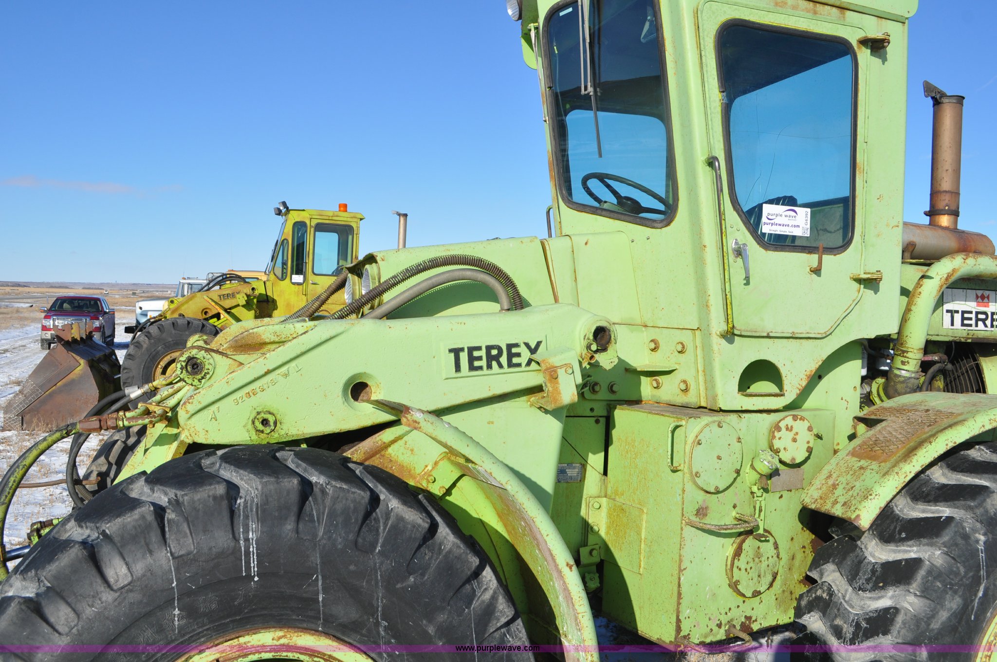 Purple Wave is selling a used Wheel Loader in South Dakota. This item is a 1976 Terex 72-31 AA loader with the following: 1,467 hours on meter, Detroit Diesel 471 four cylinder diesel engine, Powershift transmission, 2F-1R gears, Work lights, Amber warning beacon, Backup alarm, 114" pin-on bucket, 20.5-25 tires, 27,505 lbs. base operating weight, Approx 500 hours on tires, Approx 260 hours on transmission rebuild, Service records available, Serial 62431, Unit# 415
