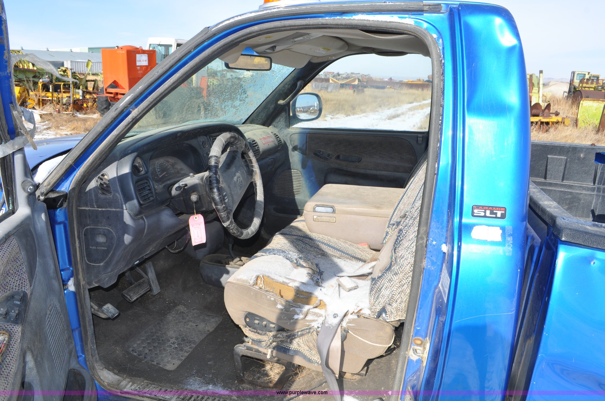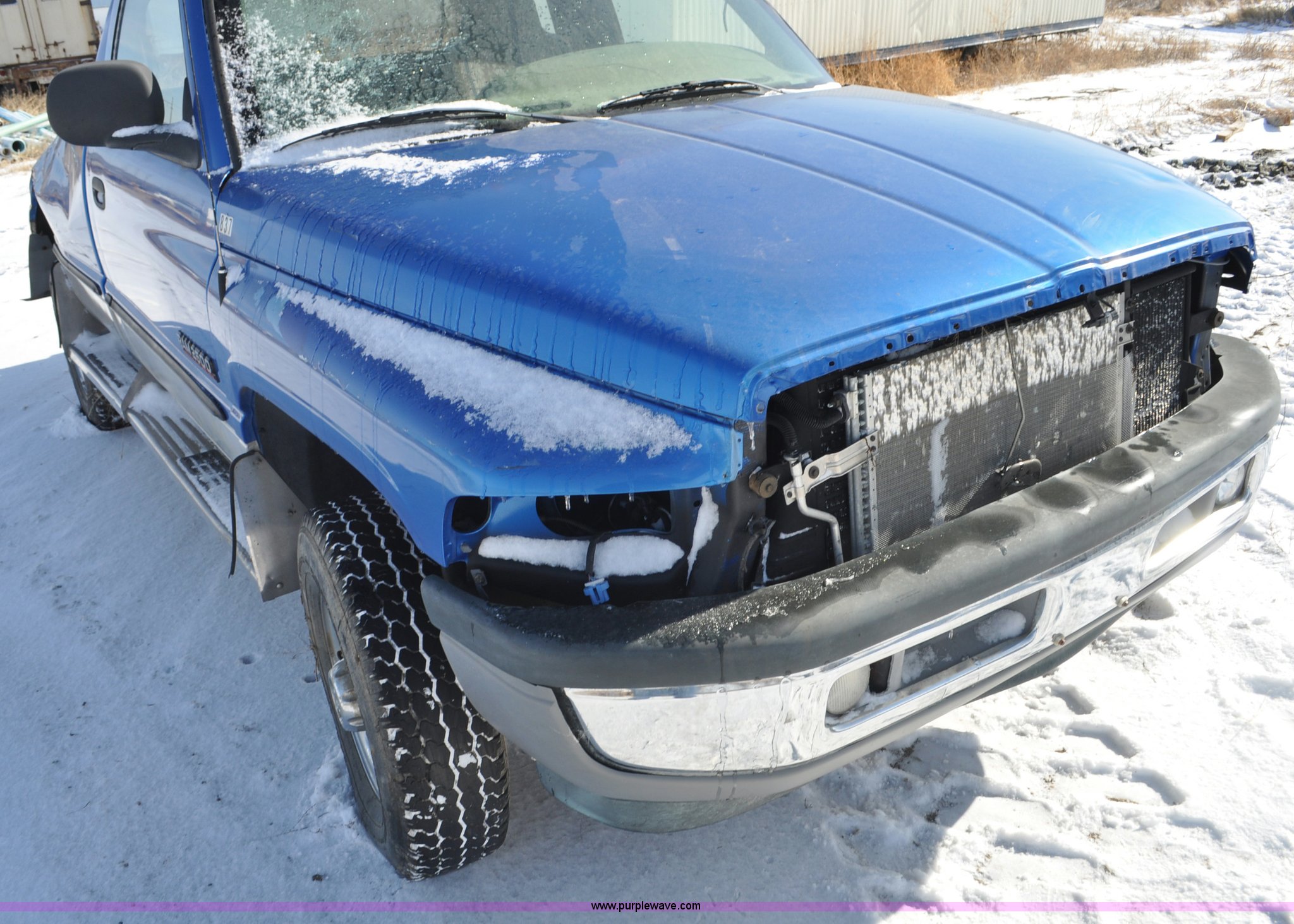 Purple Wave is selling a used 3/4 or 1 Ton Pickup or Van in South Dakota. This item is a 1999 Dodge Ram 2500 pickup truck with the following: 232,791 miles on odometer, 5.9L L6 OHV 24V turbo diesel engine, Automatic transmission, Four wheel drive, AC and heat, Tilt, Cruise, AM/FM/cassette, Power windows and locks, Cloth interior, Long bed, Bed liner, 235/85R16 tires, Single owner, Vehicle rolled over, Lights missing, Left and rear windows missing, Salvage, Service records available, Unit# 837
