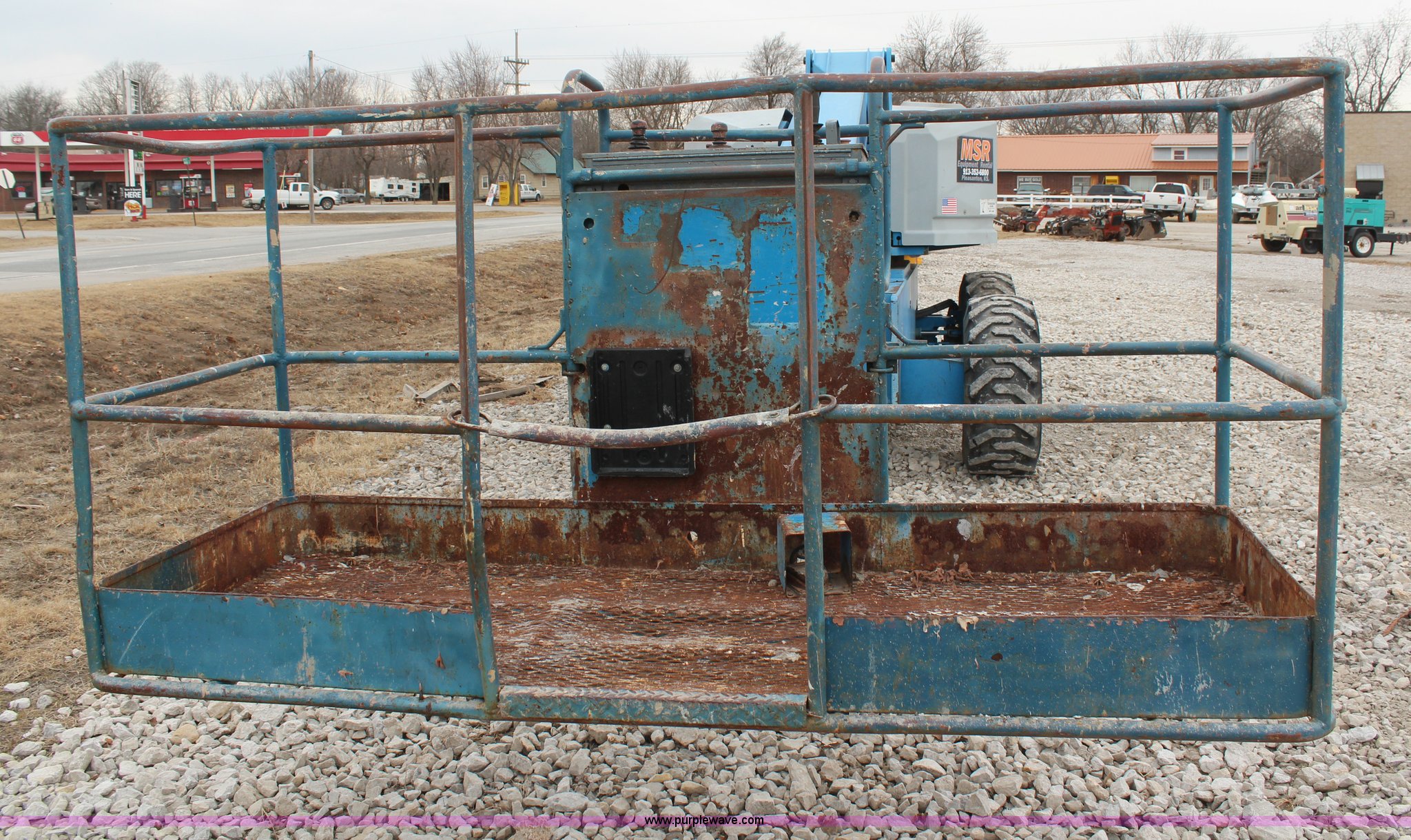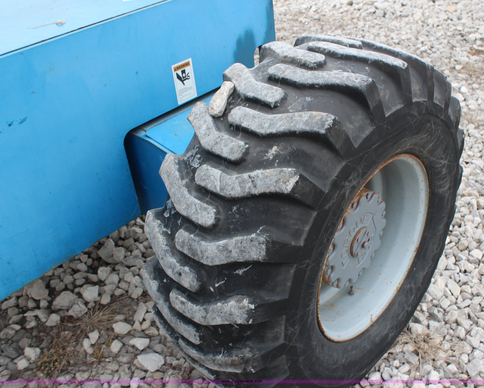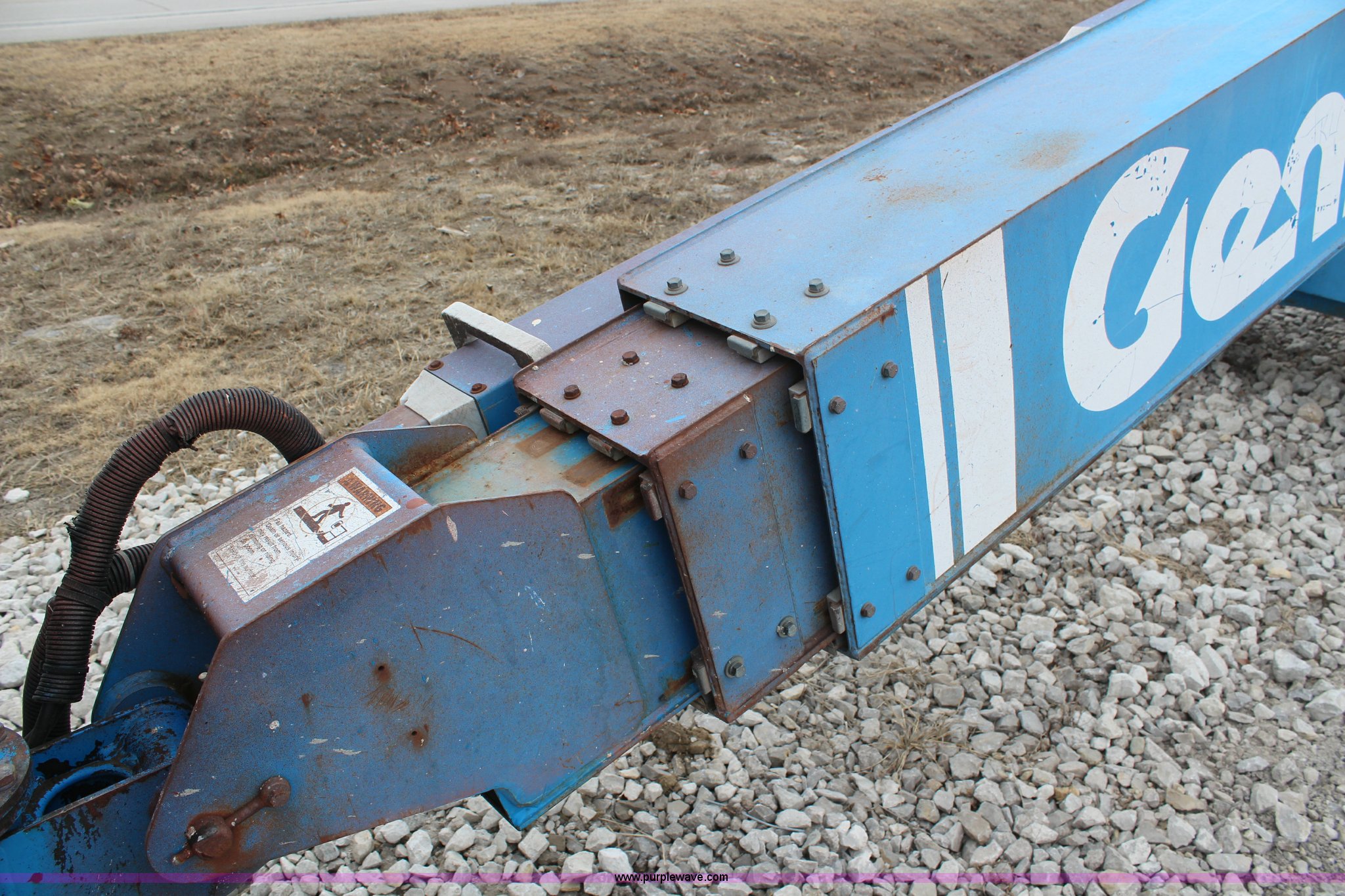 Purple Wave is selling a used Boom Lift in Kansas. This item is a 1997 Genie S60 boom lift with the following: 4,807 hours on meter, Hours may vary, still in use, Deutz air-cooled diesel engine, Four wheel drive, 60' max platform height, 51'3" max platform reach, 8' bucket, 500 lbs maximum capacity, 15-19.5 tires, Serial 1916