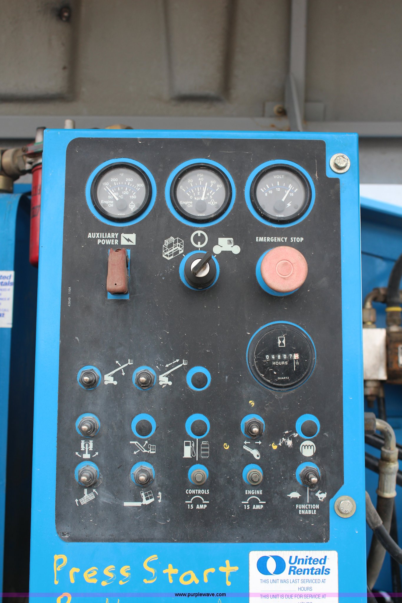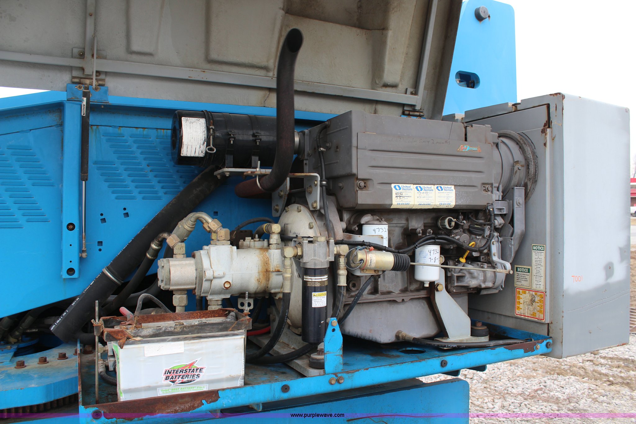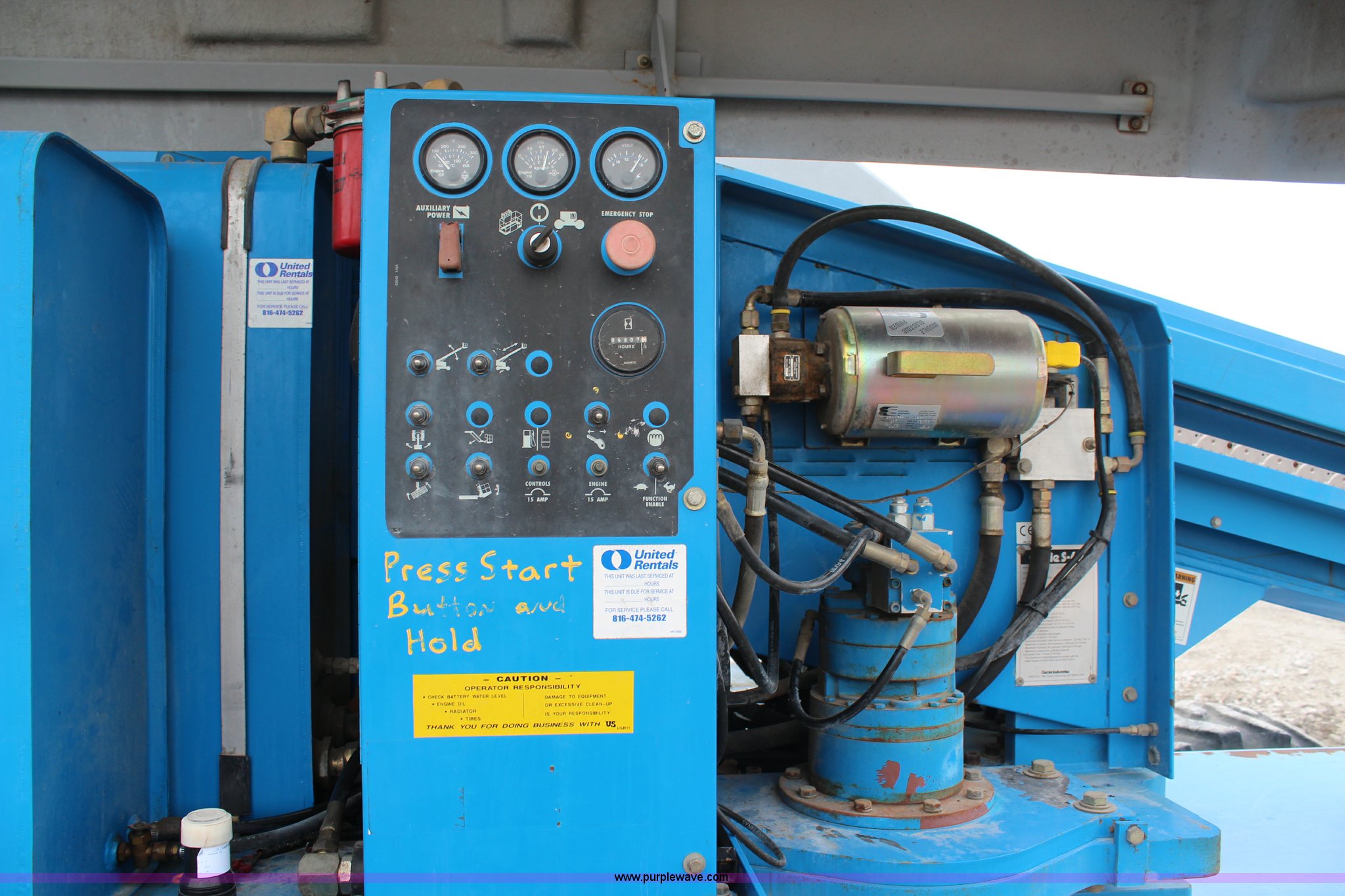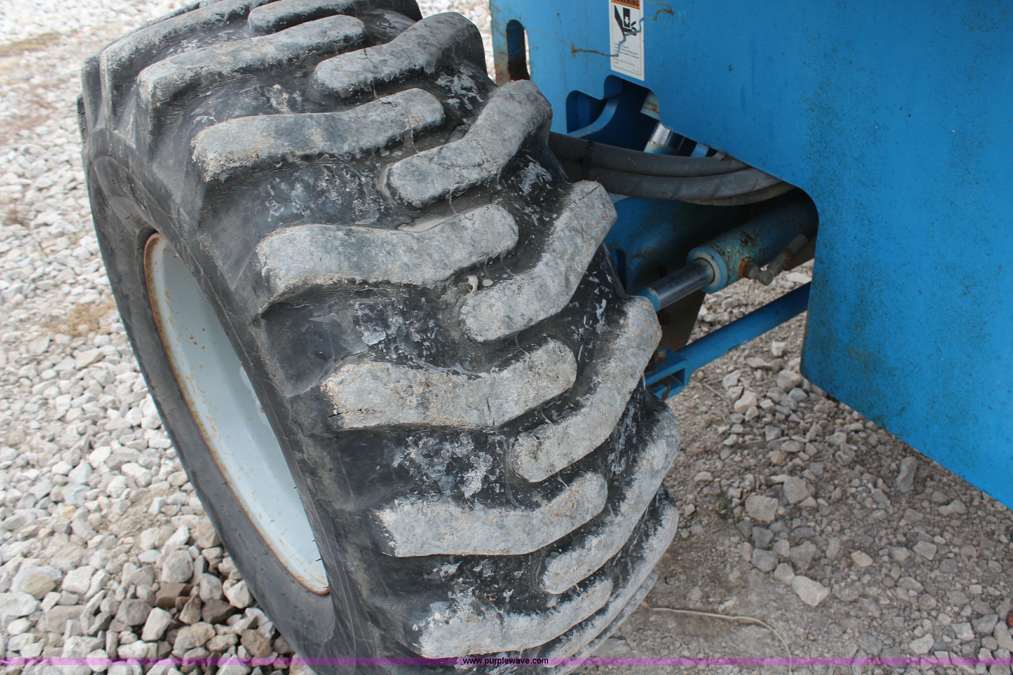 Purple Wave is selling a used Boom Lift in Kansas. This item is a 1997 Genie S60 boom lift with the following: 4,807 hours on meter, Hours may vary, still in use, Deutz air-cooled diesel engine, Four wheel drive, 60' max platform height, 51'3" max platform reach, 8' bucket, 500 lbs maximum capacity, 15-19.5 tires, Serial 1916