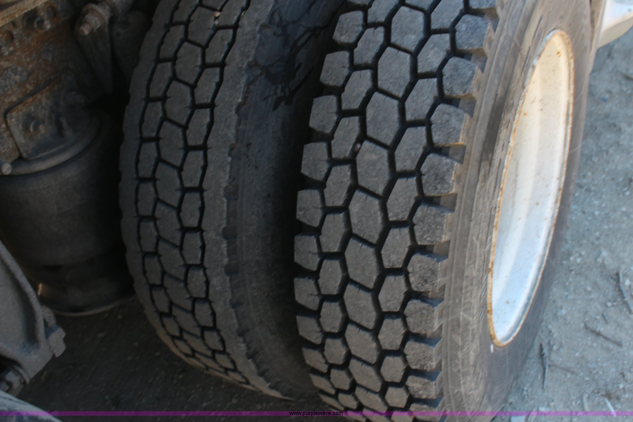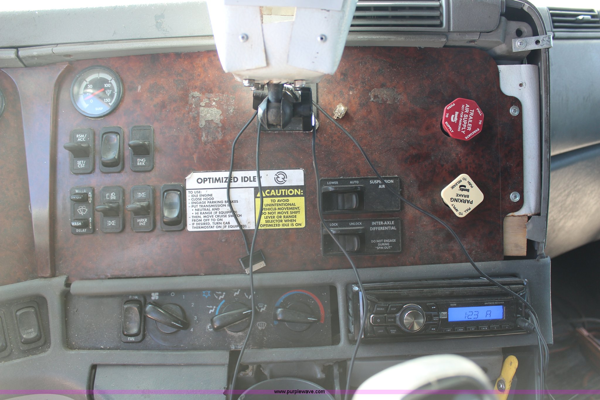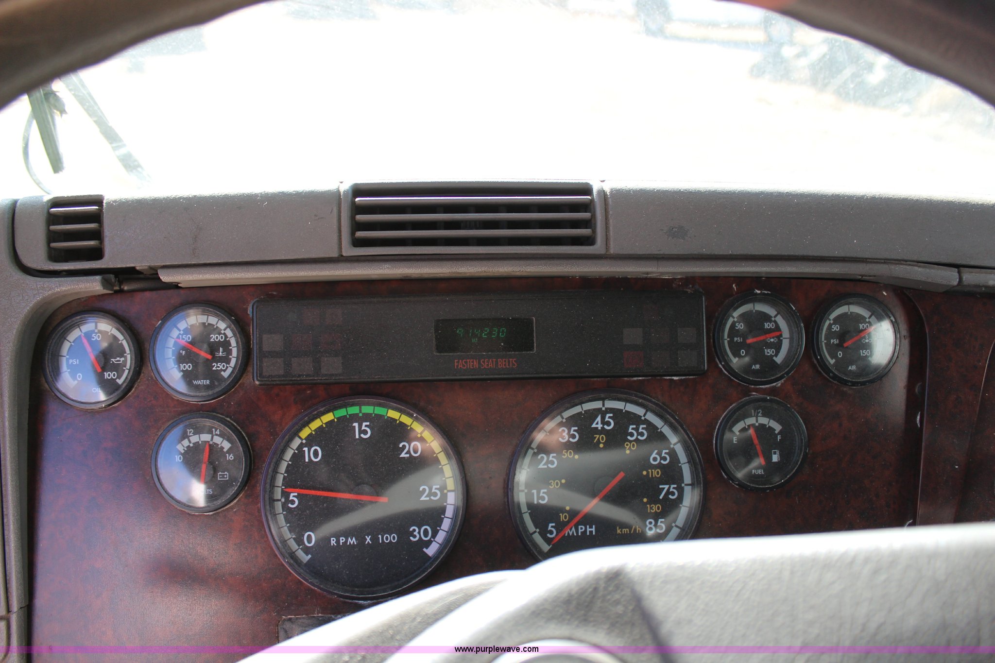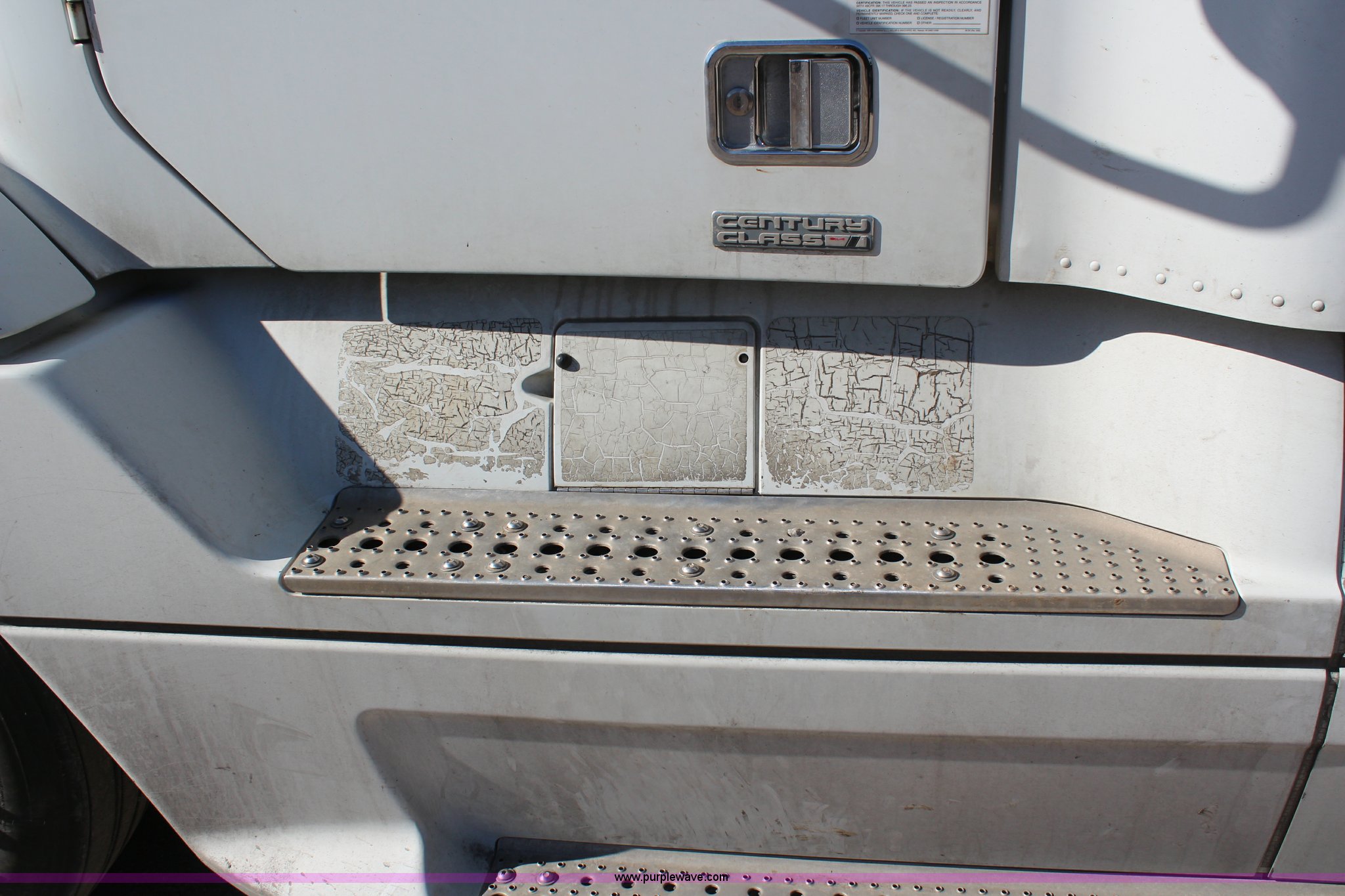 Purple Wave is selling a used Truck Tractor in Kansas. This item is a 2001 Freightliner C120 semi truck with the following: 914,230 miles on odometer, Detroit Diesel Series 60 12.7L L6 diesel engine, Meritor 10 speed manual transmission, Twin screw, AC and heat, Cruise, AM/FM/CD, Air suspension seat, Passenger daylight door, Power windows and mirrors, Heated mirrors, 60" sleeper, Storage, Visor, Dual 100 gallon fuel tanks, Single rear exhaust stack, Aluminum deck plate, Dump valves, Air suspension, Air brakes, Jake brake, 295/75R22.5 tires, GVWR 52,000 lbs, FAWR 12,000 lbs, IAWR 20,000 lbs, RAWR 20,000 lbs