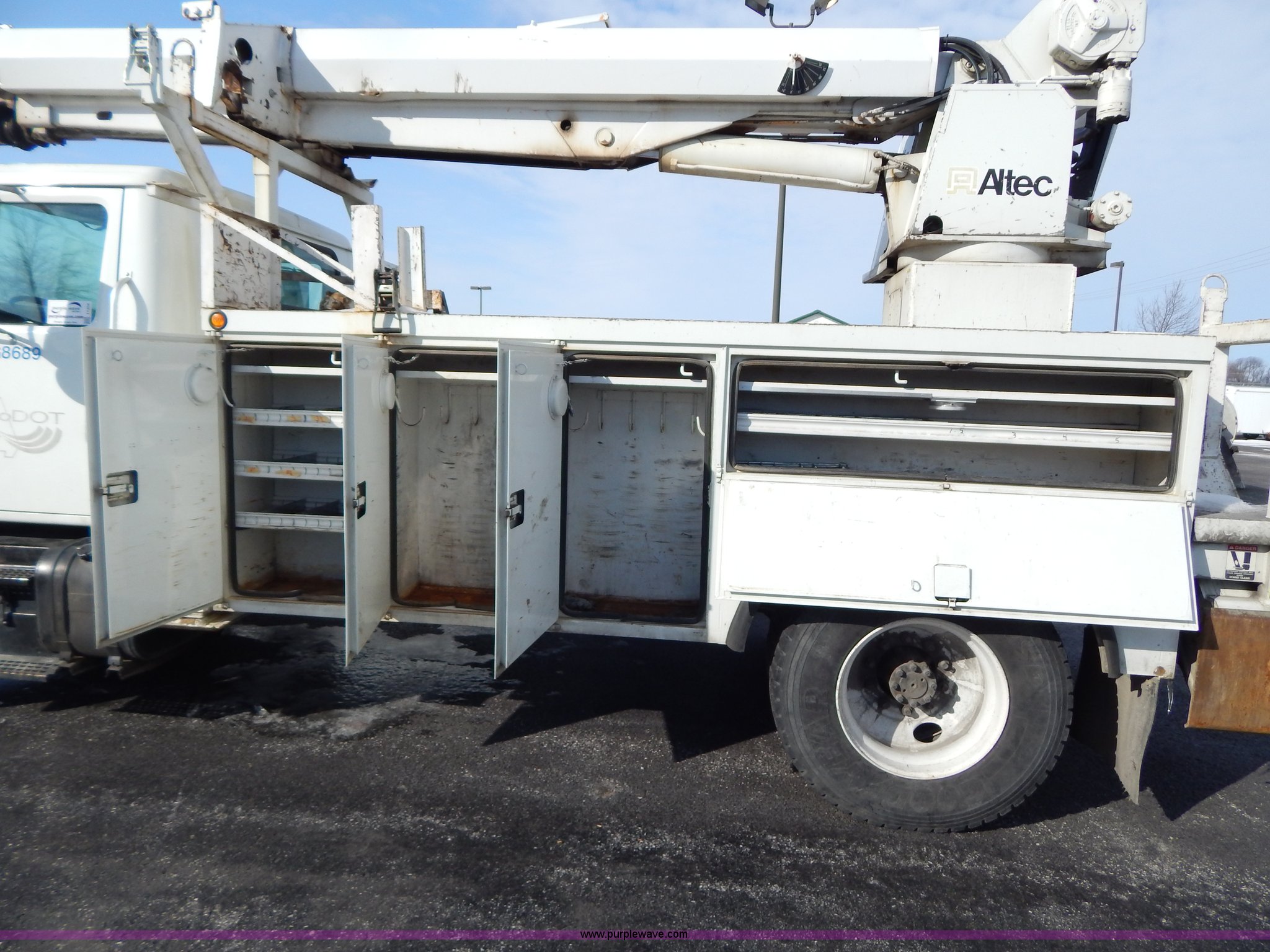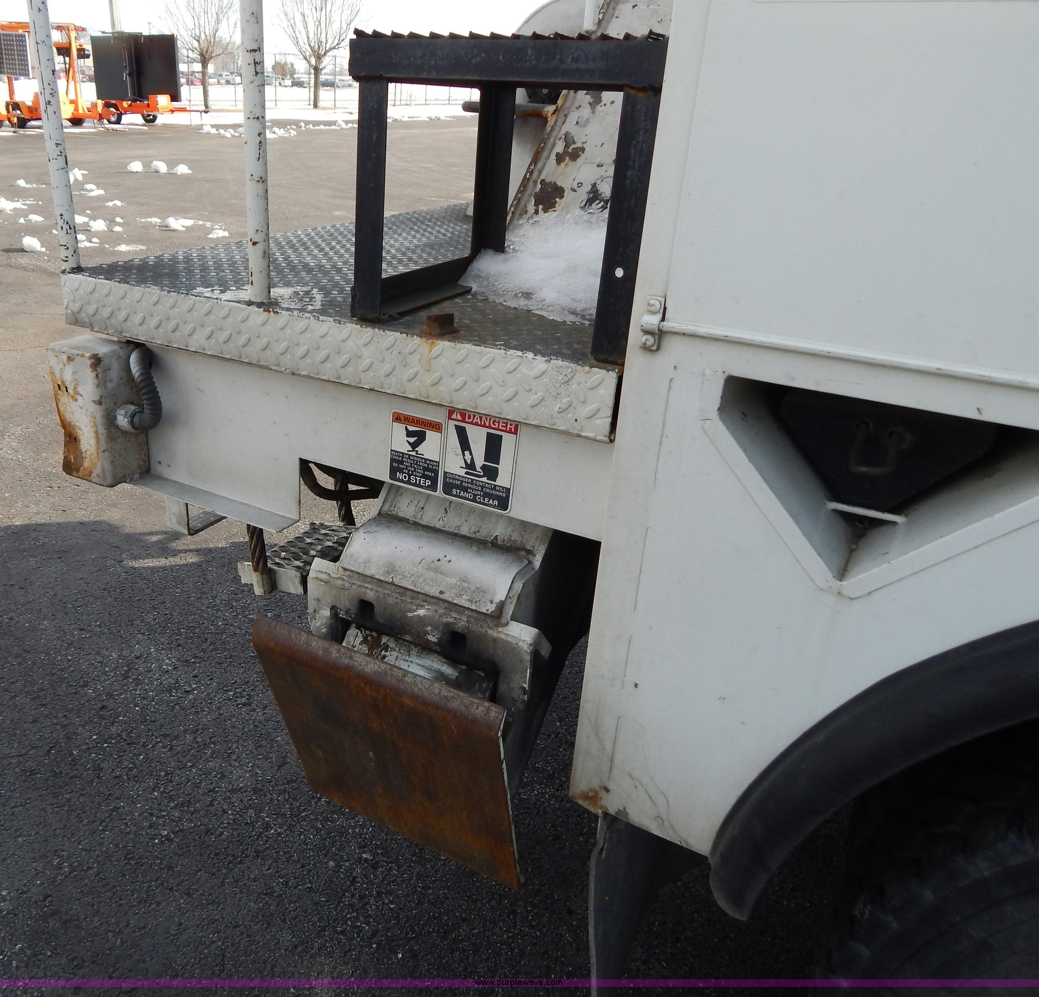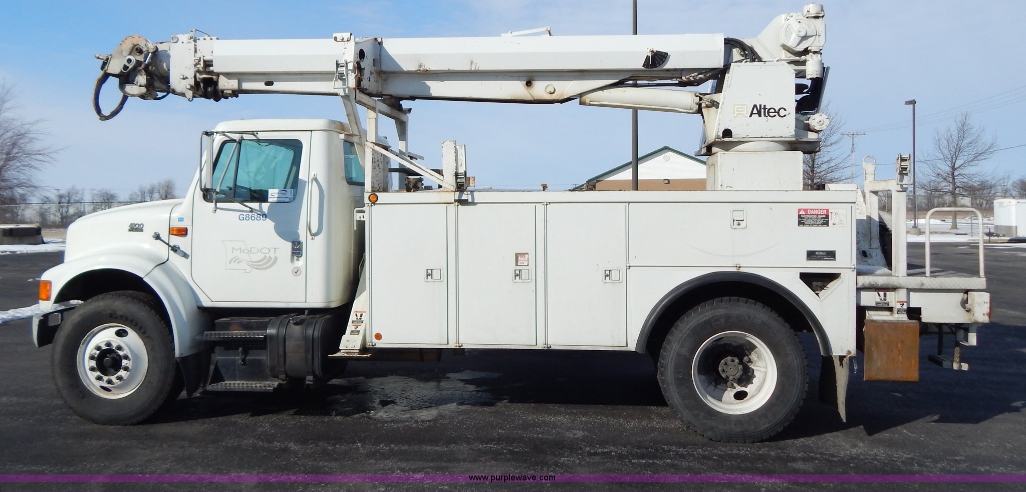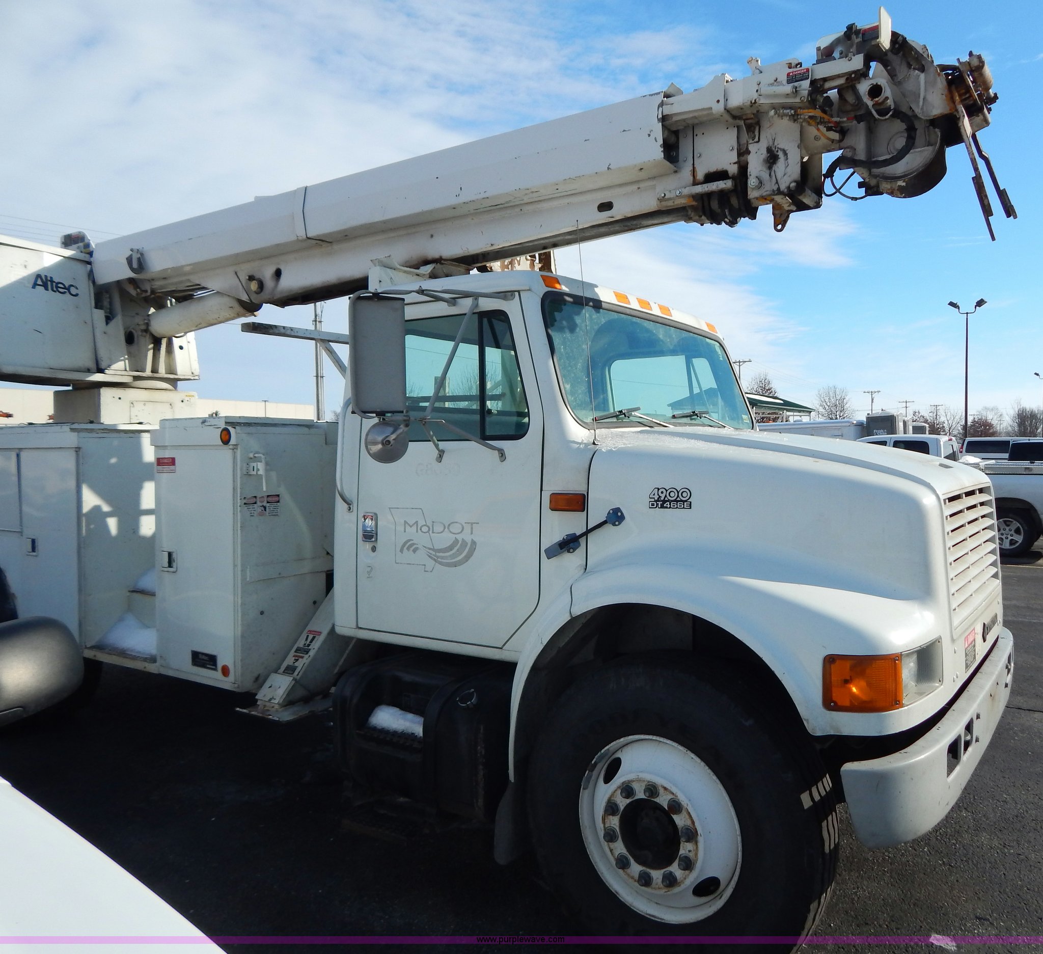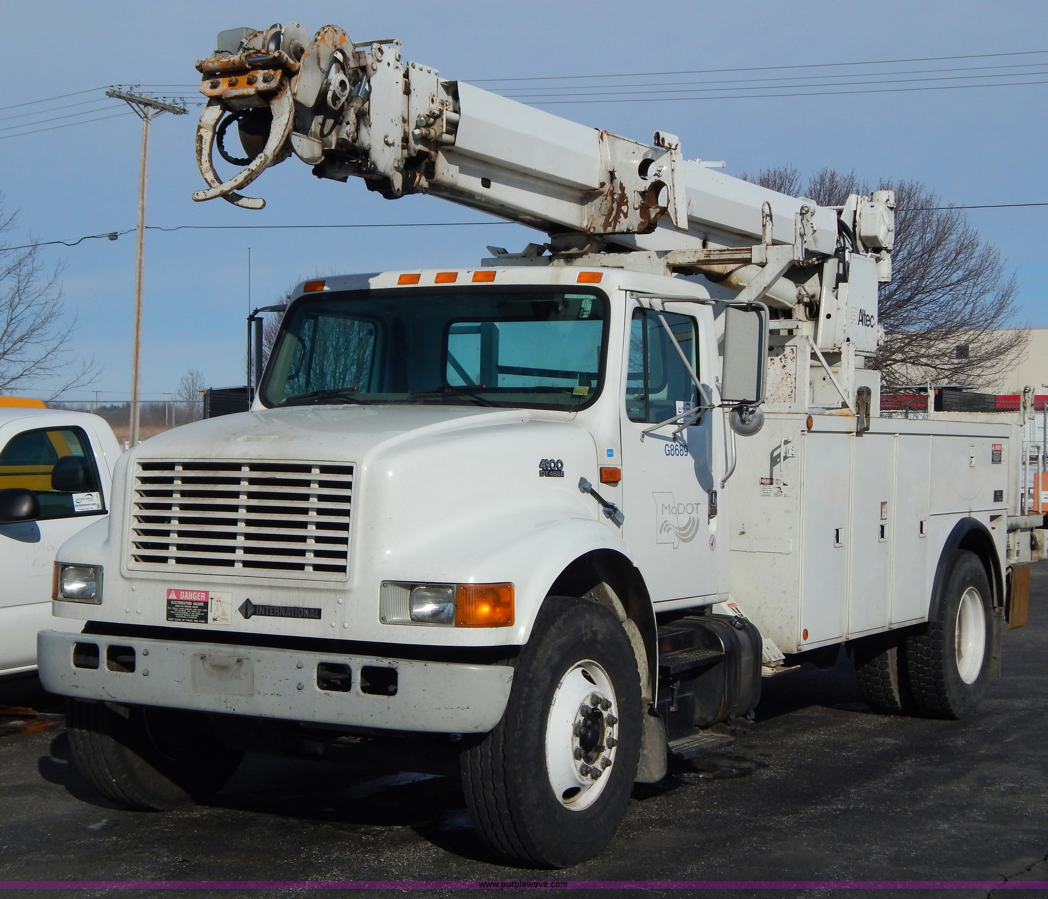 2000 International 4900 digger derrick truck. 231,850 miles on odometer, International DT466E 7.6L L6 diesel engine, Manual six speed transmission, Heat, AM/FM, Manual windows and locks, Vinyl interior, Altec derrick digger bed Serial 37-69041, Altec D947T derrick digger Serial 11913A2035, PTO, (4) hydraulic outriggers, Pintle hitch, Air brakes, Rear air brake lines for trailer, 188" wheelbase, 315/80R22.5 front tires, 11R22.5 rear tires, Auger mount is broken, MoDOT ID G8689. 1HTSDAAR0YH263976. Missouri Department of Transportation (MoDOT). 2675 N Main St, Building B. Sikeston, MO 63801