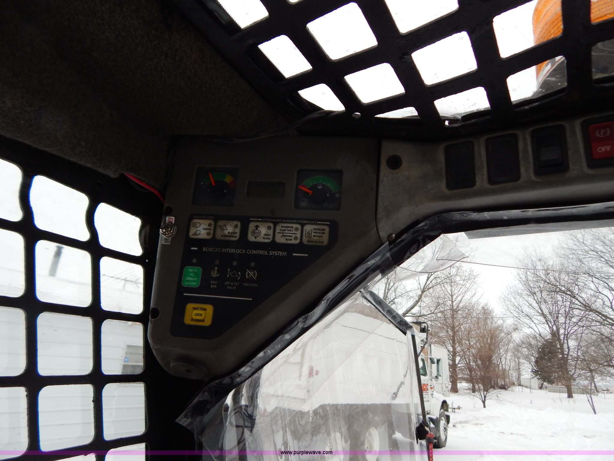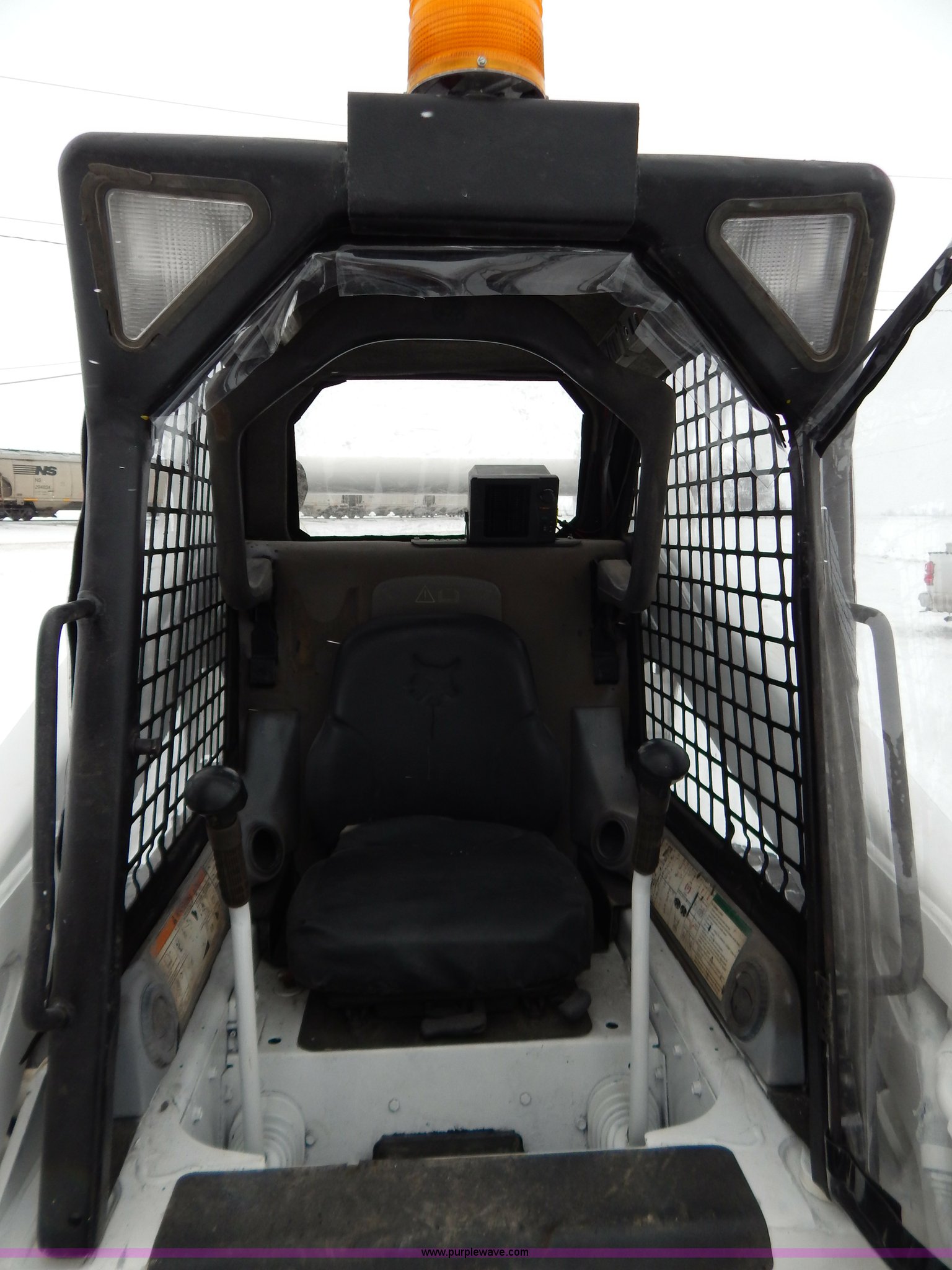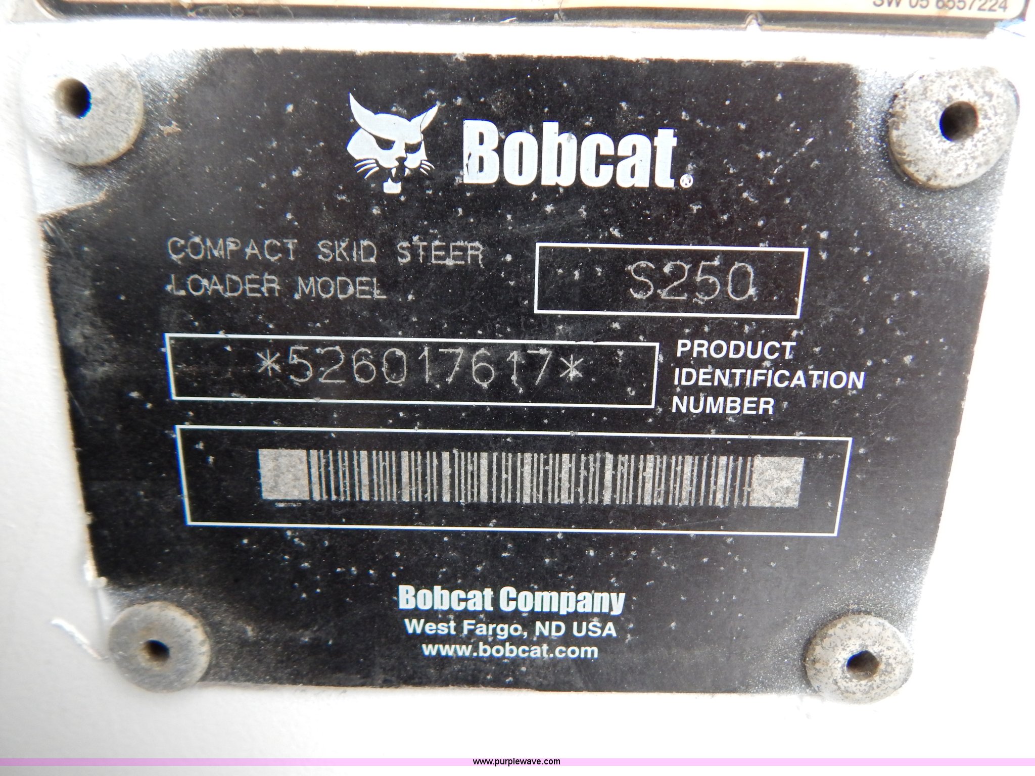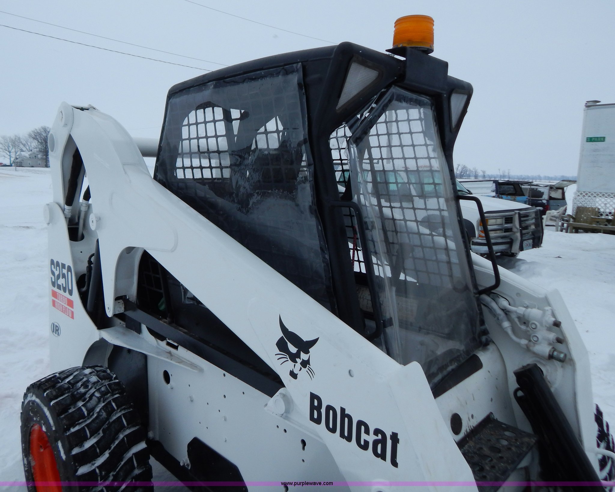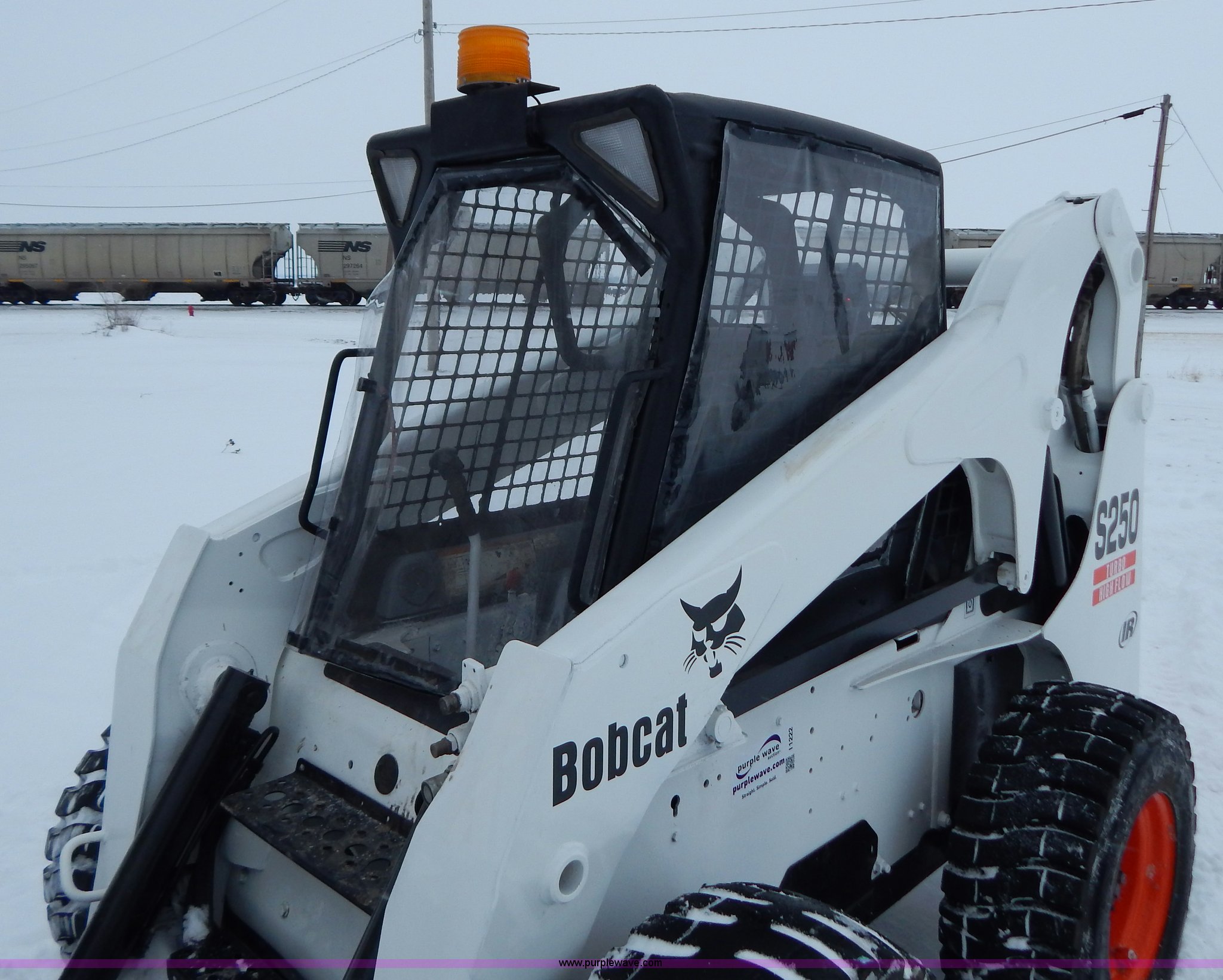 Purple Wave is selling a used Skid Steer Loader in Missouri. This item is a 2005 Bobcat S250 skid steer with the following: 1,219 hours on meter, Four cylinder diesel engine, Hydrostatic transmission, Vinyl cab enclosure, AC and heat, AC is non-operational, needs AC compressor, Foot and hand controls, High flow auxiliary hydraulics, Rotating safety beacon, 6'W bucket, Smooth cutting edge, Recently replaced 12-16.5 tires, 7,825 lbs. base operating weight, Recently replaced air filter, Serial 526017617