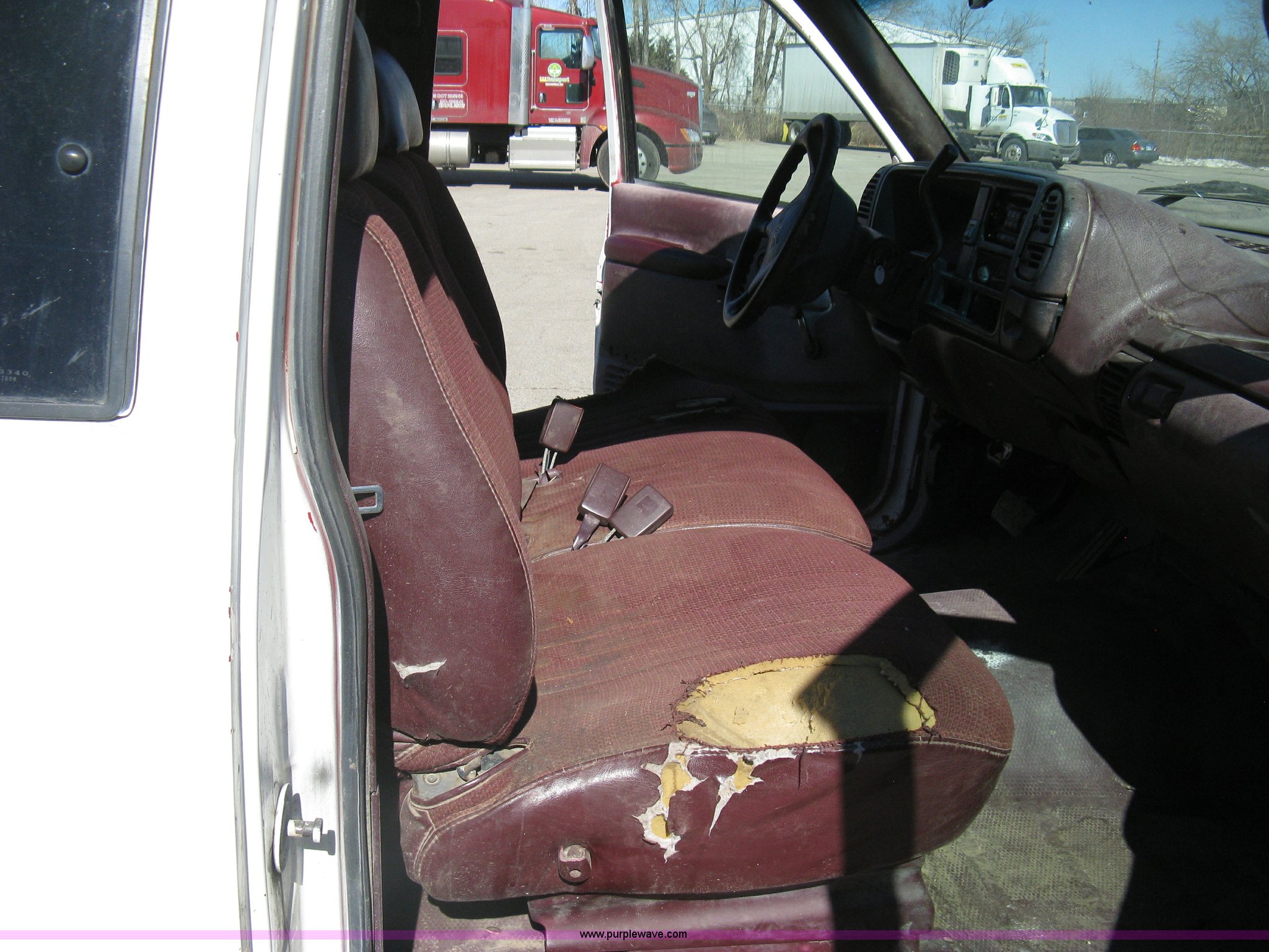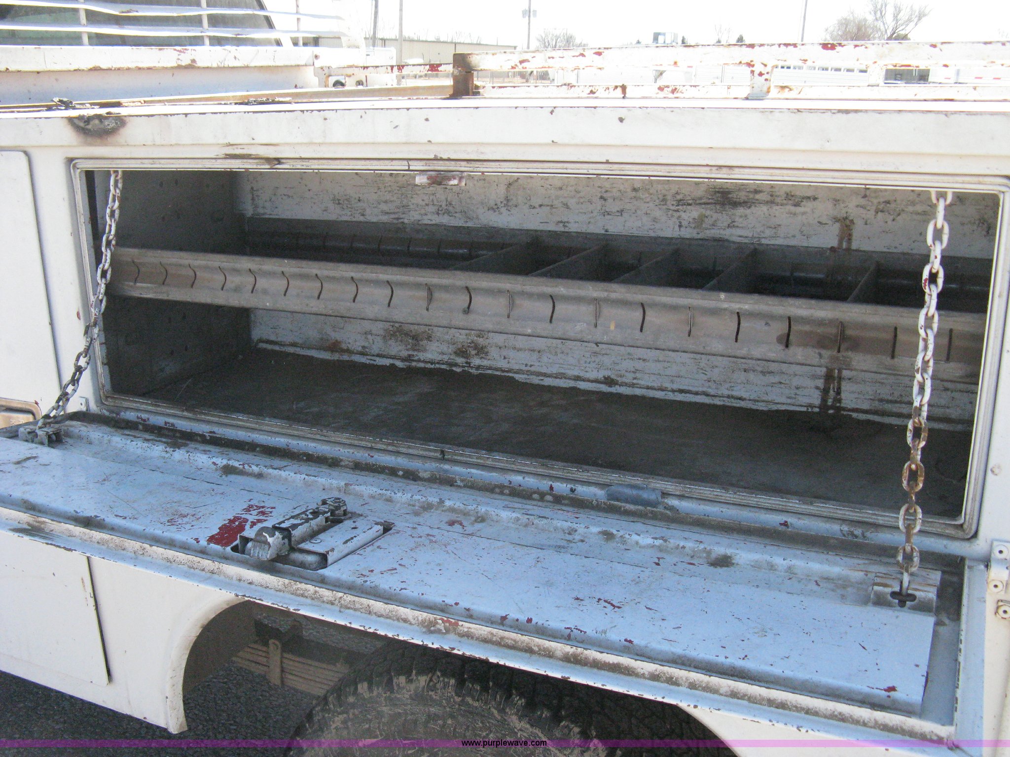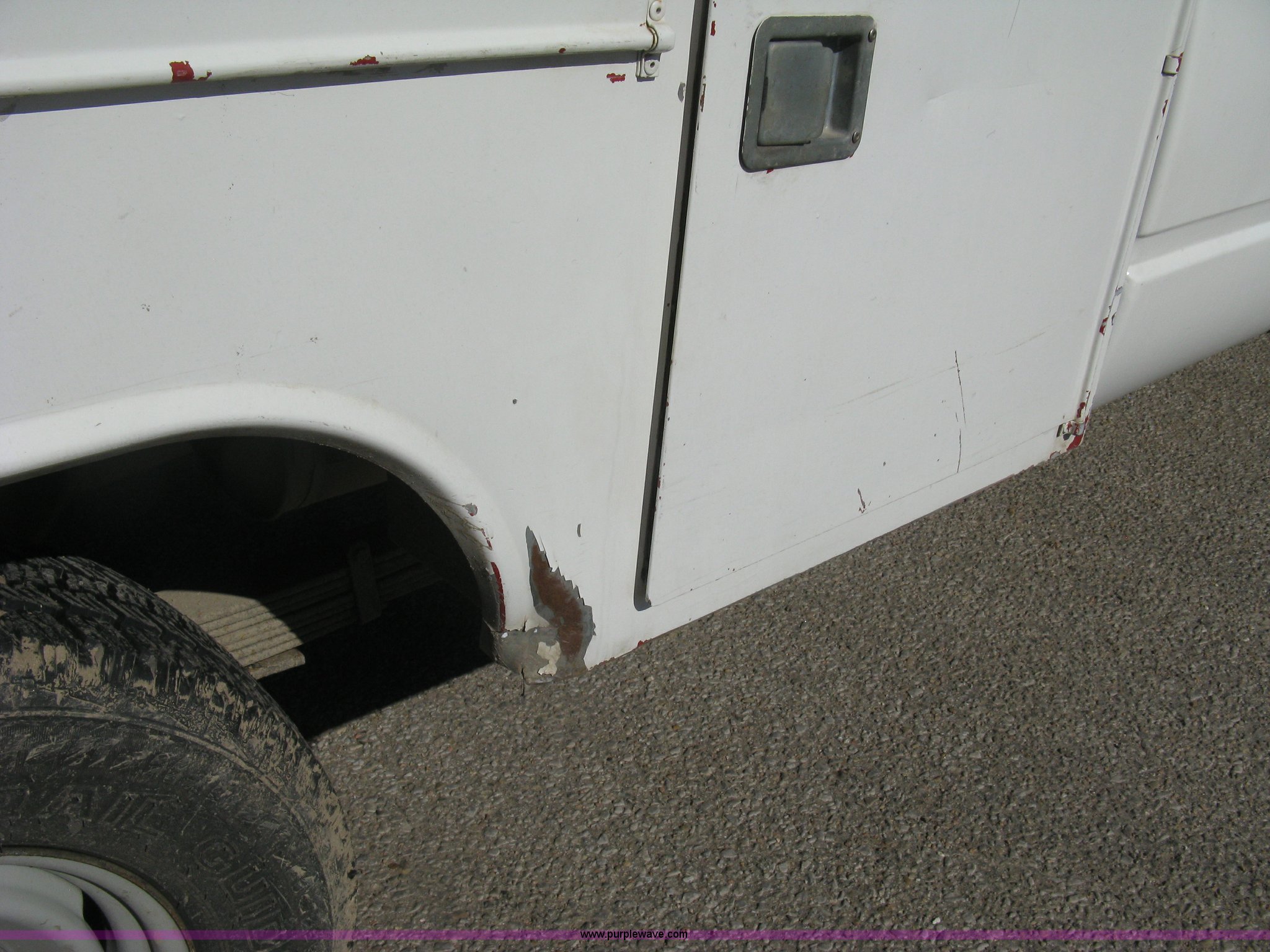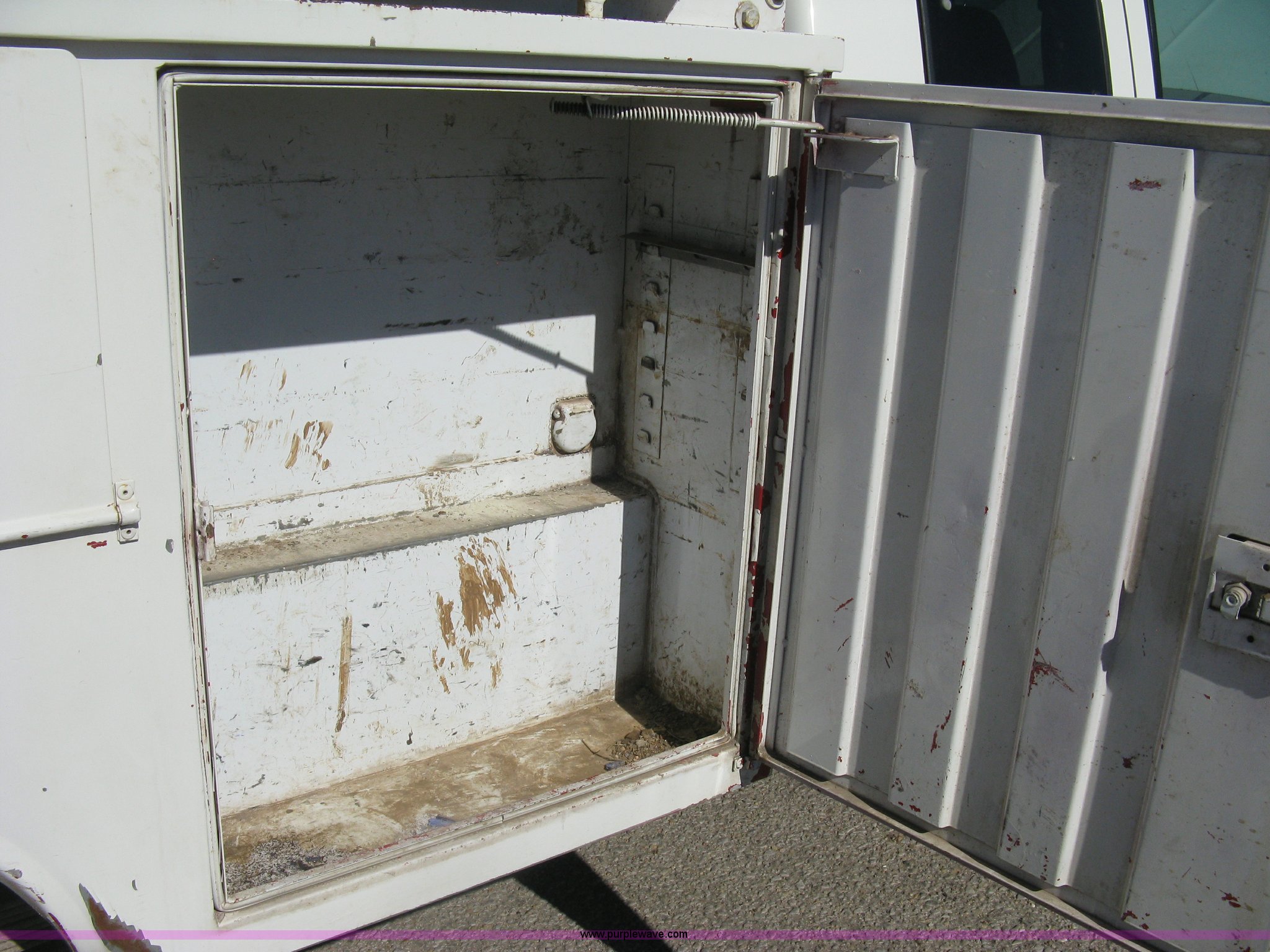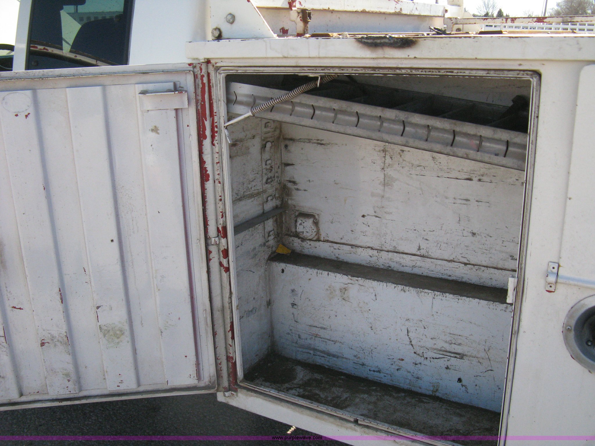 Purple Wave is selling a used Service Truck in Kansas. This item is a 1996 Chevrolet 2500 Ext. Cab utility truck with the following: 258,760 miles on odometer, 5.7L V8 OHV 16V gas engine, Automatic transmission, AC and heat, Tilt, Cruise, AM/FM/CD, Manual windows and locks, Cloth interior, Trailer brake controller, Rawson Koenig utility bed, 8'L x 78"W, Headache rack, Step-up bumper, Diamond plate floor, (6) side cabinets, Receiver hitch, Trailer wiring, LT245/75R16 tires, Windshield cracked, Interior/exterior cosmetic damage, Paint peeling, Unit# 10