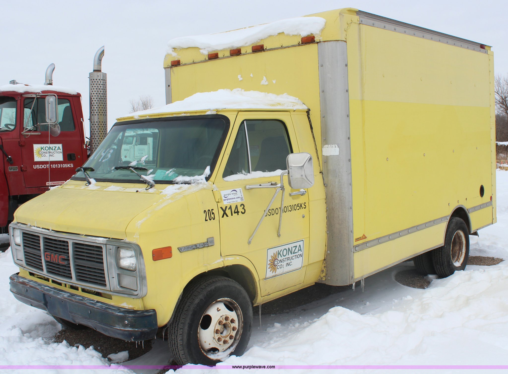 Purple Wave is selling a used Box Truck in Kansas. This item is a 1988 GMC Vandura G3500 box truck with the following: 87,926 miles on odometer, 5.7L V8 OHV 16V gas engine, Automatic transmission, Heat, Manual windows and locks, 12'L bed, Roll up door, 8.75R16.5 tires