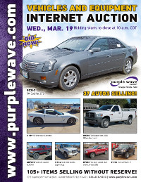 This is an Internet-only auction, which means the highest bid online when the bidding closes on a particular item will be the winning bid for that item. Bidding for items will begin to close one item per minute at 10:00 a.m. CST on Wednesday, March 19. The items will close in the order listed on the website. This auction will feature our automatic extension system which will grant a five (5) minute extension to the end of the auction of any item receiving a bid during the last five (5) minutes. The item will then close when five (5) minutes have elapsed without any bidding activity. Unless otherwise noted, items in this auction are selling without reserve, and all Internet bids are treated as if they were given at a live auction. All bidders will be held accountable for their Internet bids.