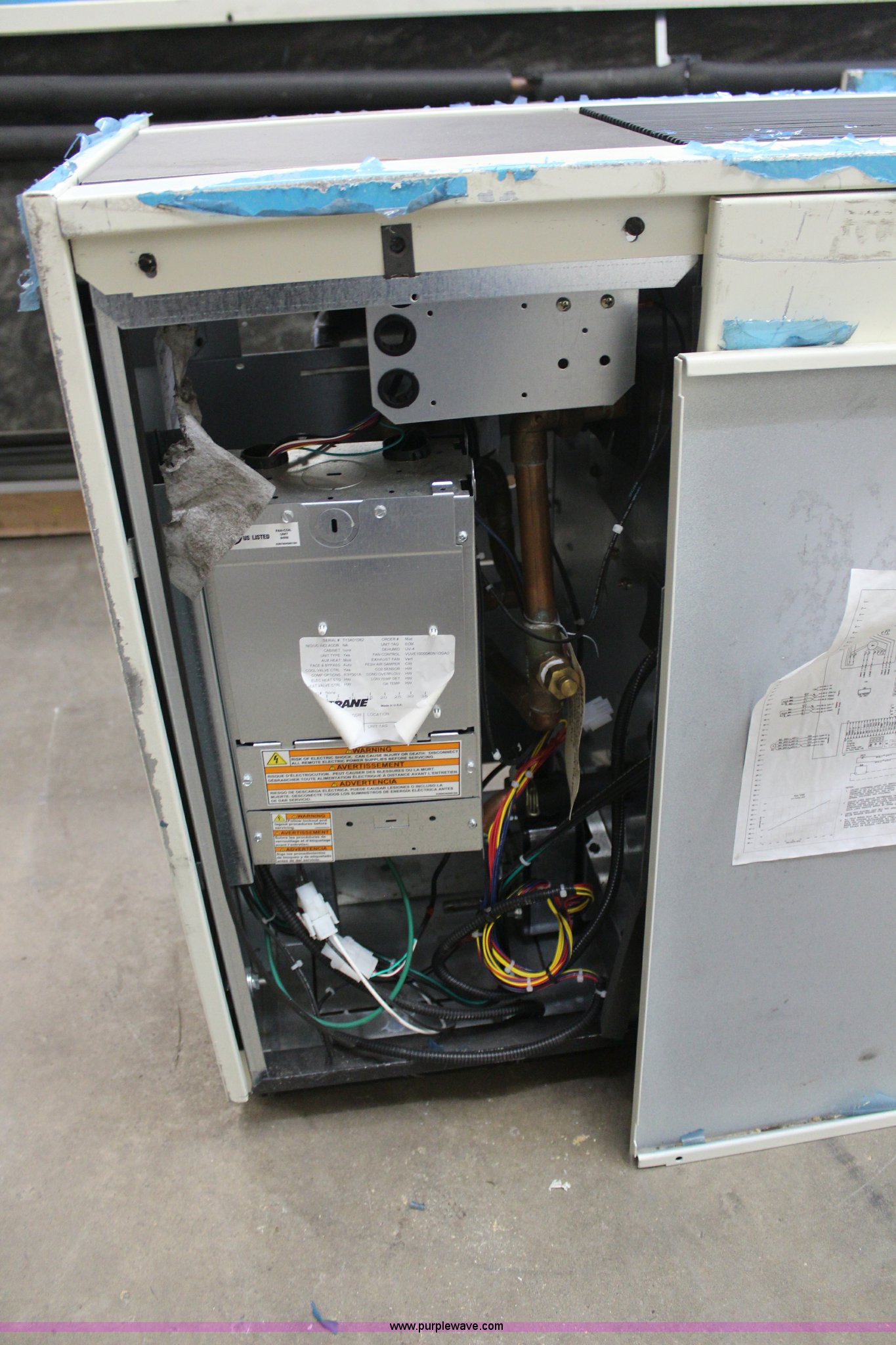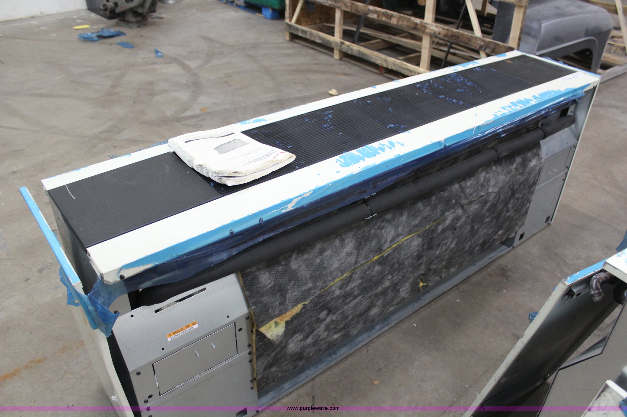 Purple Wave is selling a used Appliances in Kansas. This item is a (2) Trane VUV vertical unit ventilators with the following: 106"L x 17"D x 30"H, Unused, Shipping damage, Heat and cool