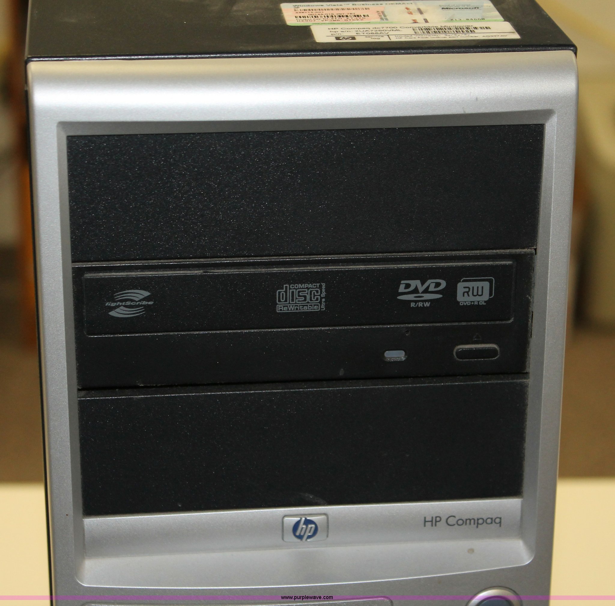 Purple Wave is selling a used Computers in Kansas. This item is a (6) 2007 HP DC7700 computers with the following: Intel Core 2 Duo E6300 processor, 1.86 GHz, 2 GB RAM, 160 GB hard drive, Optical drive, Keyboard, Mouse, No operating system installed