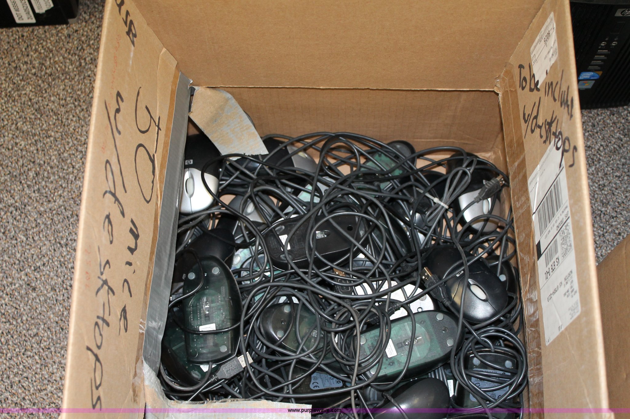 Purple Wave is selling a used Computers in Kansas. This item is a Assorted computer accessories with the following: (4) Tripp Lite 500 VA UPS, APC Internet 550U, (3) batteries dead, One is inoperable, (38) USB mice, (25) PS2 mice, (57) keyboards, 25 pin printer cables