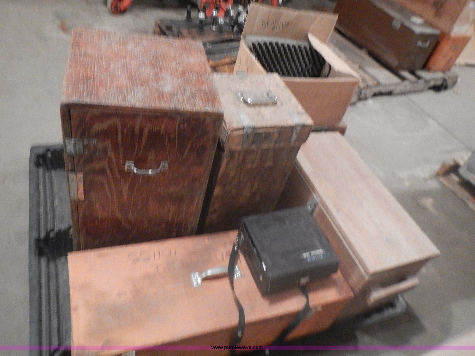 Assorted tools. Brass Rollameter 80B6 air meter Case, Serial SH99210, (2) Brass Rollameter air meter Cases, 1958 Soiltest CN981C volumeter Bulb, Case, Operator's manual, Denver Instruments B042172 balance Non-operational, Serial B042172, (2) Test Lab CN980 bolumeter Case, Bulbs, 1958 Soiltest CN981C volumeter Bulb, Case, 1992 Soiltest CT-4950A microcover meter Serial 10780, (2) Rolatape metal buckets, (6) beam molds 4'W, Wood and metal, Thermo Scientific HPA2235M hot plate Type: 2200, 1,600 watts, 120V, 13.3 amps, Non-operational burner, 1958 Soiltest A-2007-ELE volumeter Serial CN981C, Bulb, Case, Cart is not included, KDOT ID 100265, 100271, 100273, 100503, 101032, 101145, 101155, 101158, 101178, 13121709, 13121711, 13121701, MT100309. KDOT Topeka IT. 121 SW 21st Street. Topeka, KS 66612