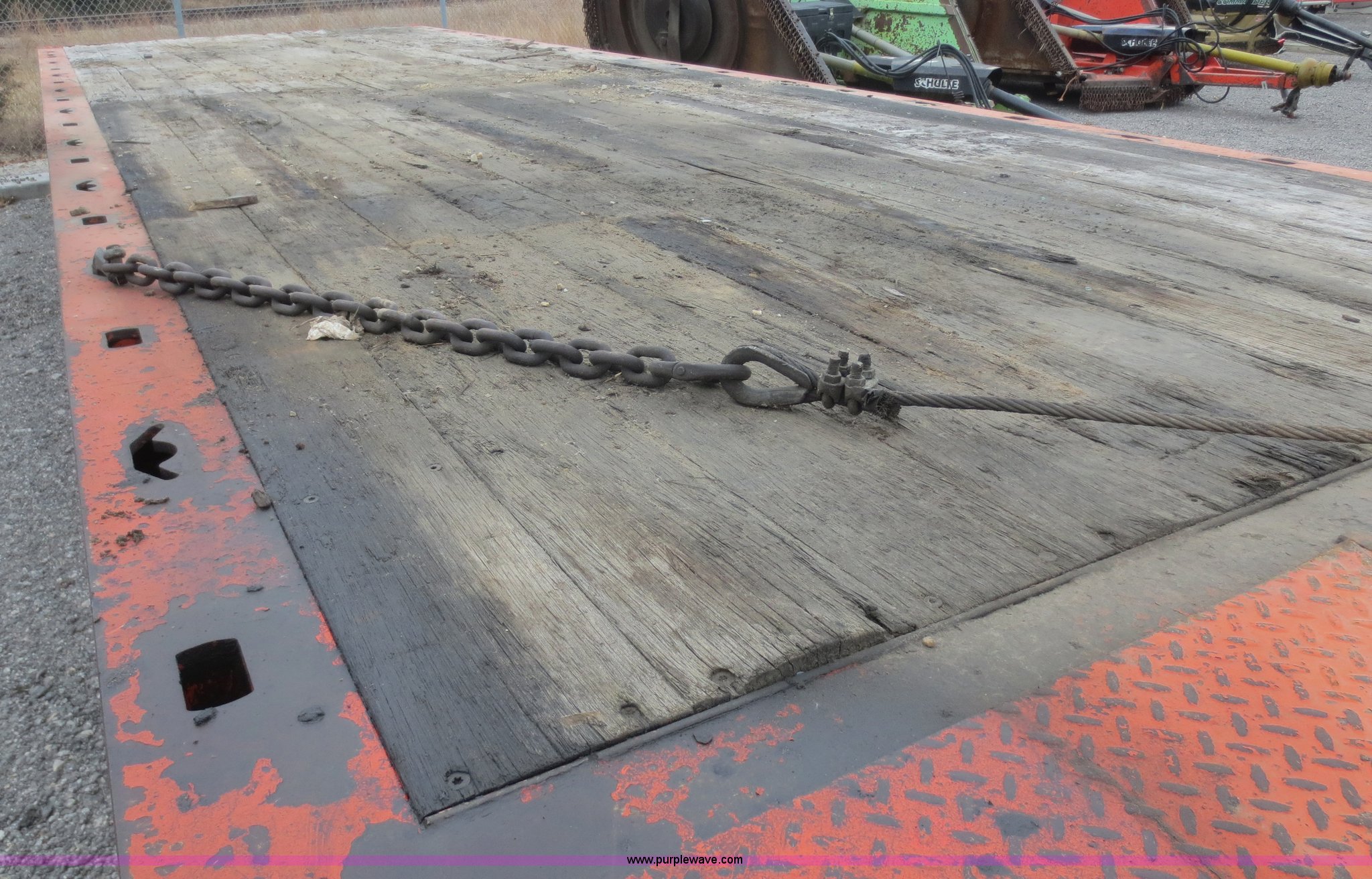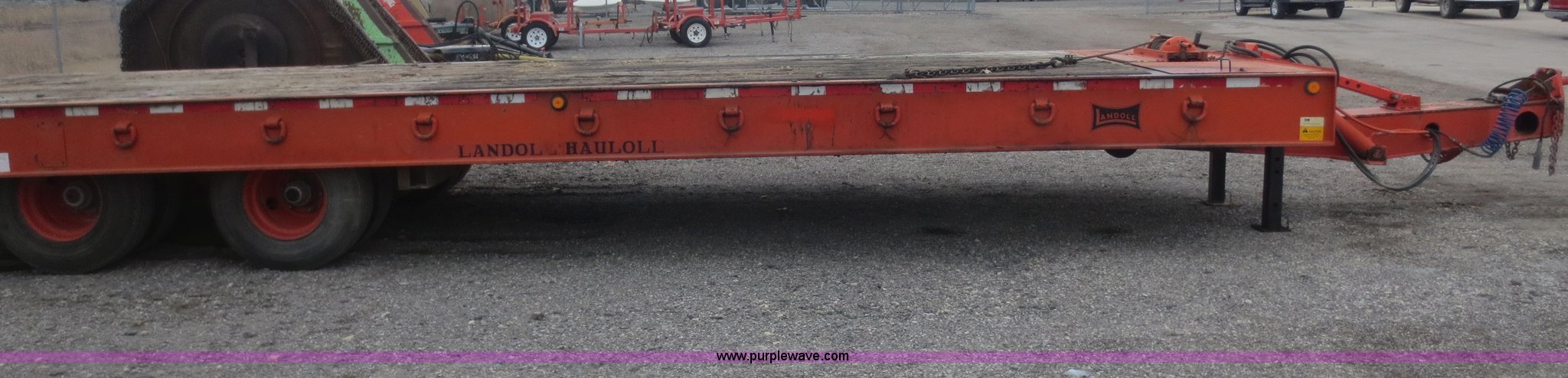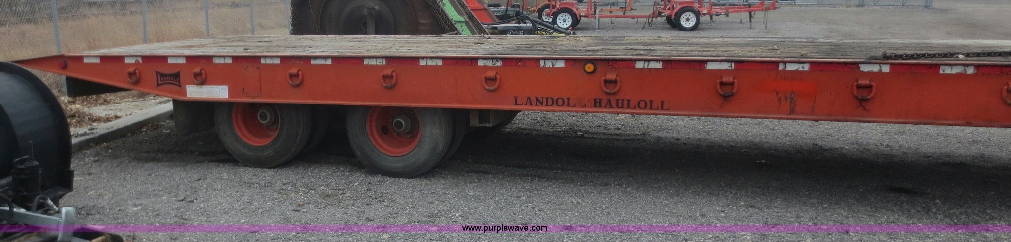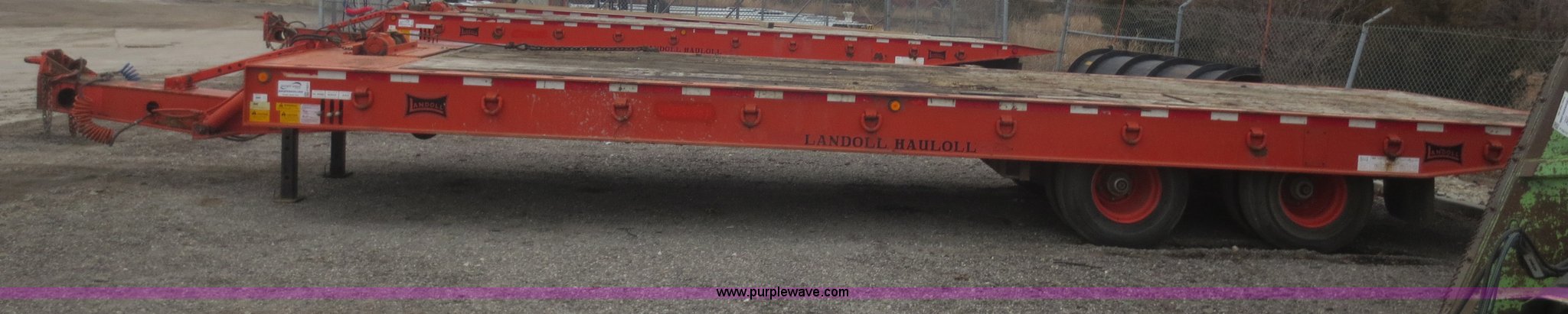 Purple Wave is selling a used Equip. Trailer in Kansas. This item is a 1996 Landoll 345-31 trailer with the following: 31'L x 102"W, 29" dovetail, Tilt deck, 20 ton capacity, Braden winch, (3) lever controls at left front of trailer, Seven pin plug, Pintle hitch, Spring suspension, Air brakes, 10R17.5 tires, Cross tubes under decking rusted out, KDOT ID 777-4025