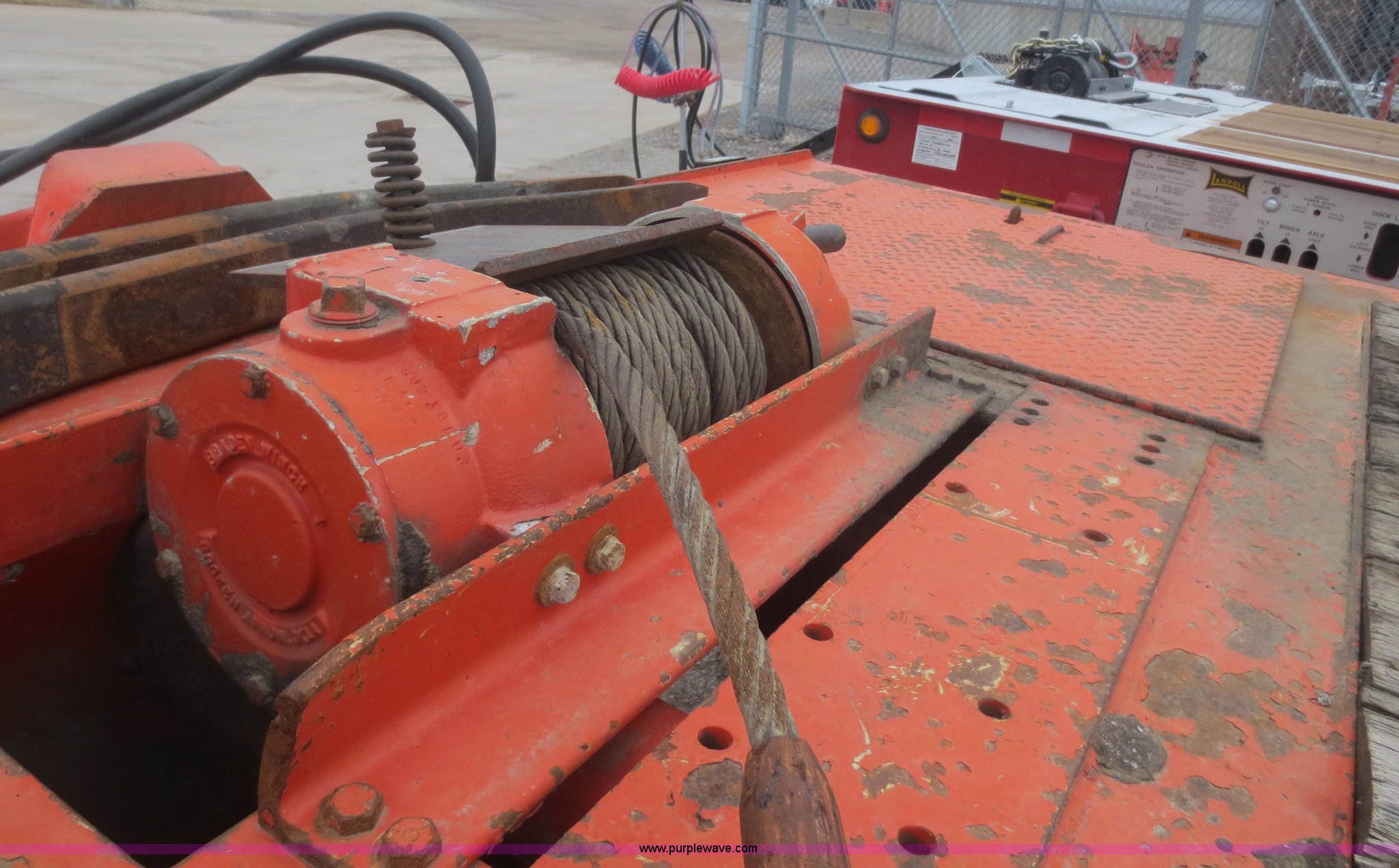 Purple Wave is selling a used Equip. Trailer in Kansas. This item is a 1996 Landoll 345-31 trailer with the following: 31'L x 102"W, 29" dovetail, Tilt deck, Braden winch, 20 ton capacity, (3) leveler control on left front of trailer, Pintle hitch, Seven wire plug, Spring suspension, Air brakes, 10R17.5 tires, Cross tubes under decking rusted out, KDOT ID 777-4015