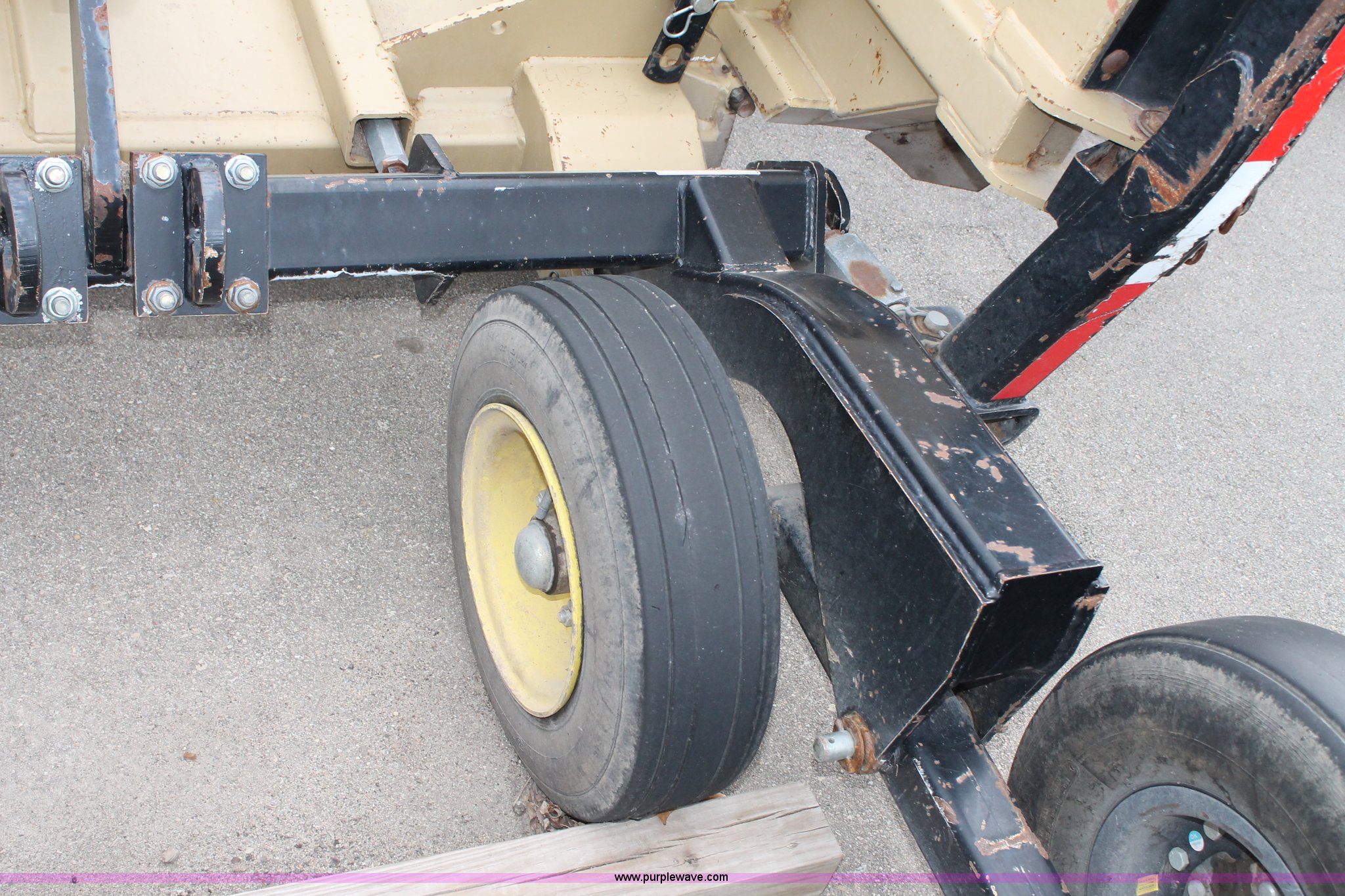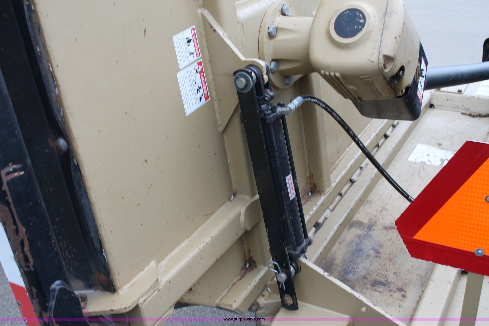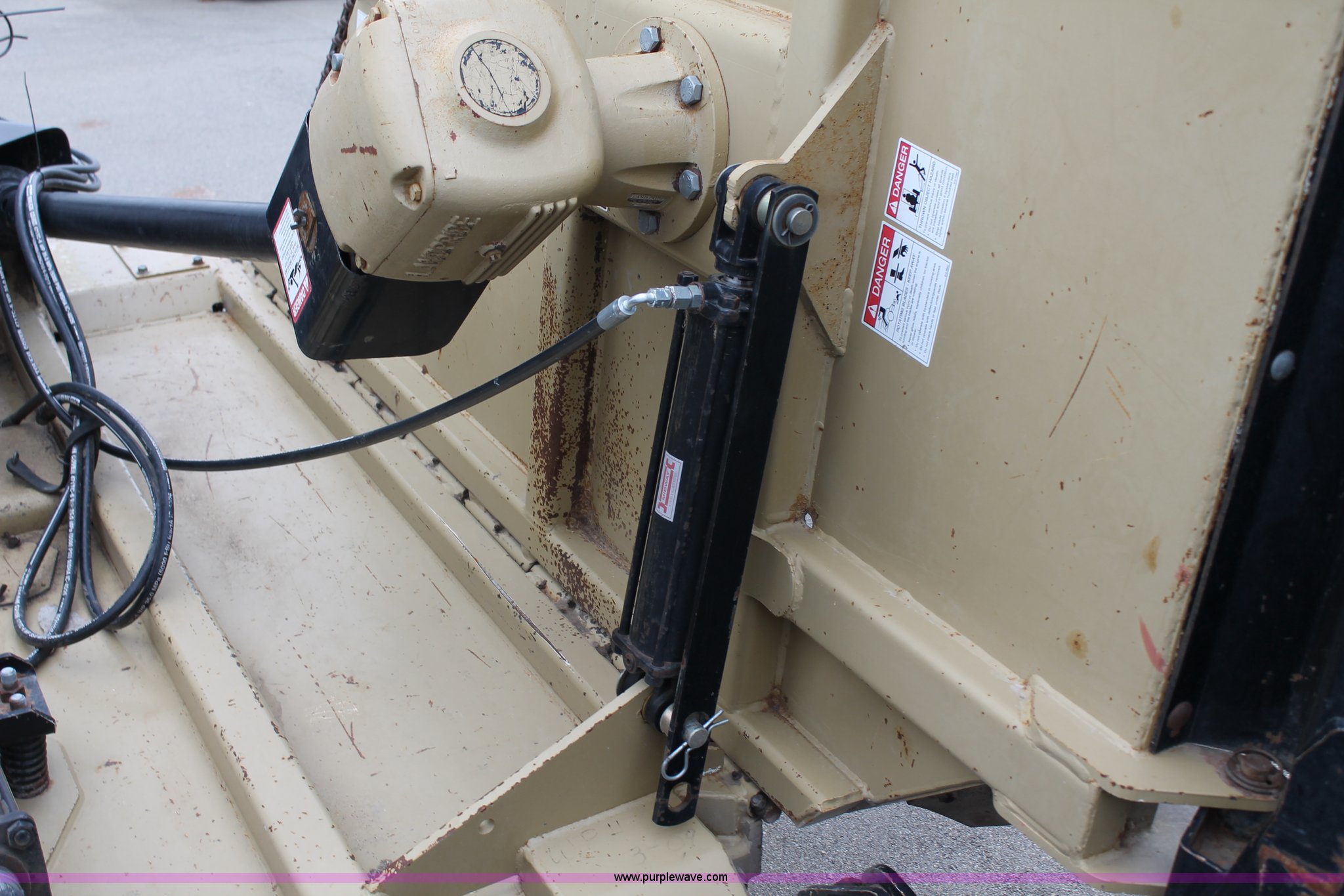 Purple Wave is selling a used Mower, Cutter, Shredder in Kansas. This item is a 2005 Land Pride RCB6015 batwing rotary mower with the following: 15'W cut, 1000 PTO, Walking beam axles, Pin hitch, Jack, 10" filled wheels, Damaged PTO shaft shield, Tires worn, Serial 473286, KDOT ID 397-2045