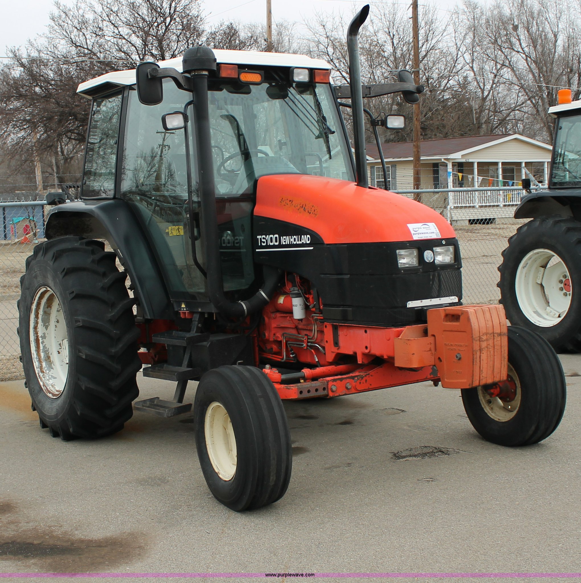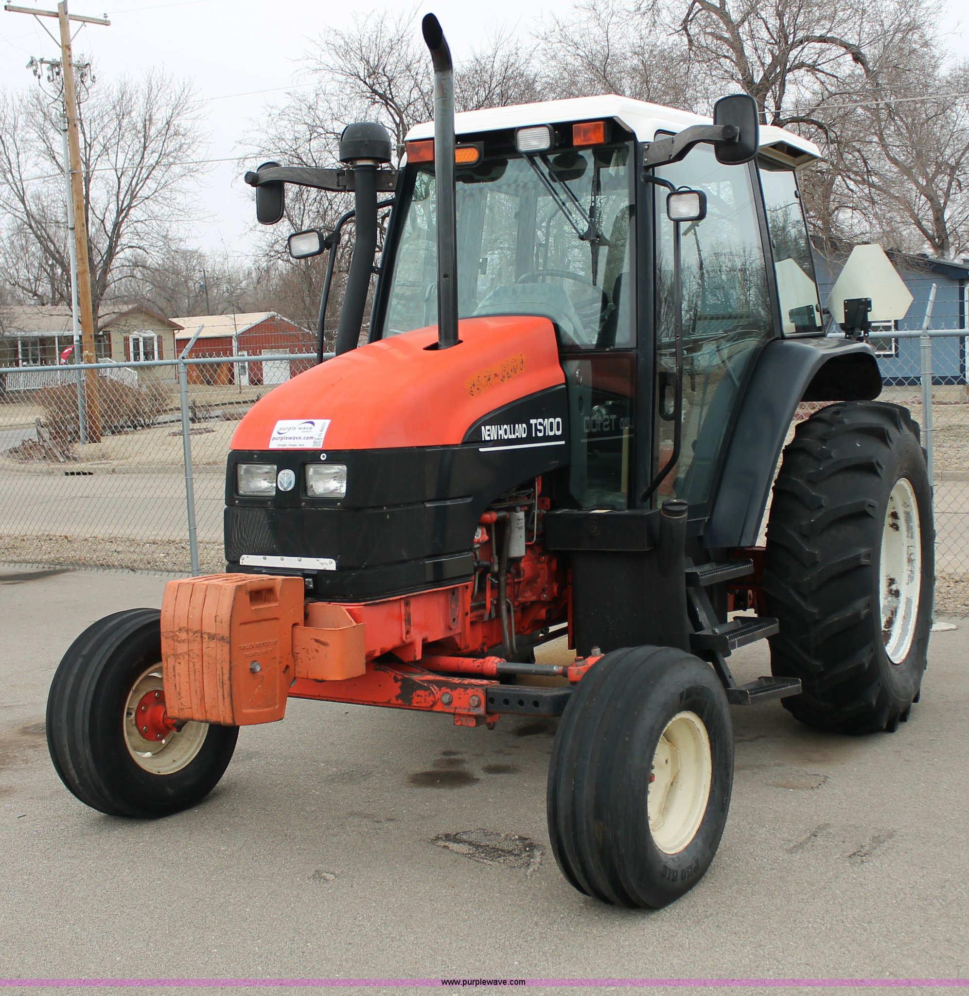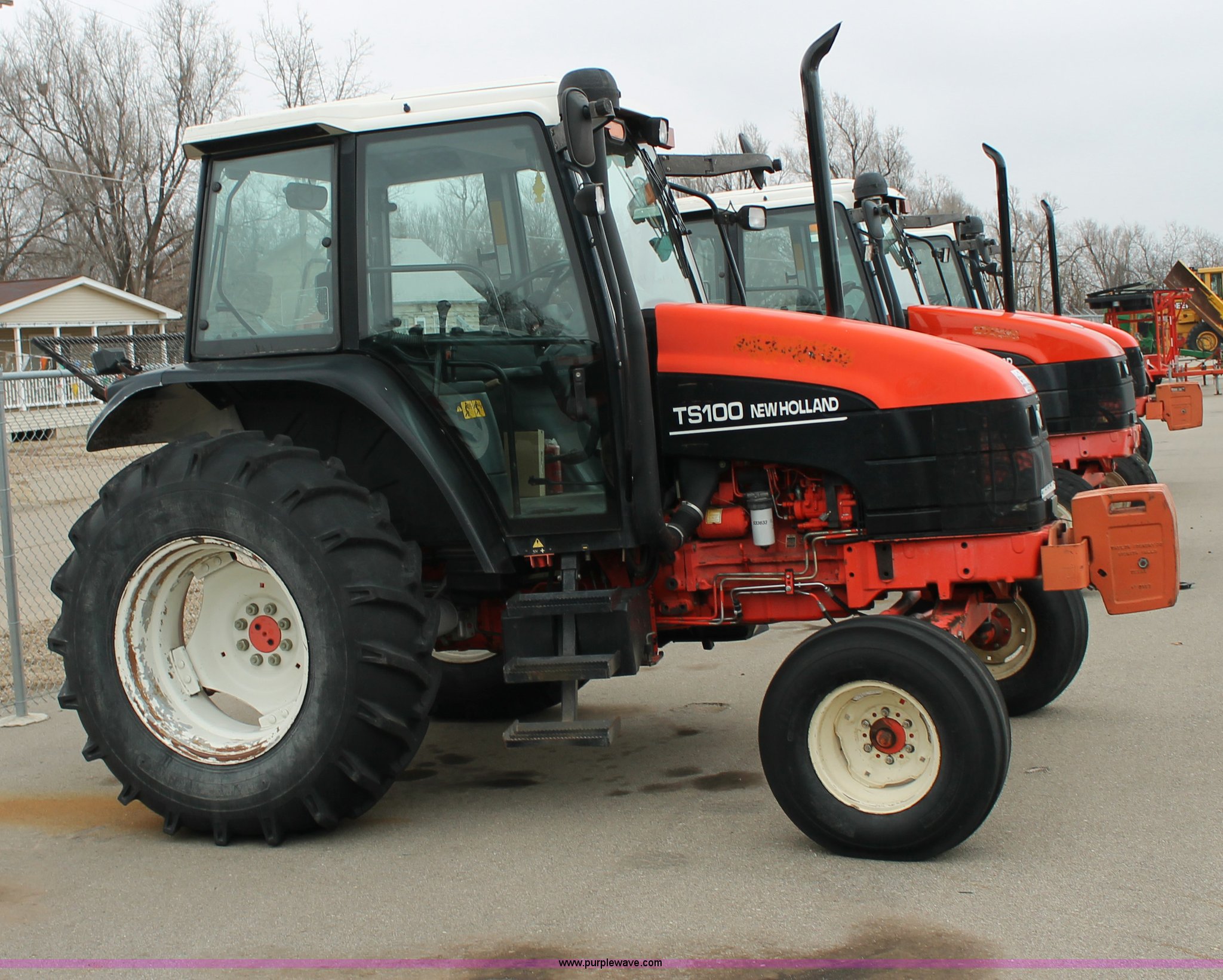 Purple Wave is selling a used Tractor in Kansas. This item is a 2000 New Holland TS100 tractor with the following: 5,846 hours on meter, Four cylinder diesel engine, 80 HP, Synchronized shuttle transmission, 12F-12R gears, Locking differential, Enclosed cab, AC and heat, AM/FM, Suspension seat, Auxiliary outlet, Joystick loader control, Front and rear work lights, Front and rear wipers, Three point, 1000 PTO, Draw bar, (4) rear hydraulic remotes, Rear window guard, (5) suitcase weights, 11L-15SL front tires, 18.4-30 rear tires, Non-operational clutch, Non-operational slave cylinder, Exhaust leak, Broken fuel strap, Serial 138680B, KDOT ID 352-2100