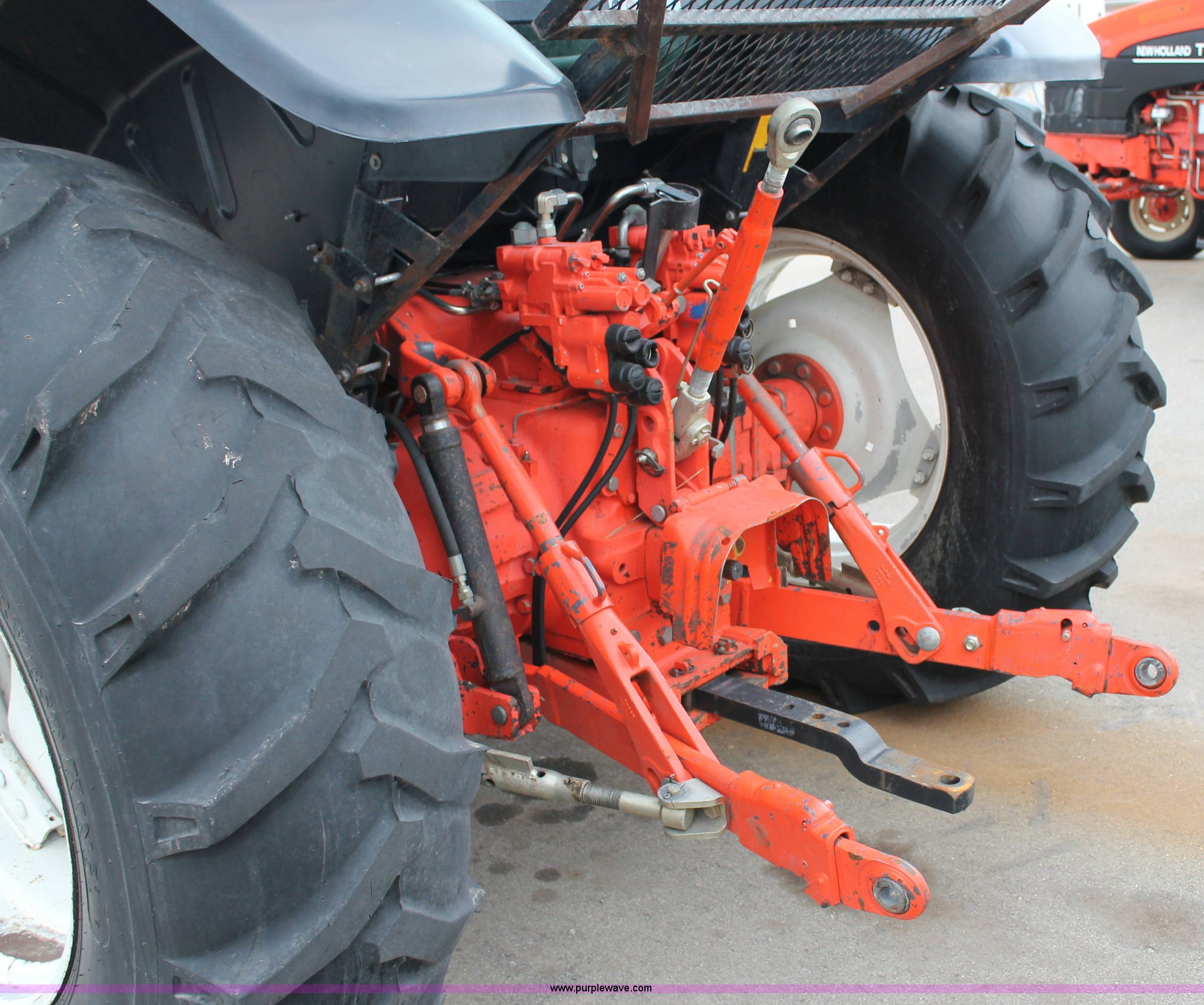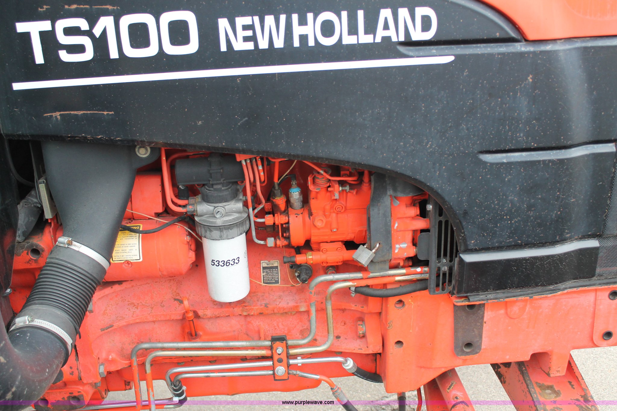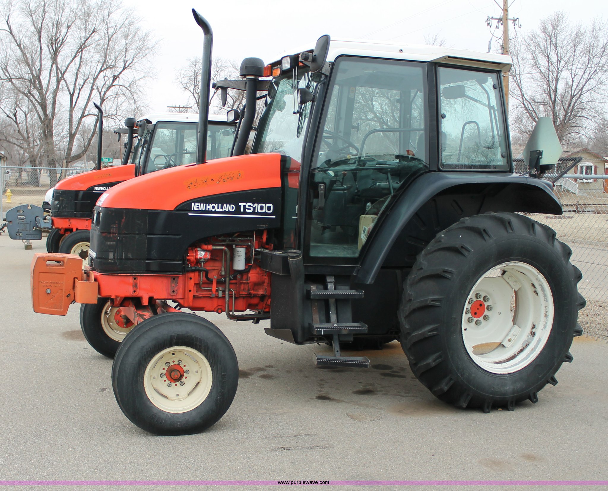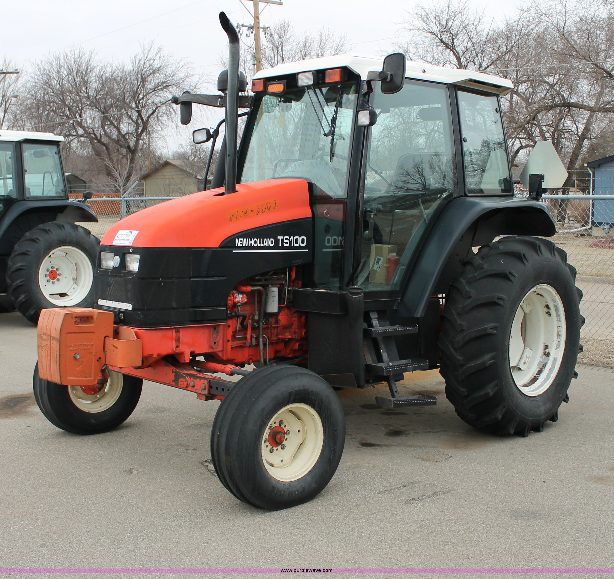 Purple Wave is selling a used Tractor in Kansas. This item is a 2000 New Holland TS100 tractor with the following: 5,846 hours on meter, Four cylinder diesel engine, 80 HP, Synchronized shuttle transmission, 12F-12R gears, Locking differential, Enclosed cab, AC and heat, AM/FM, Suspension seat, Auxiliary outlet, Joystick loader control, Front and rear work lights, Front and rear wipers, Three point, 1000 PTO, Draw bar, (4) rear hydraulic remotes, Rear window guard, (5) suitcase weights, 11L-15SL front tires, 18.4-30 rear tires, Non-operational clutch, Non-operational slave cylinder, Exhaust leak, Broken fuel strap, Serial 138680B, KDOT ID 352-2100