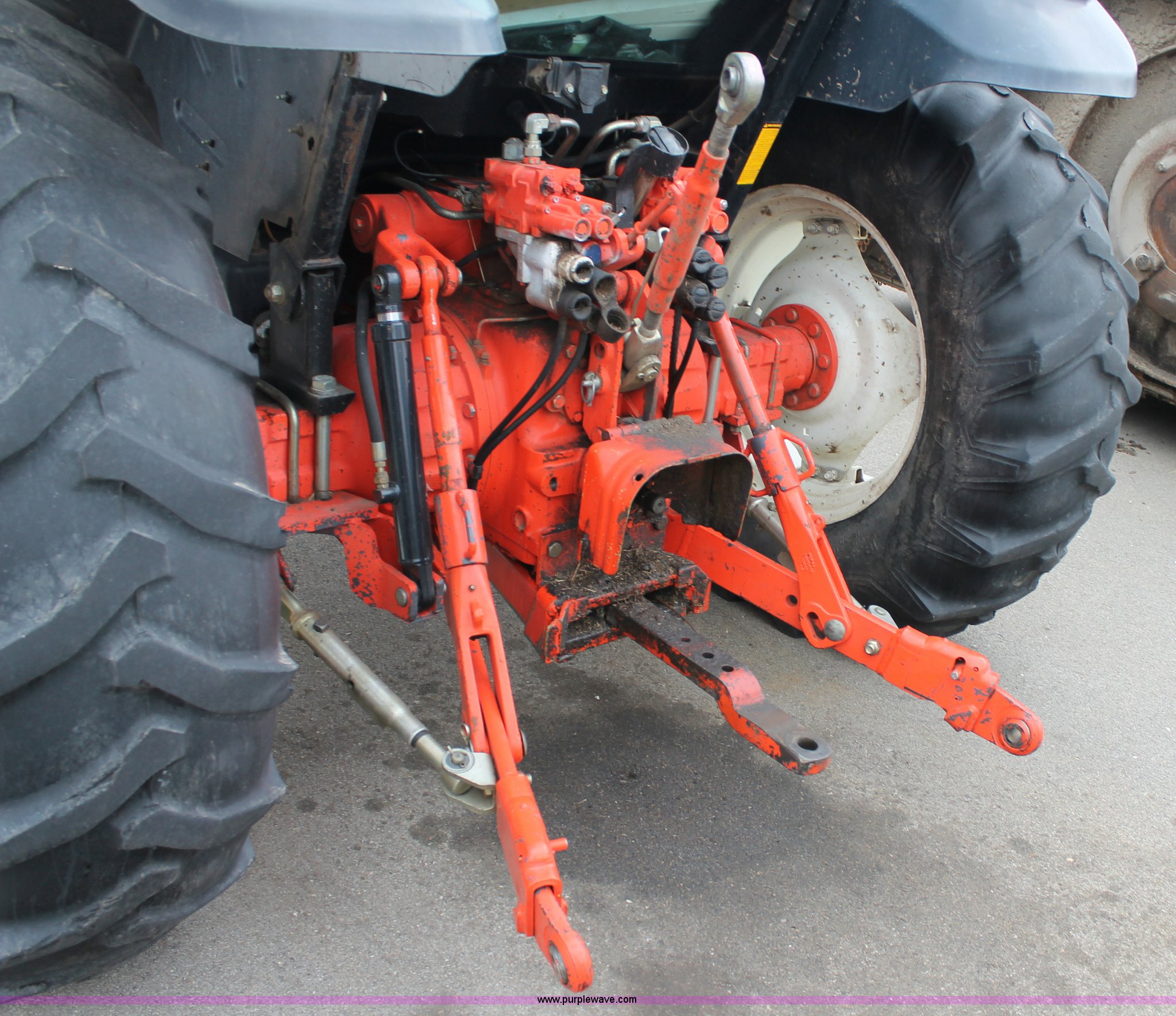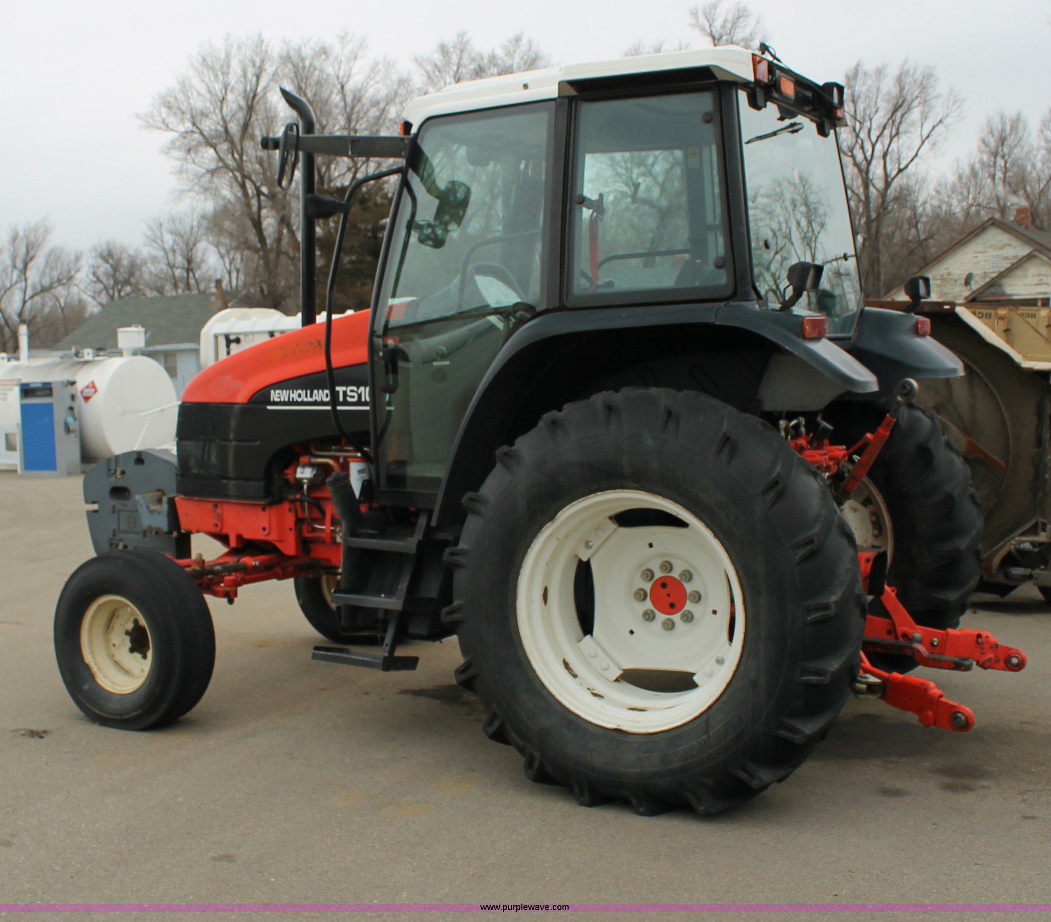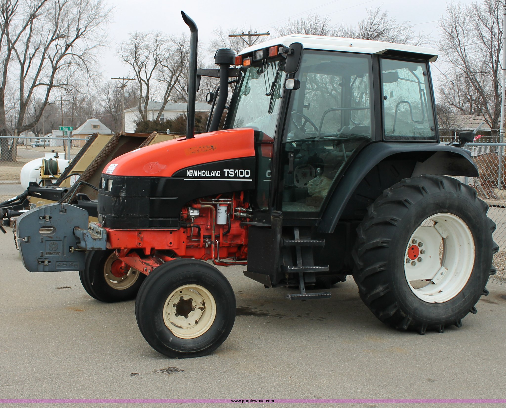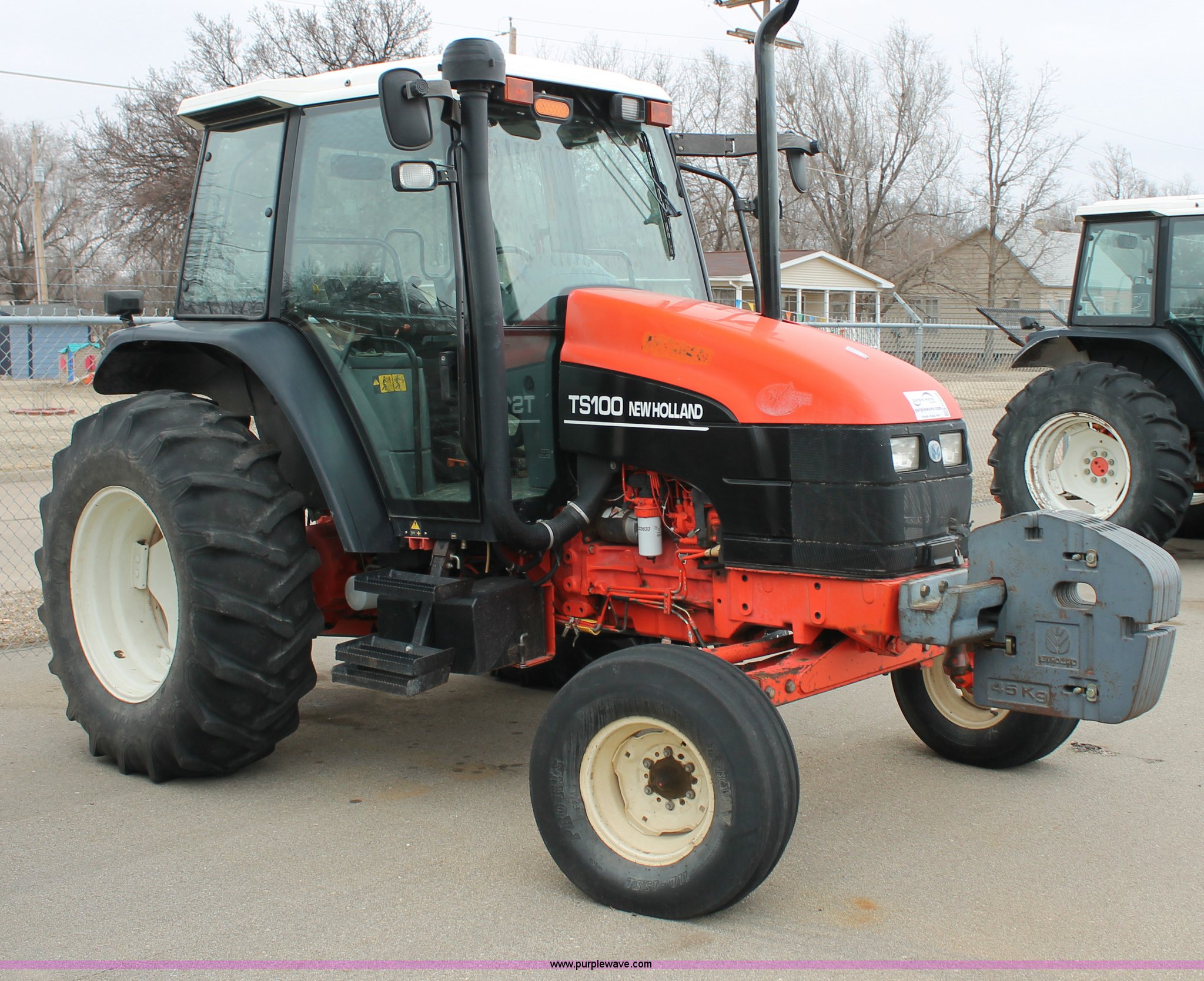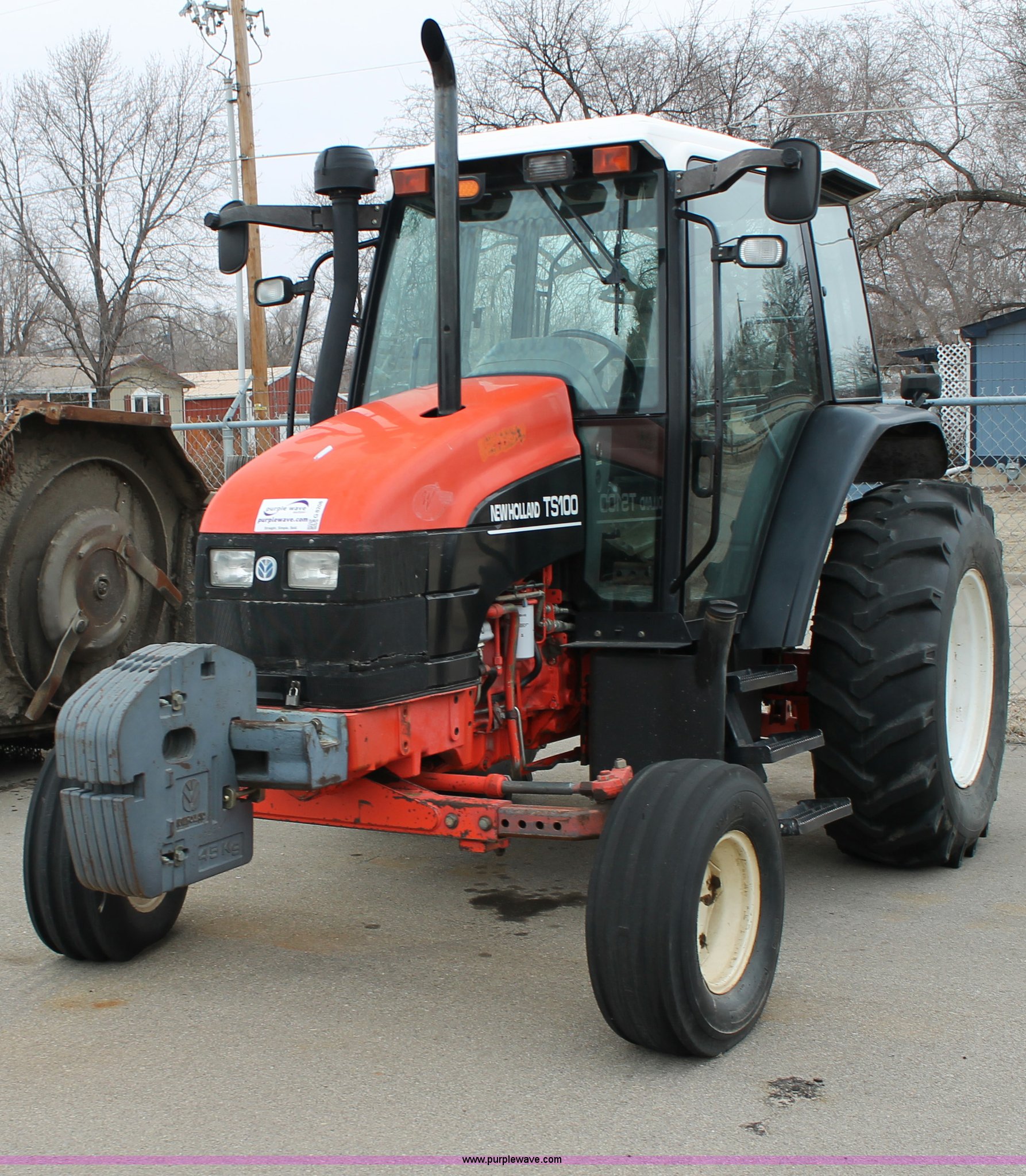 Purple Wave is selling a used Tractor in Kansas. This item is a 2000 New Holland TS100 tractor with the following: 5,208 hours on meter, Four cylinder diesel engine, 80 HP, Synchronized shuttle transmission, 12F-12R gears, Locking differential, Enclosed cab, AC and heat, AM/FM, Suspension seat, Auxiliary outlet, Joystick loader control, Front and rear work lights, Front and rear windshield wipers, 1000 PTO, Three point, Draw bar, (4) sets of rear hydraulic remotes, (6) 45 KG suitcase weights, 11L-15 front tires, 18.4-30 rear tires, Front axle broken, Battery bad, Serial 135576B, KDOT ID 352-2089