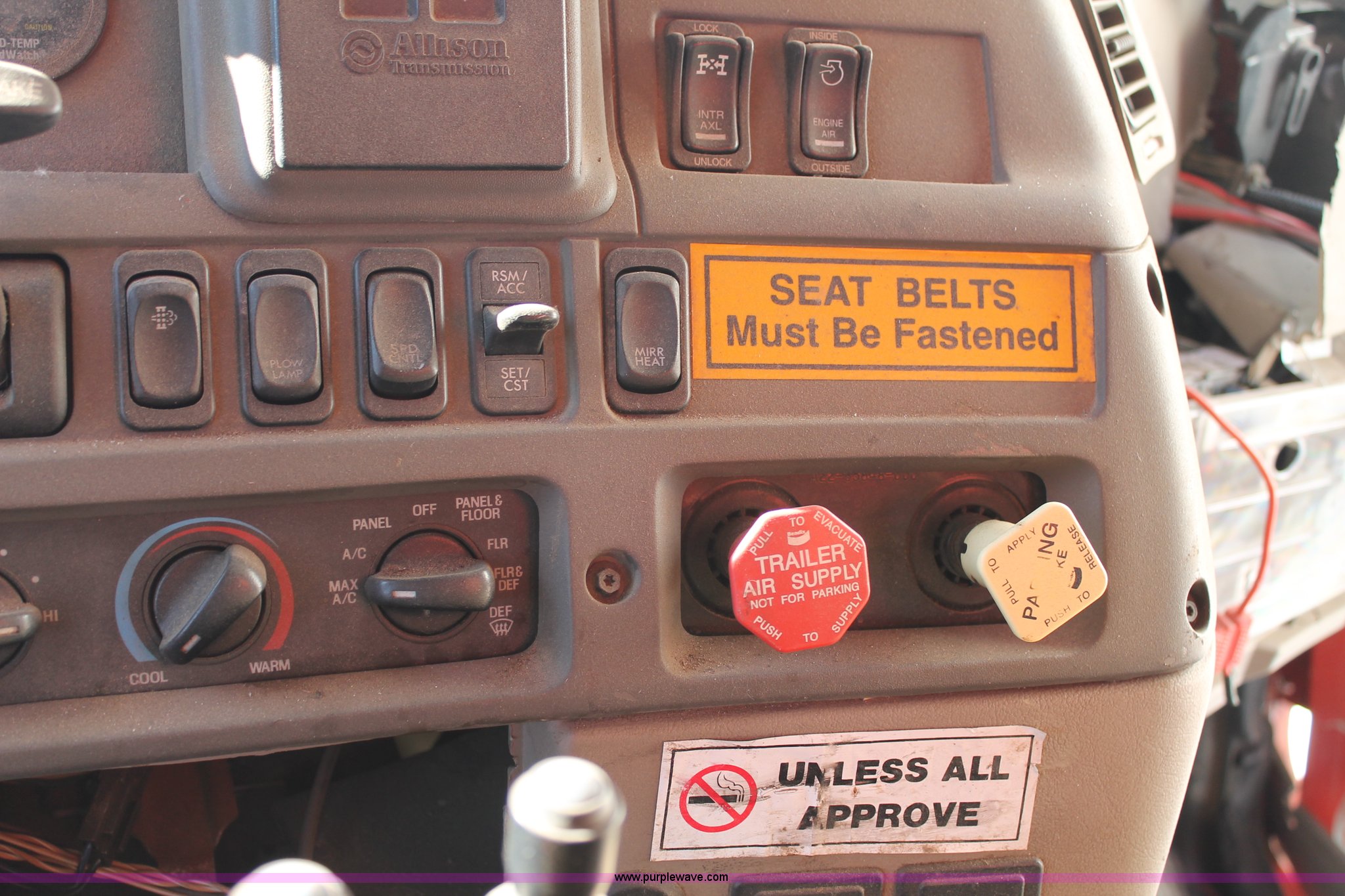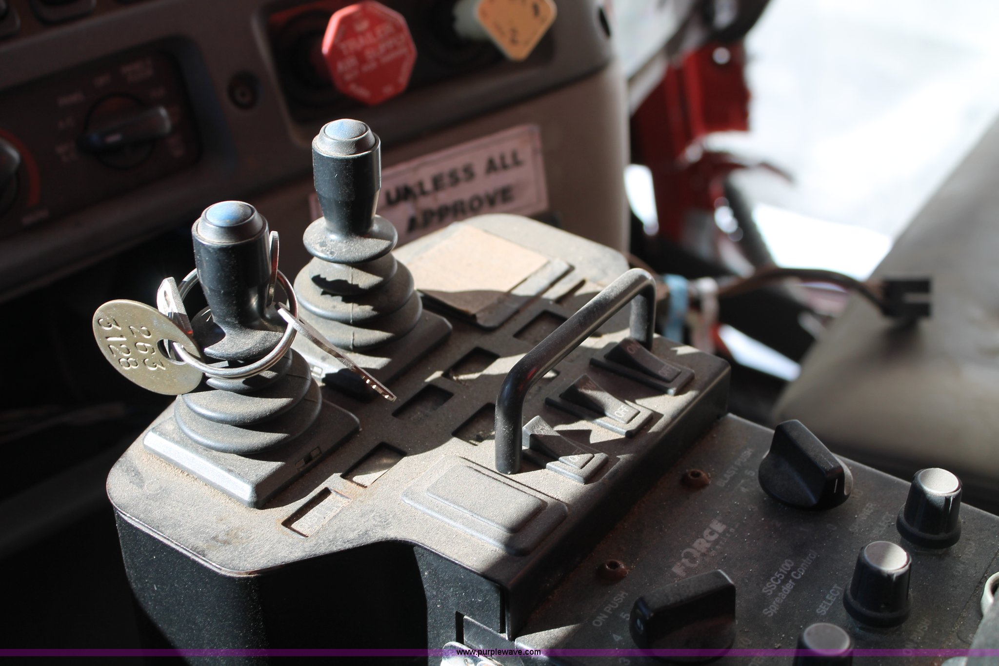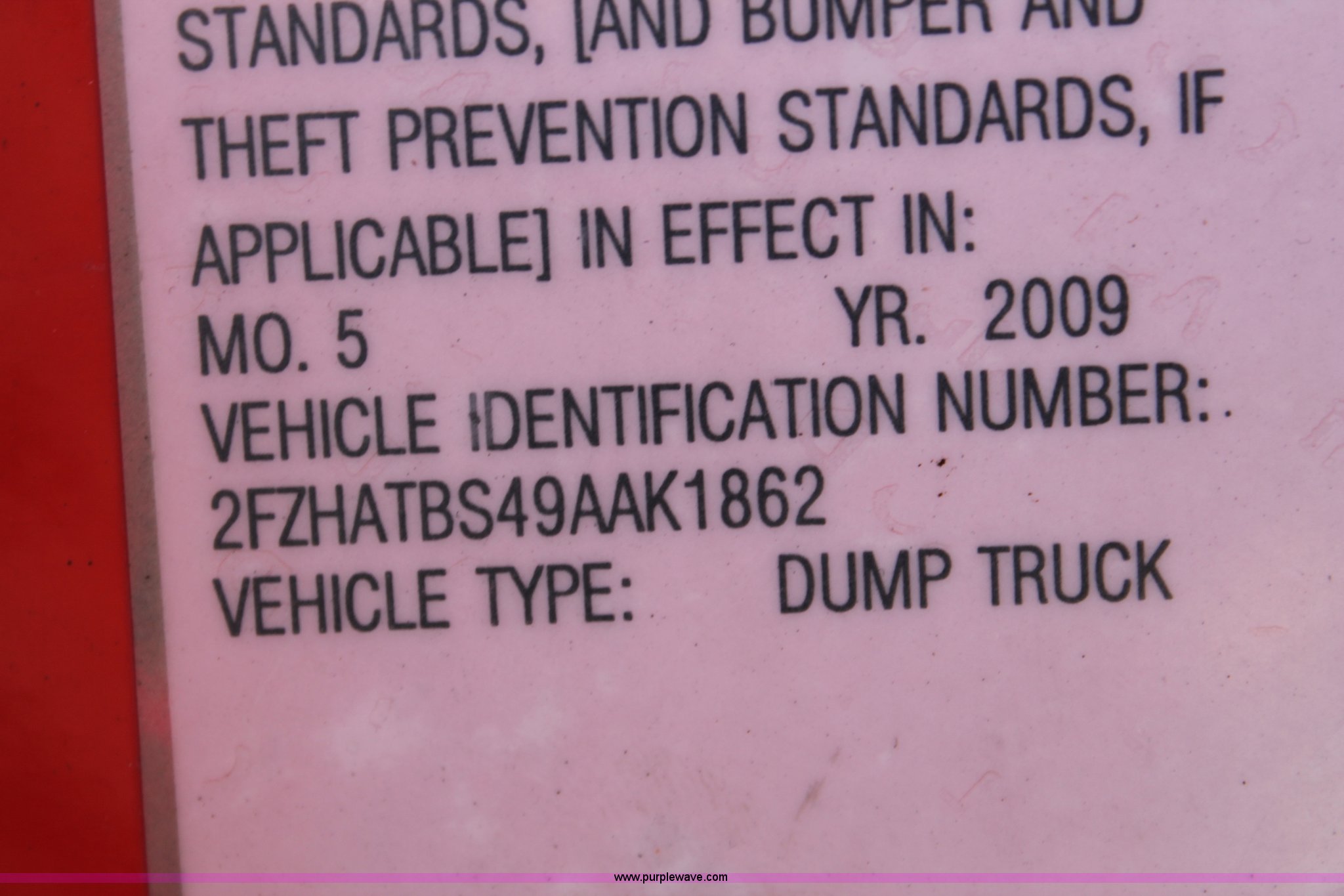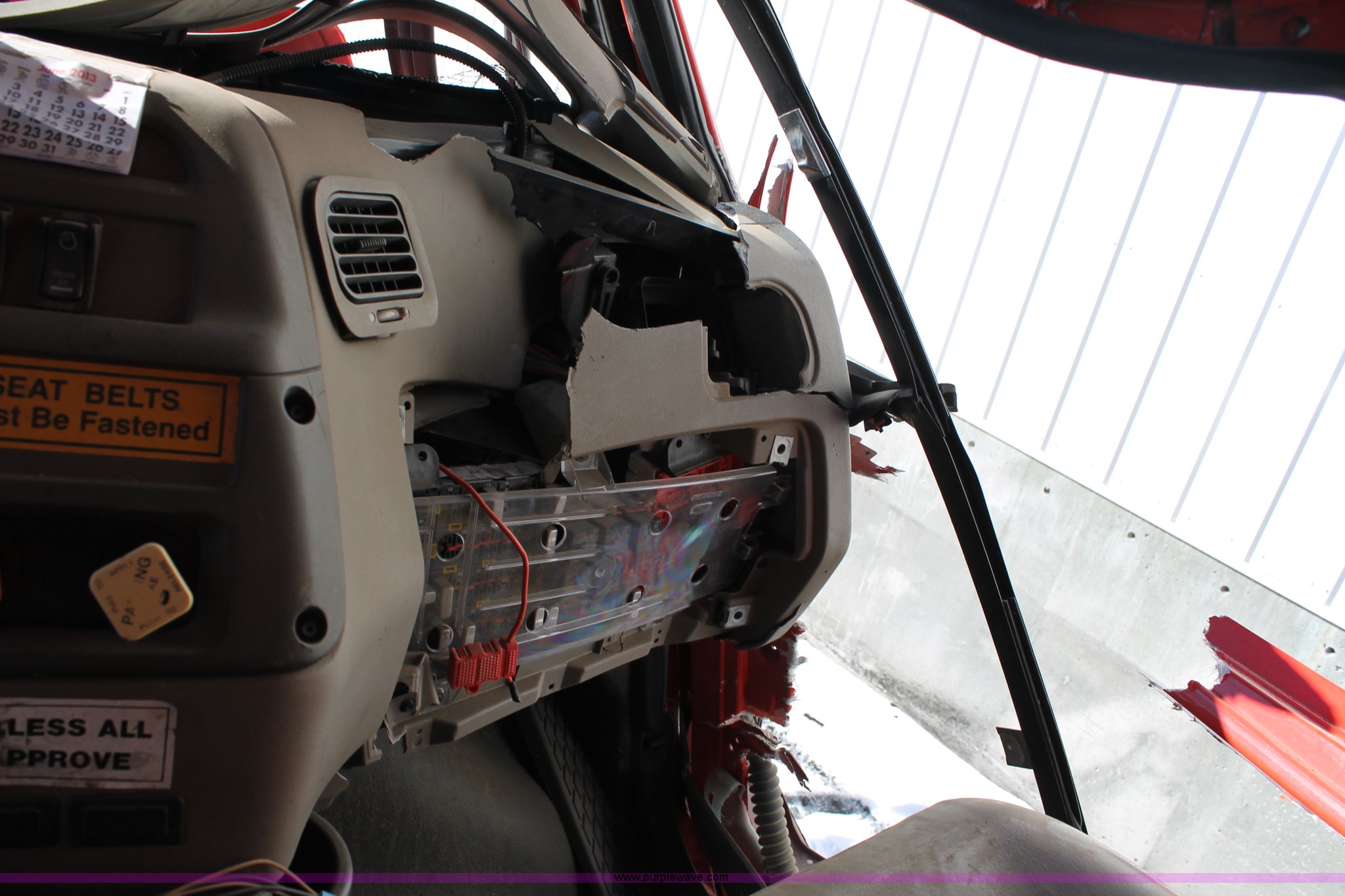 Purple Wave is selling a used Construction Dump Truck in Kansas. This item is a 2009 Sterling L7500 dump truck with the following: 68,000 miles on odometer, Cummins ISC 8.3L L6 diesel engine, Non-operational engine, Allison 3500 automatic transmission, Non-operational transmission, Interaxle differential lock, AC and heat, Cruise, Suspension seat, Force spreader controls, Joystick plow controls, Light console controls, Under bed toolbox, 80 gallon fuel tank, Spring suspension, Air brakes, Pintle hitch, Rear auxiliary hydraulics, 315/80R22.5 tires, GVWR 56,000 lbs, Vehicle wrecked, Substantial front end damage, No passenger door, Cab bent and broken, Hoist unattached from bed, Frame bent, Dump bed broken, Parts may be missing, KDOT ID 263-3128