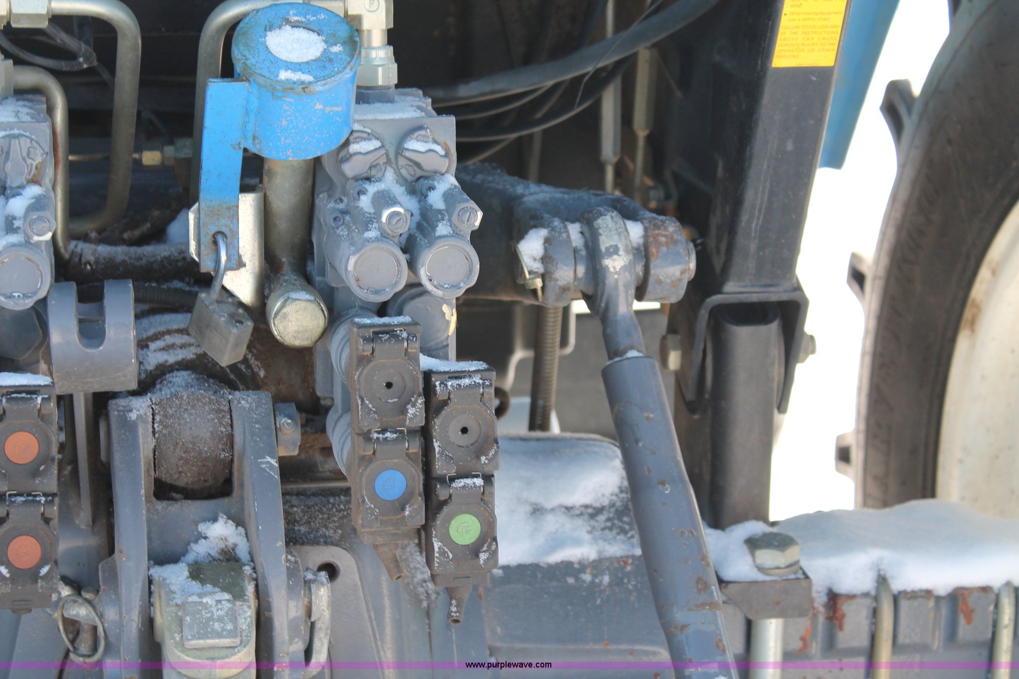 Purple Wave is selling a used Tractor in Kansas. This item is a 2002 New Holland TS100 tractor with the following: 5,119 hours on meter, 304 C.I.D. four cylinder diesel engine, Synchronized shuttle transmission, 12F-12R gears, Enclosed cab, AC and heat, AM/FM, Joystick loader control, Auxiliary outlet, Front and rear work lights, Front and rear windshield wipers, Three point, 540 PTO, Draw bar, (4) sets of rear hydraulic remotes, 11L-16SL front tires, 18.4-30 rear tires, Lighting issues, Serial 174196B, KDOT ID 352-3071