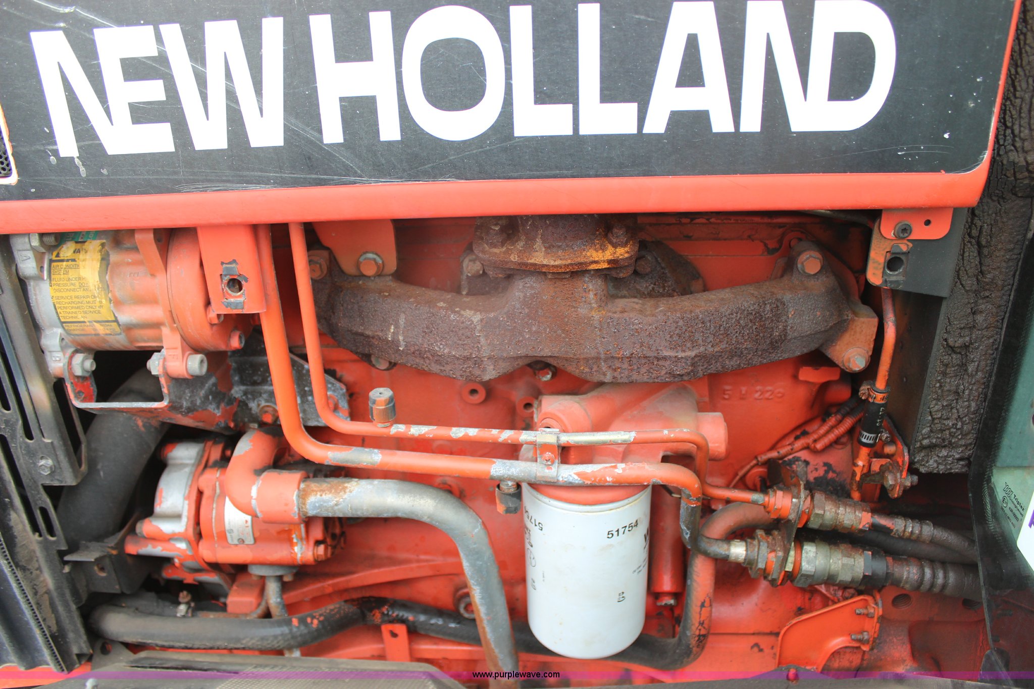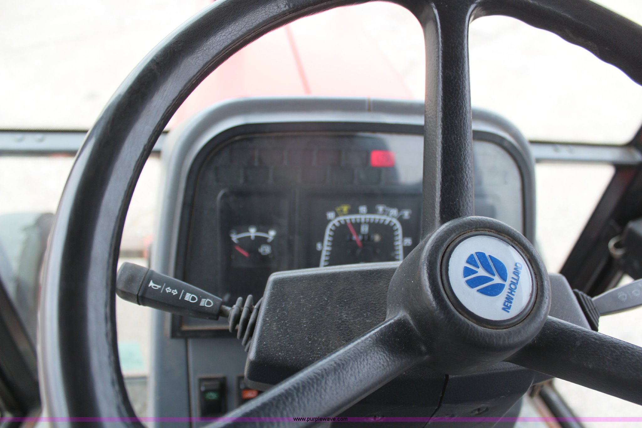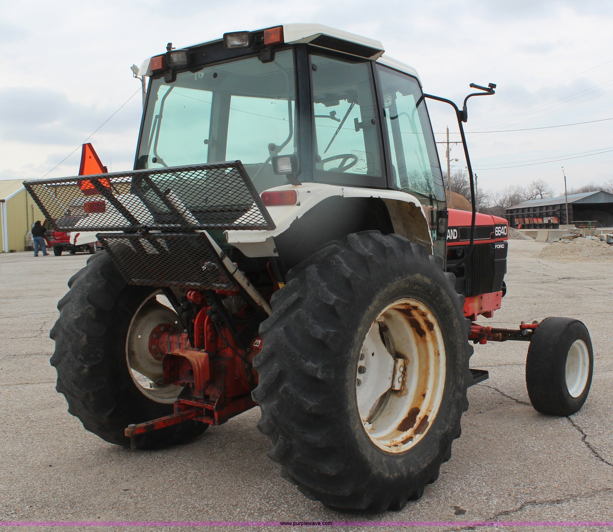 Purple Wave is selling a used Tractor in Kansas. This item is a 1996 New Holland 6640SL tractor with the following: 4,917 hours on meter, Ford 5.0L four cylinder diesel engine, 76 HP, Synchro transmission, 12F-12R gears, AC and heat, Spring suspension seat, Tilt steering wheel, Draw bar, 540/1000 PTO, (4) rear hydraulic remotes, 11L-16 front tires, 18.4-30 rear tires, Fender cracked, Front left lug nut missing, No mirrors, Serial 021191B, KDOT ID 352-1086