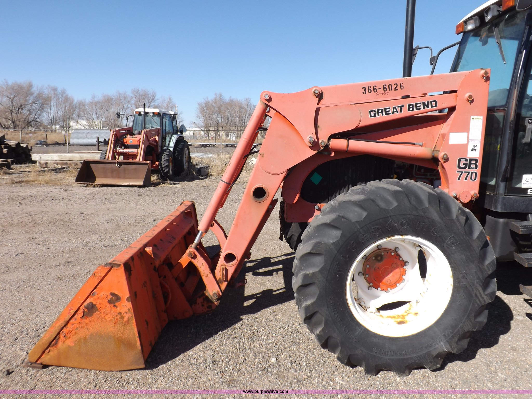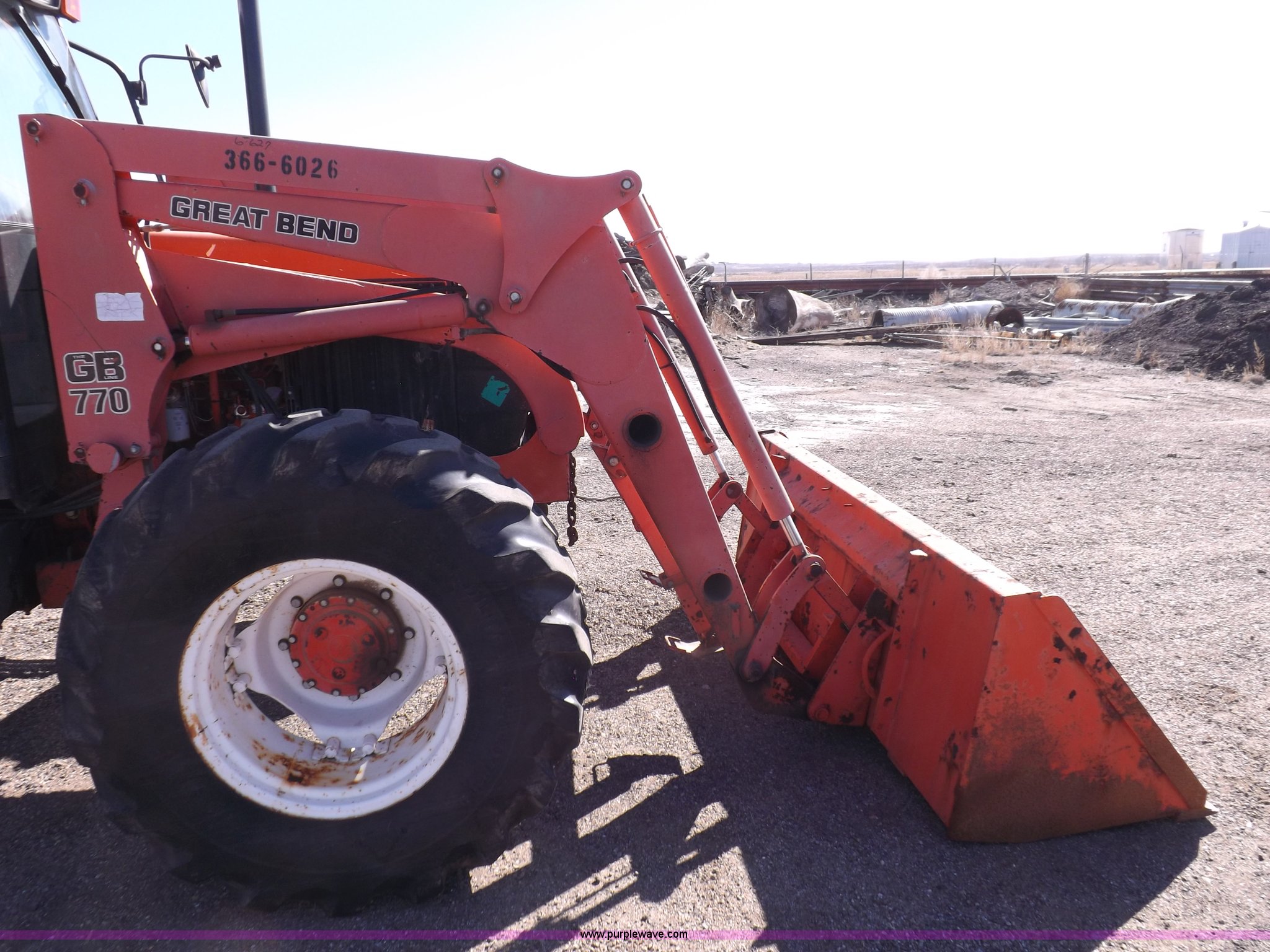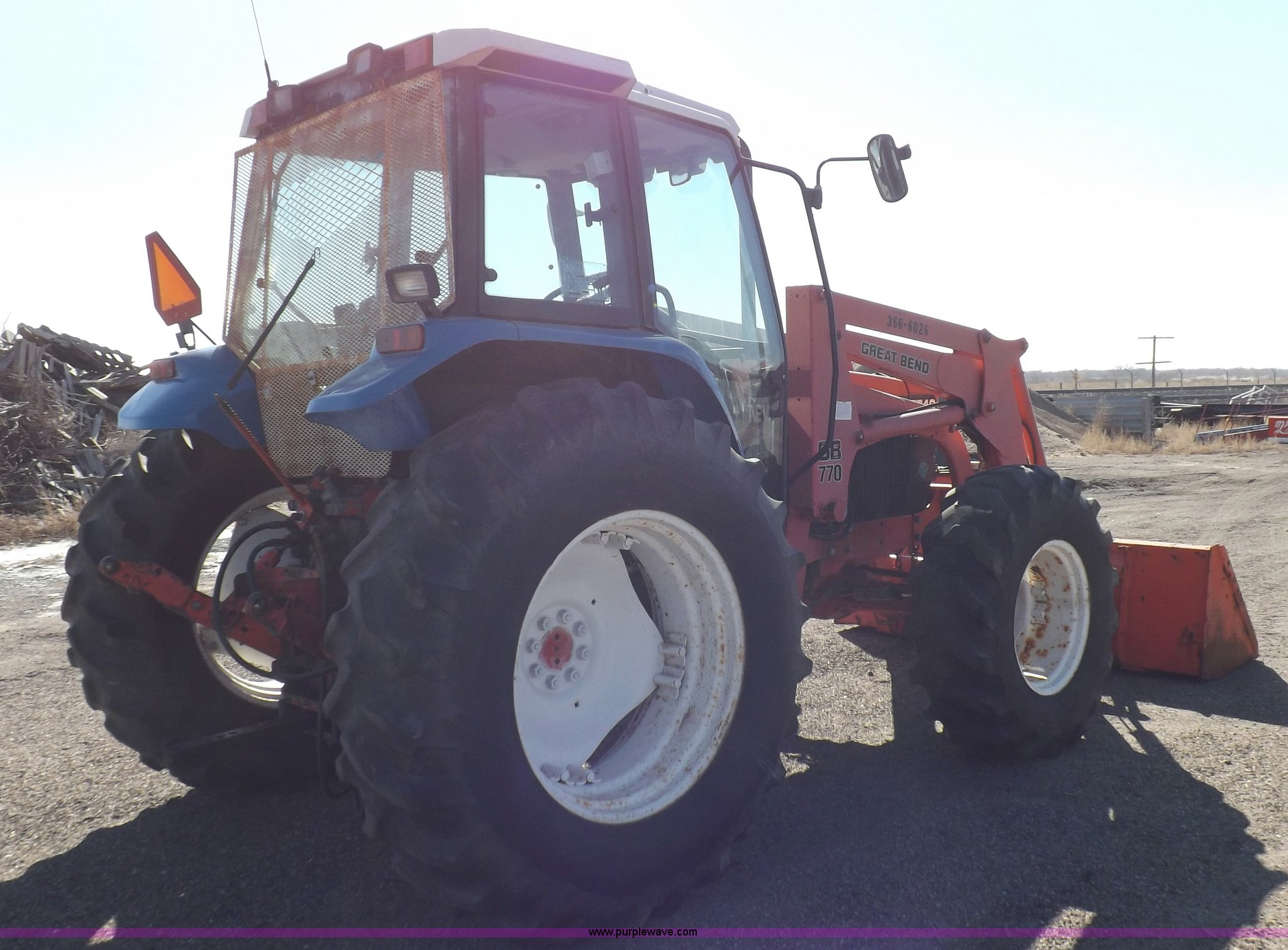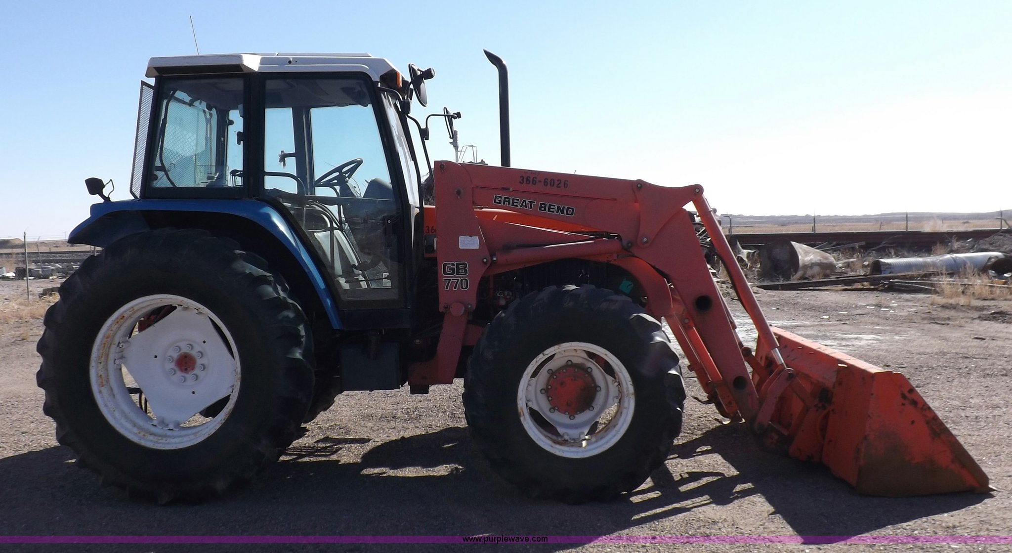 Purple Wave is selling a used Tractor in Kansas. This item is a 1996 New Holland 7740SL MFWD tractor with the following: 5,510 hours on meter, Four cylinder diesel engine, 86 HP, Serial PA5929735M11, Synchronized shuttle shift transmission, 12F-12R gears, Enclosed cab, AC and heat, AM/FM, Spring suspension seat, Tilt steering wheel, GB770 loader, 8'W bucket, Bolt-on cutting edge, Manual quick attach, Two lever controls, Rear window protection, Three point, Top link missing, Draw bar, Auxiliary outlet, 540 PTO, Rear hydraulic coupler, 92" wheelbase, 16.9-24 front tires, 18.4-34 rear tires, Interior trim missing, Left rear view mirror cracked, Interior trim cracked, Freon leak, Serial 020923B, KDOT ID 366-6026