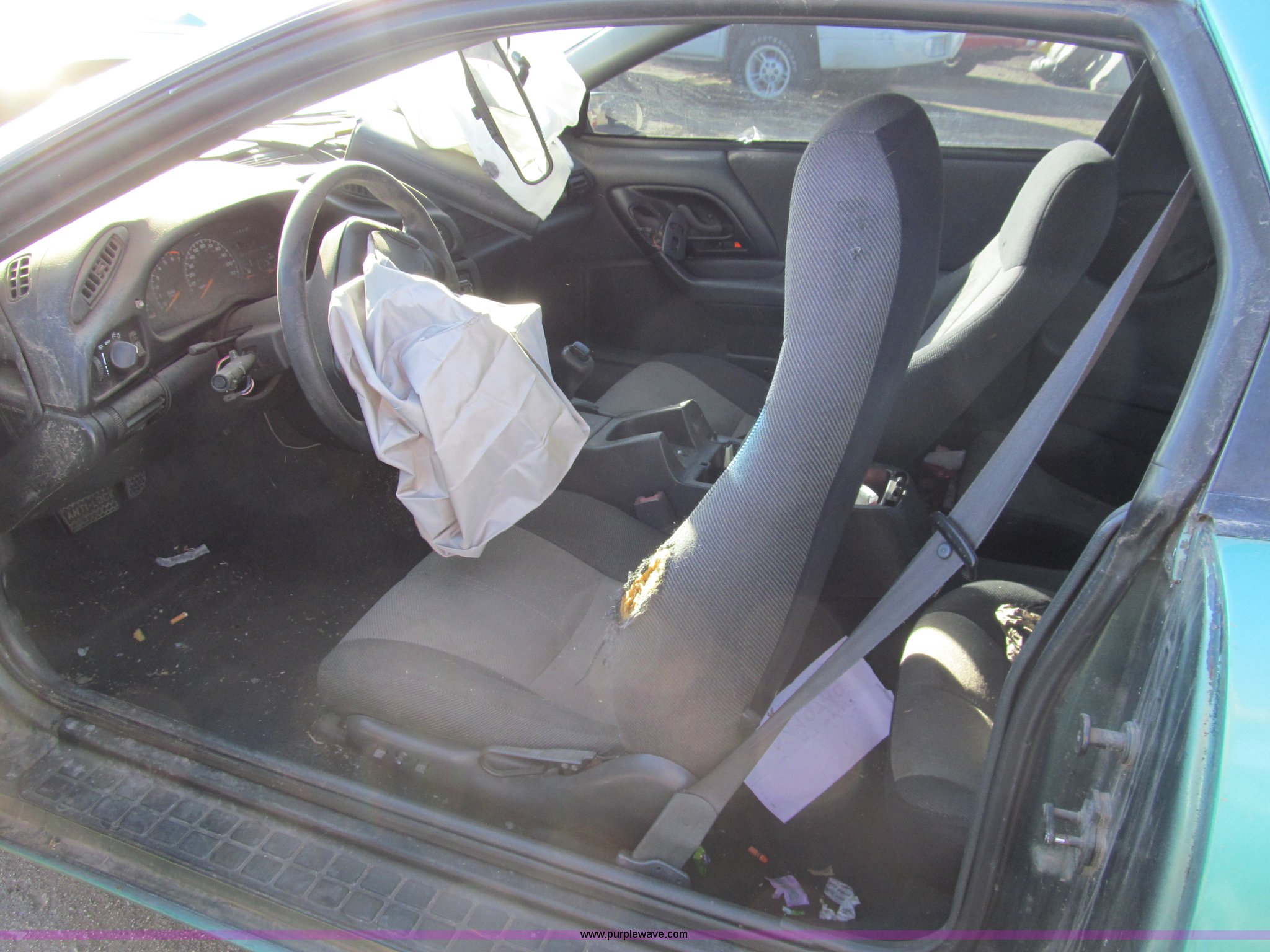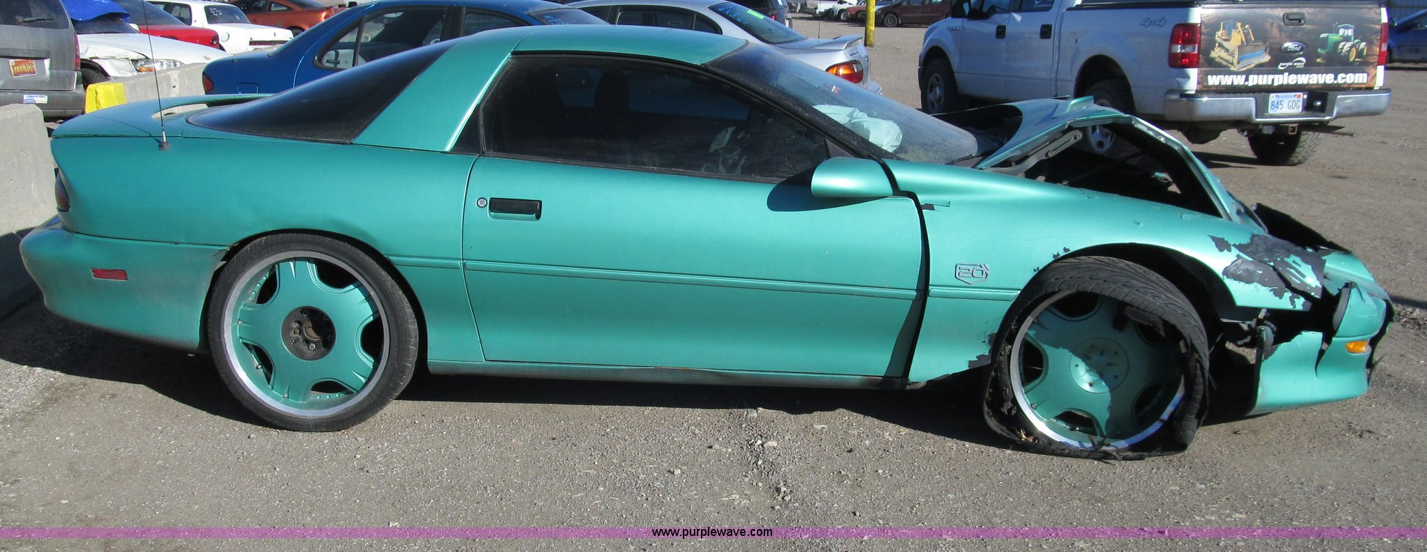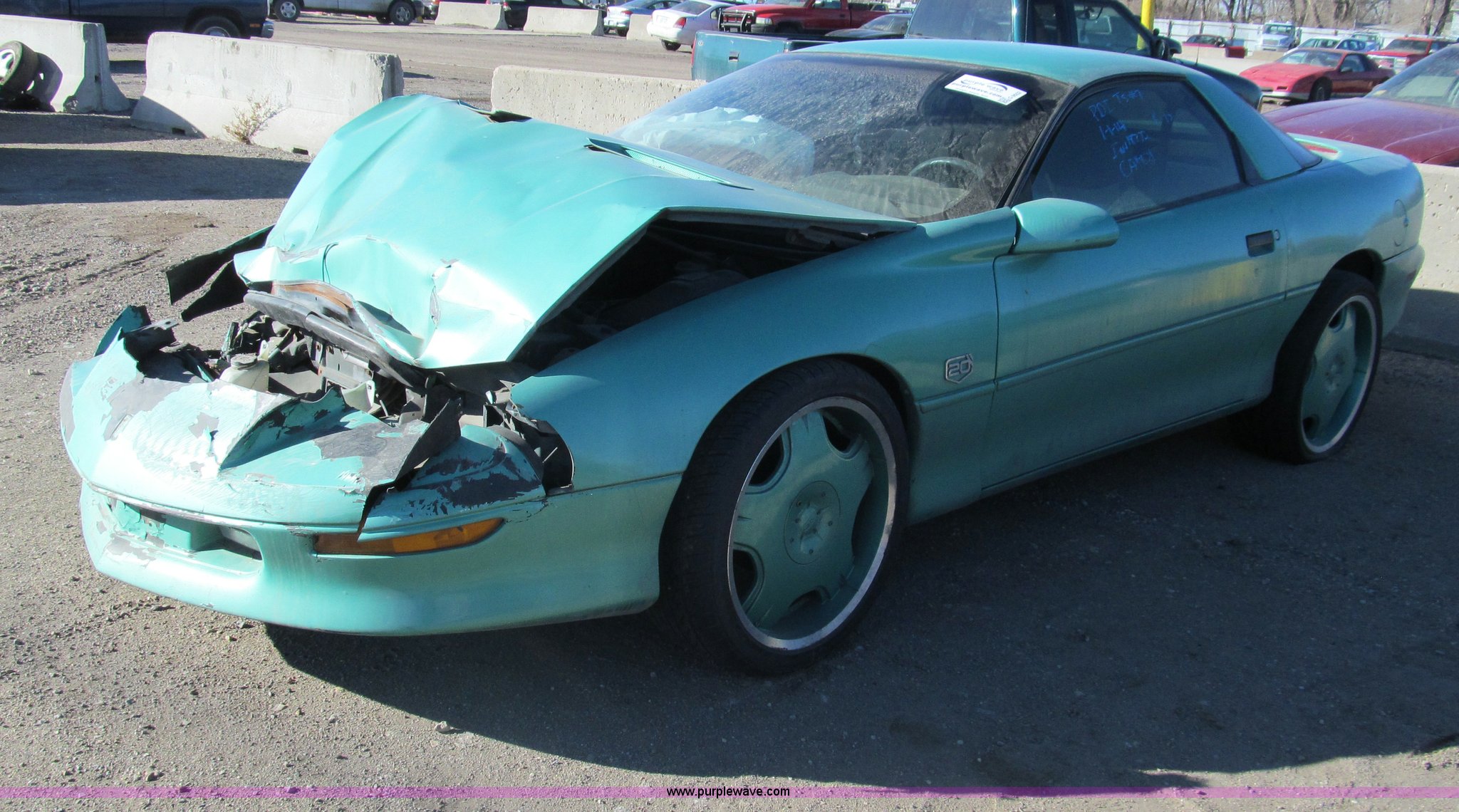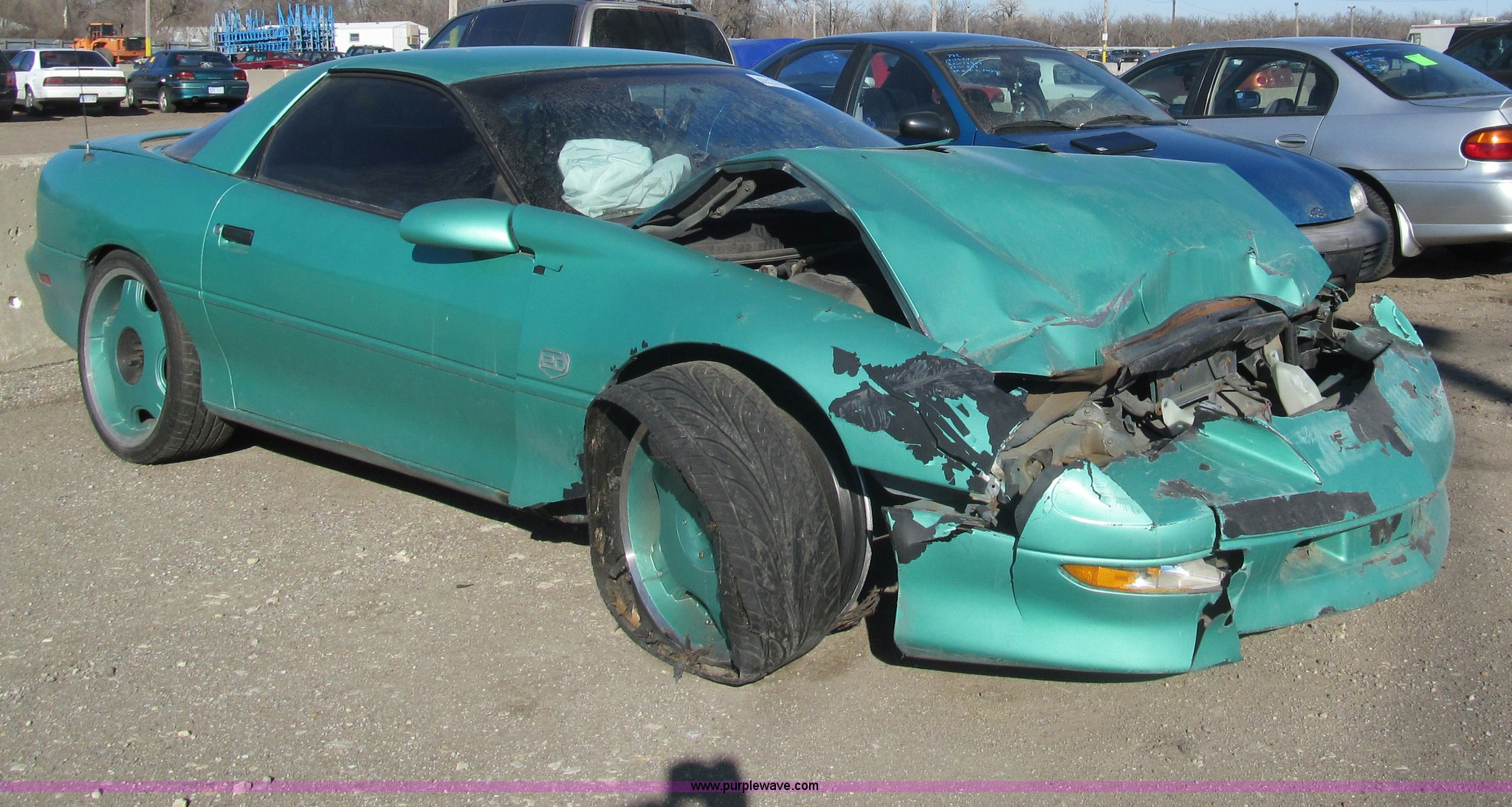 Purple Wave is selling a used Wrecked and Abandoned in Kansas. This item is a 1995 Chevrolet Camaro with the following: 208,544 miles on odometer, 3.4L V6 OHV 12V gas engine, Automatic transmission, AC and heat, AM/FM/CD, Power windows, locks, and seats, Cloth interior, Keys, Custom wheels, 255/35ZR20 tires, Major front end damage, Blown passenger tire, Air bags deployed, Case# 14C00030